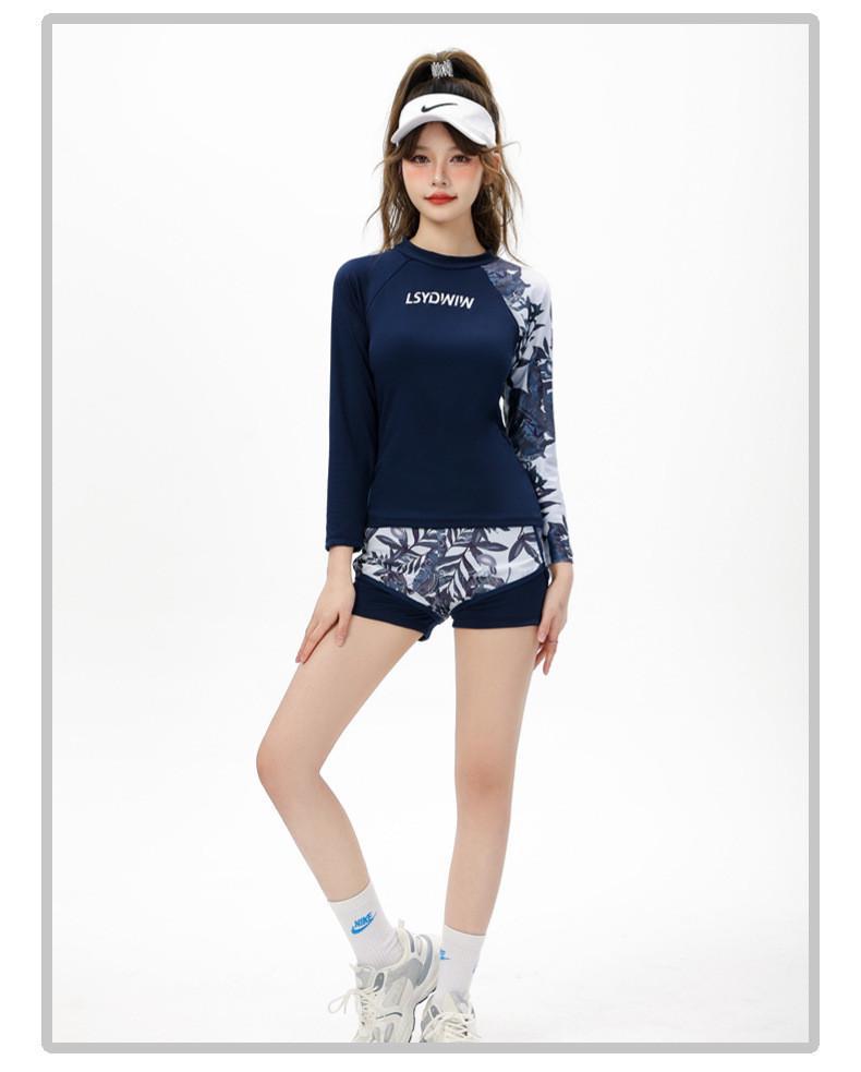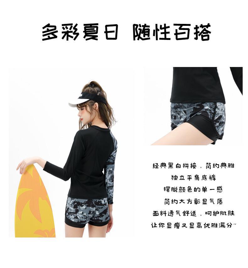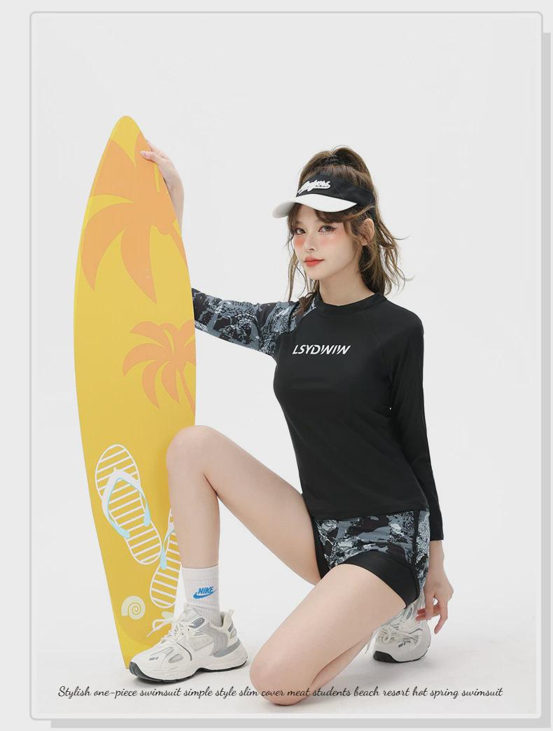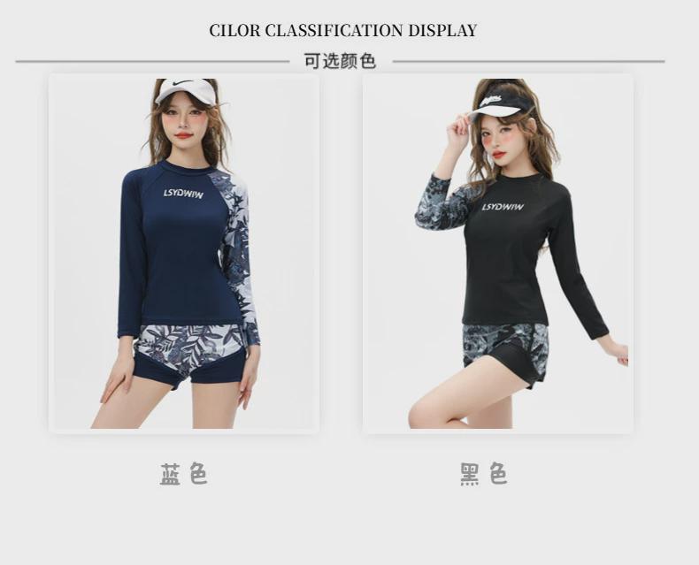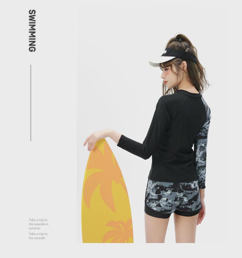 새로운 여성 다이빙 세트 긴 소매 보수적 인 평면 스포츠 서핑 도매 국경 수영 세트 둥근 목을 세트.스토어 가기