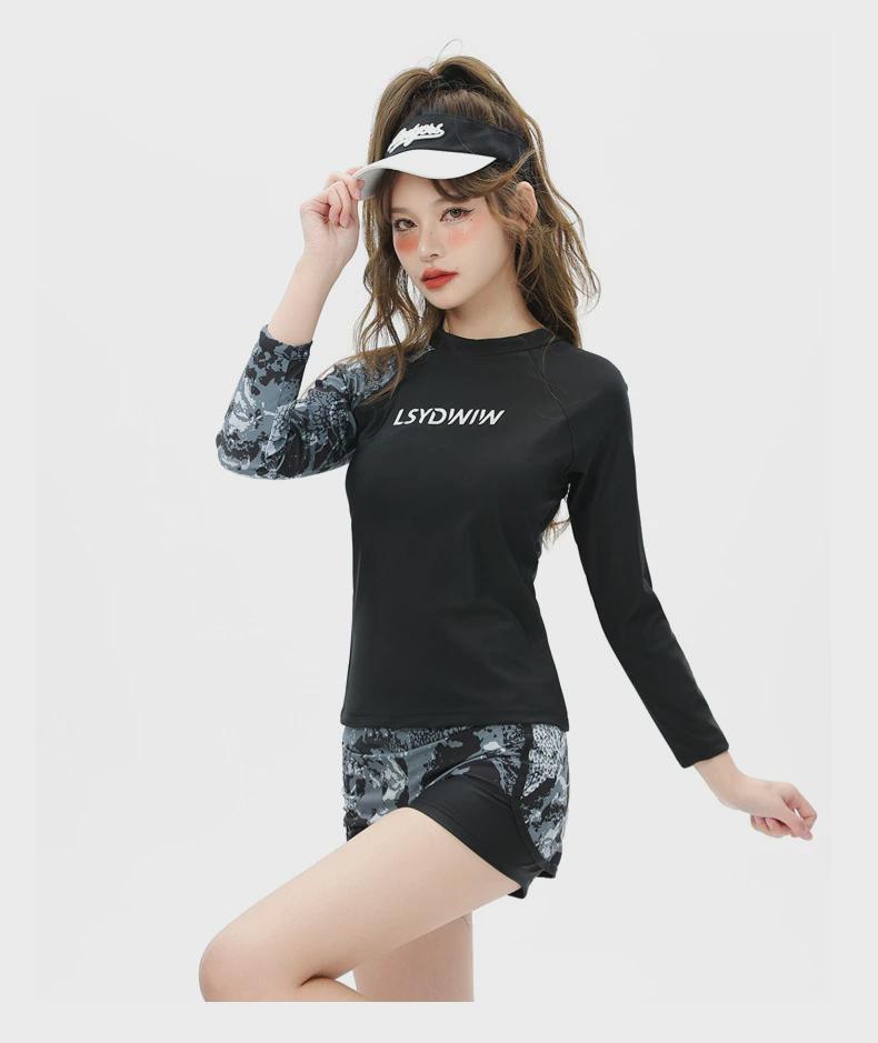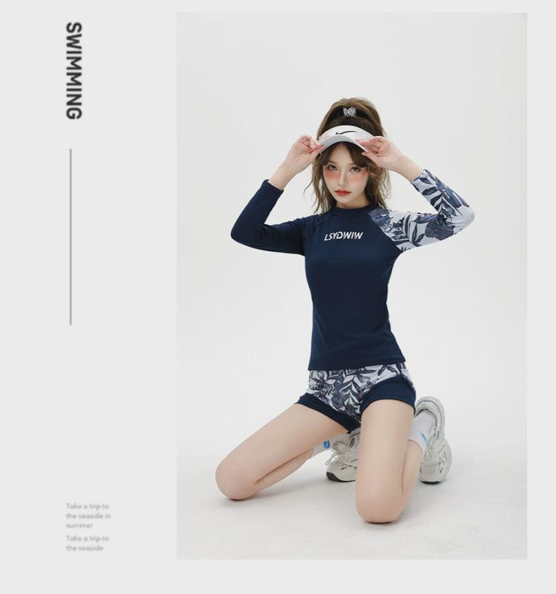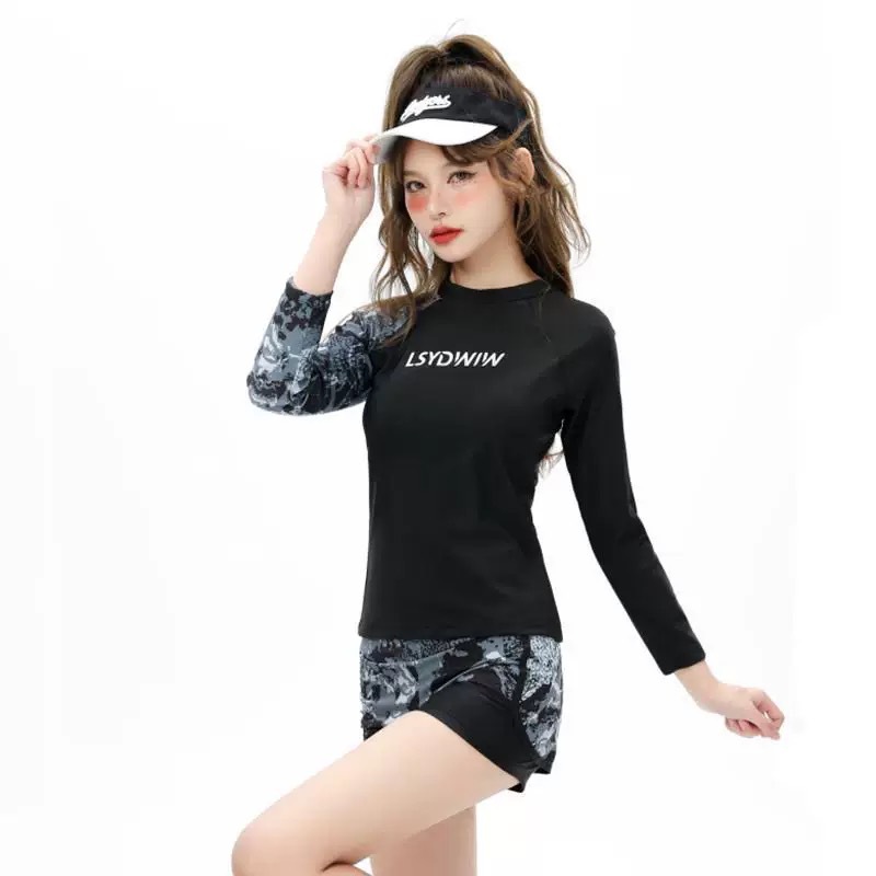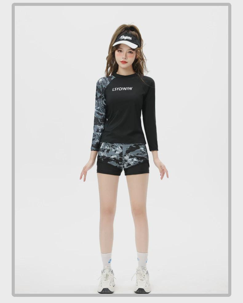 새로운 여성 다이빙 세트 긴 소매 보수적 인 평면 스포츠 서핑 도매 국경 수영 세트 둥근 목을 세트.스토어 가기