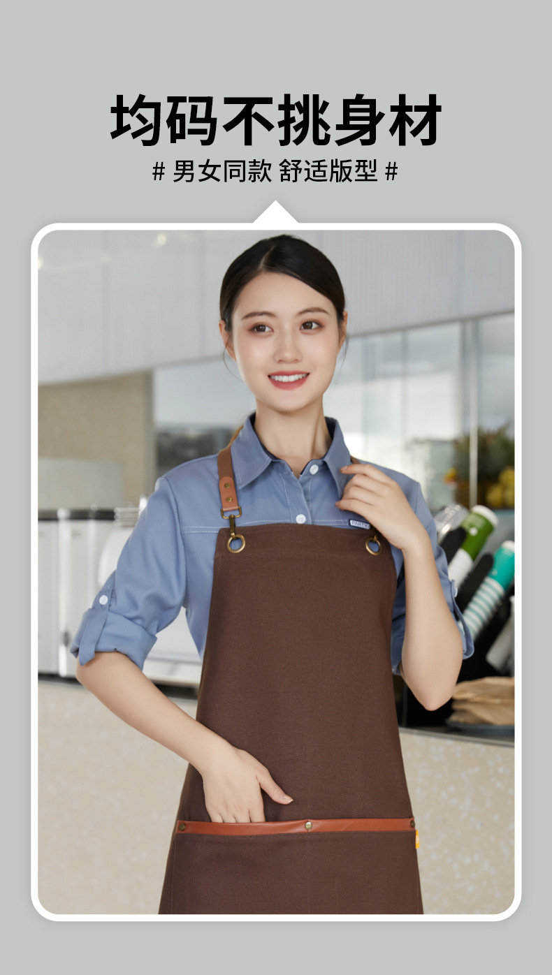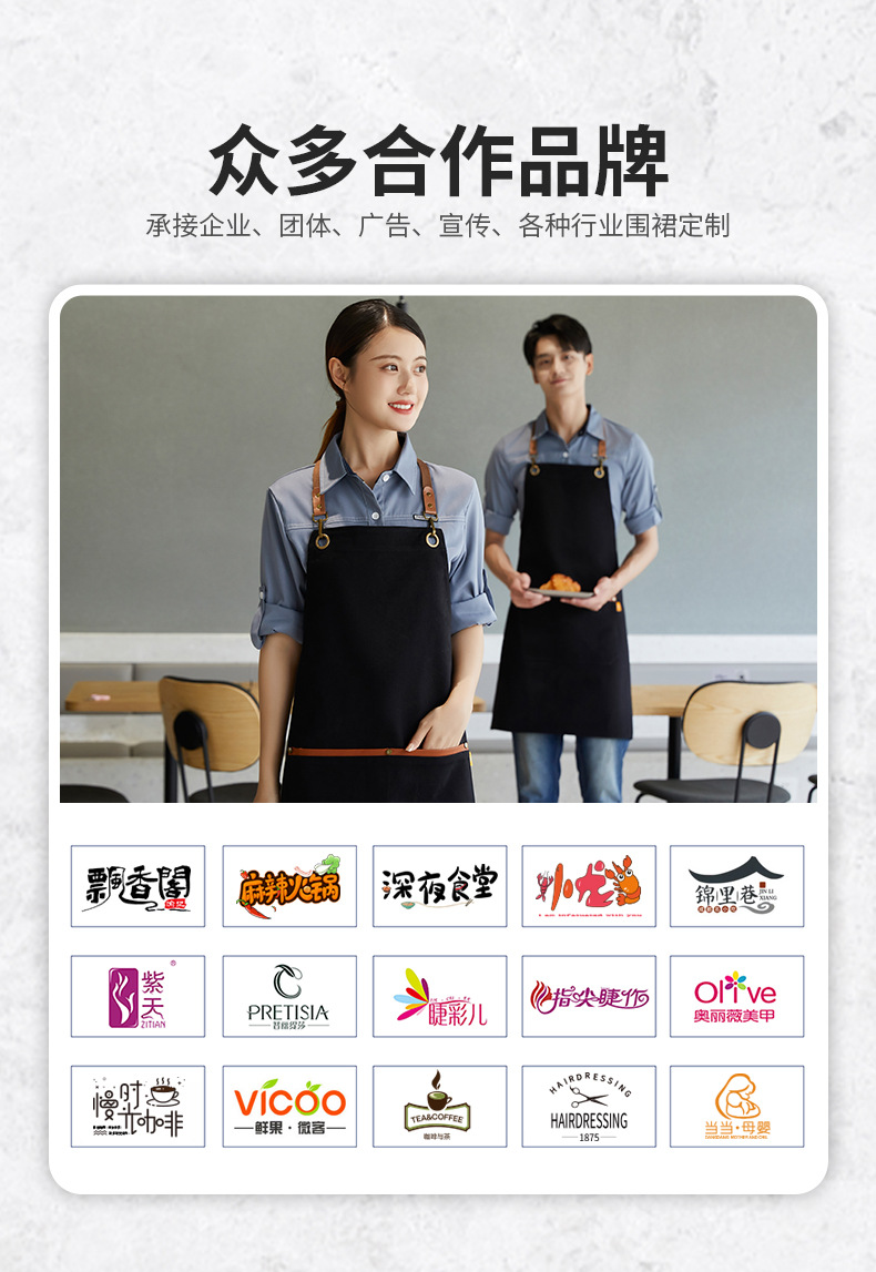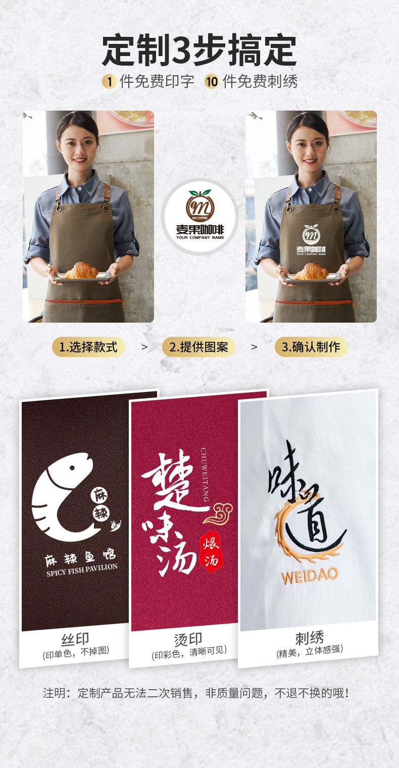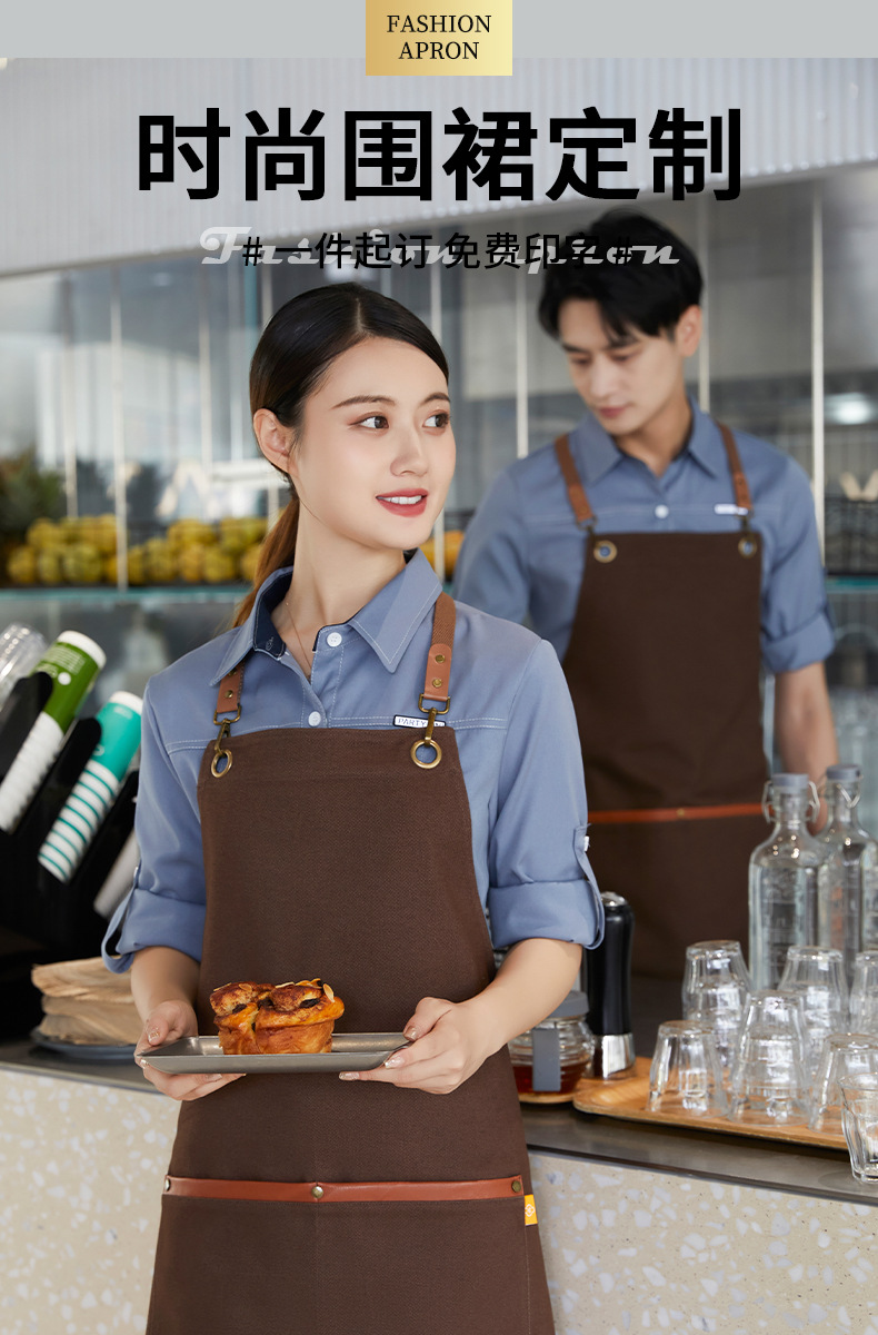 로고 인쇄가 가능한 순면 거친 질감의 앞치마, 고급 레스토랑 특별 매니큐어, 카페, 밀크티 가게, 주방 작업스토어 가기