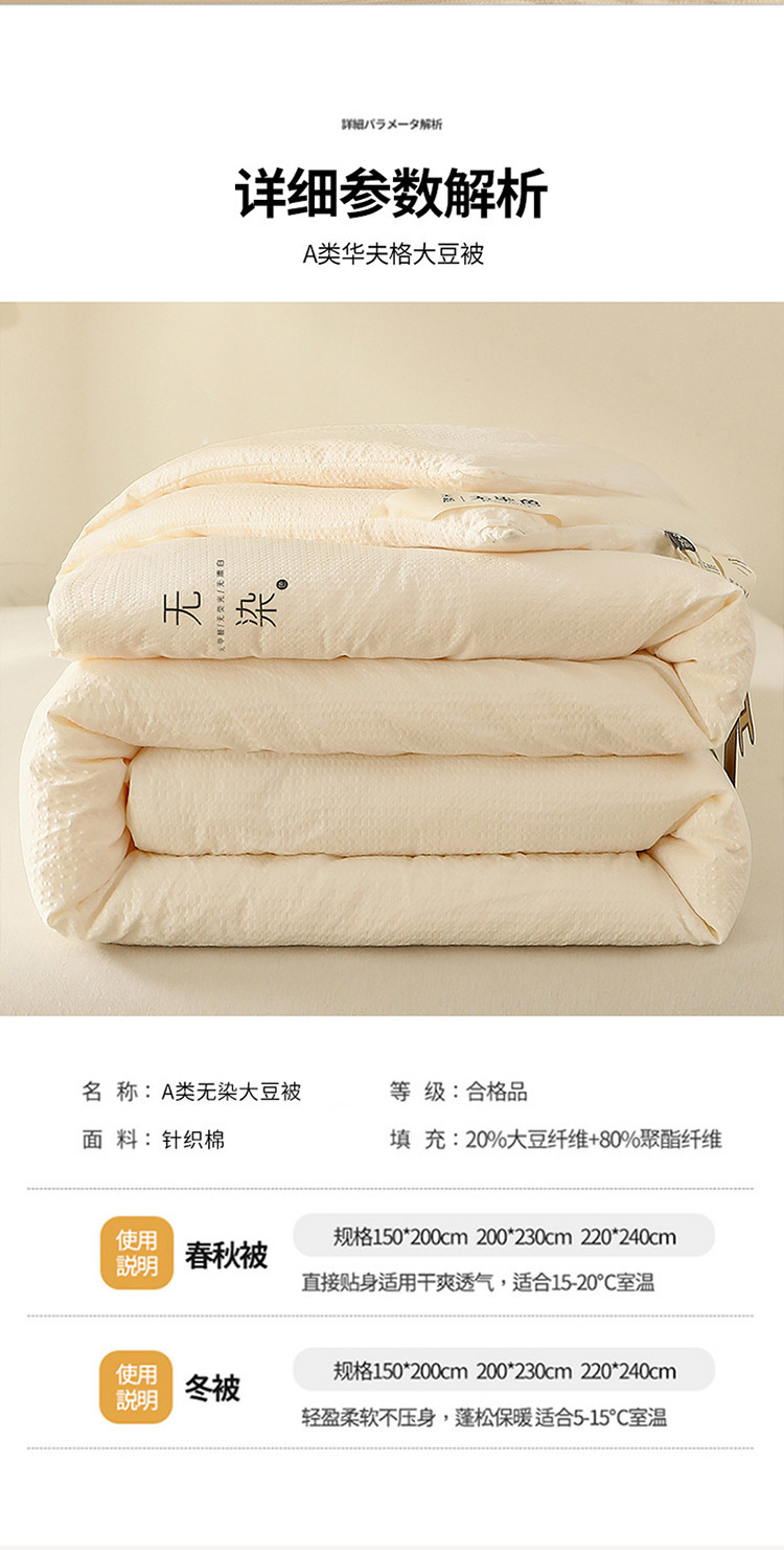 클래스 A 생면 콩 이불, 순면 산모 및 유아용 싱글 및 더블 콩 섬유 이불, 두꺼운 겨울 이불, 봄과 가을 이불, 여름 이불
