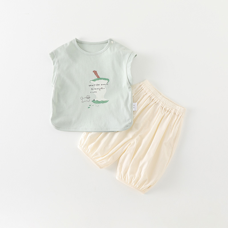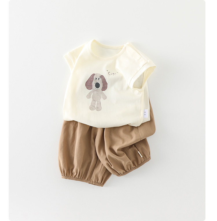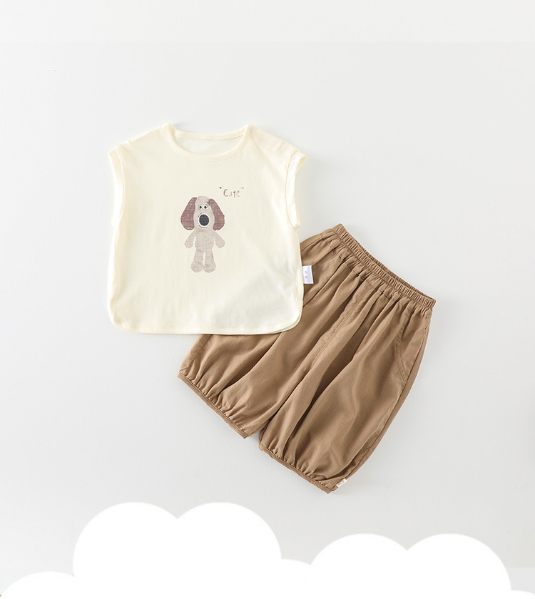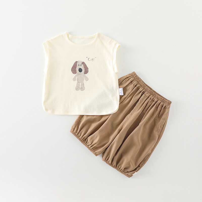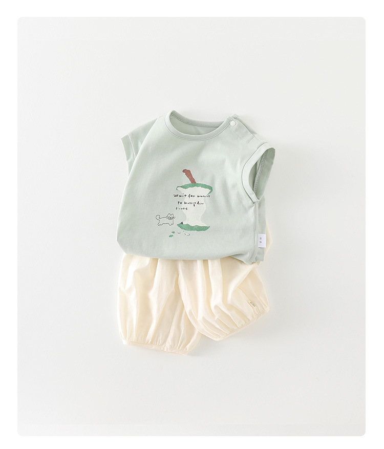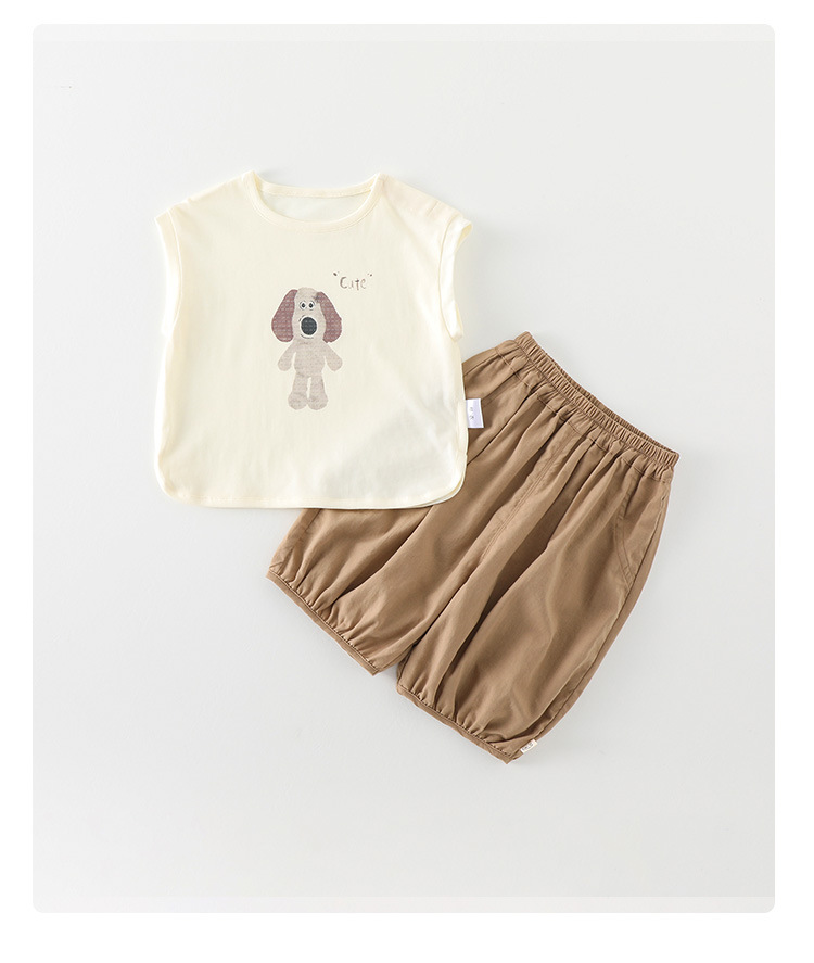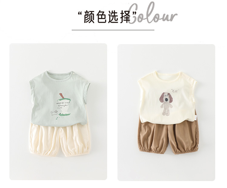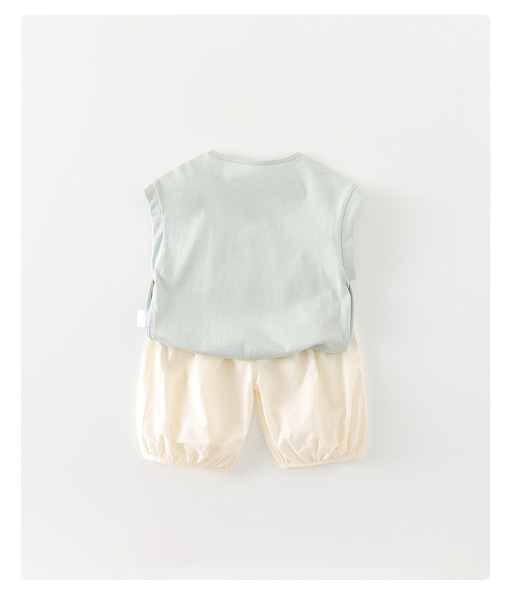 어린이 민소매 세트 여름 아기 얇은 여름 2025 새로운 남성 보물 티셔츠 반바지 분할 투피스 세트 카테고리 A