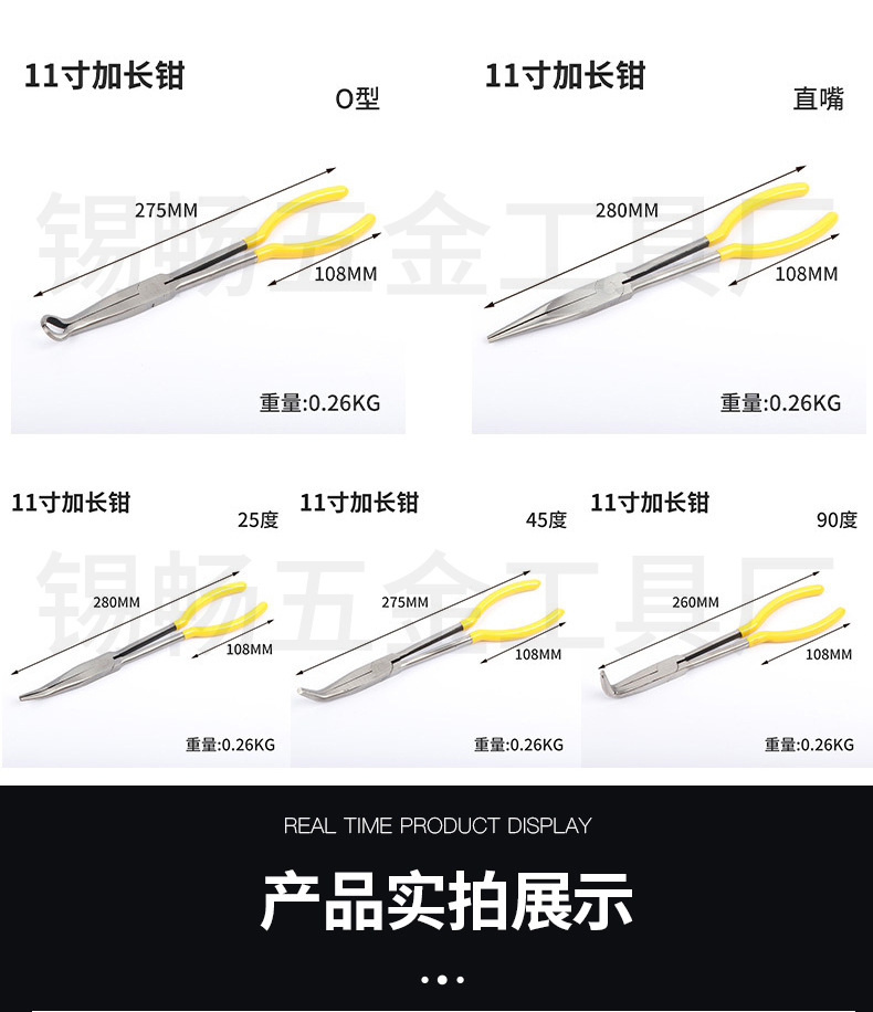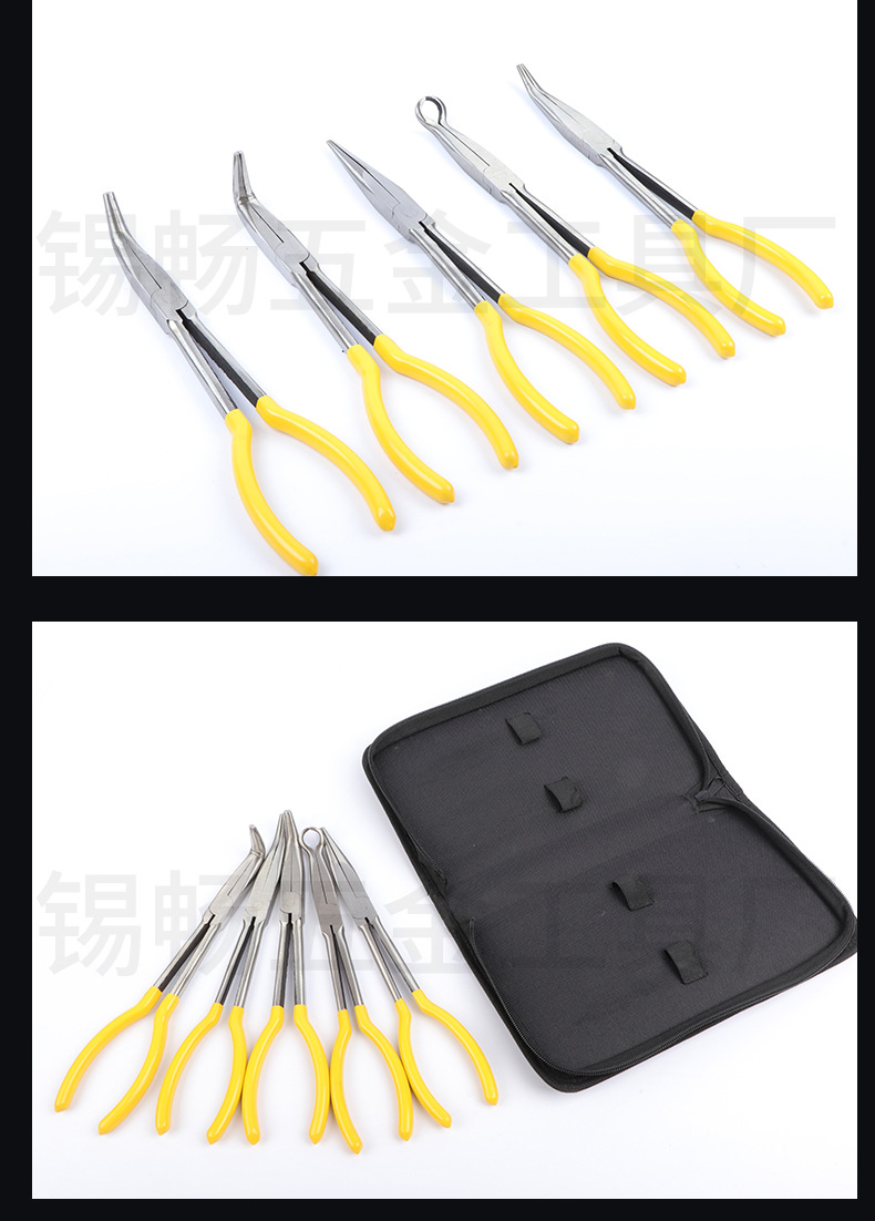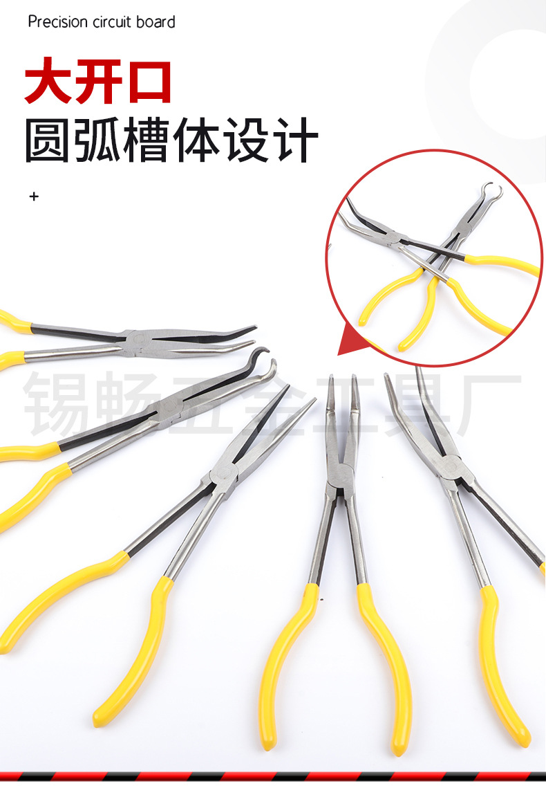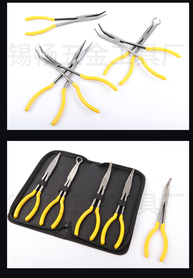 제조업체는 직선 입 25 45 90 O 모양의 긴 핸들 확장 펜치가있는 11 인치 노란색 핸들 확장 펜치를 공급합니다.