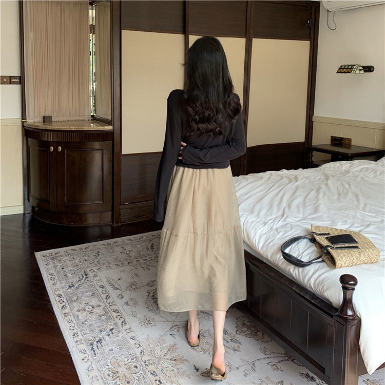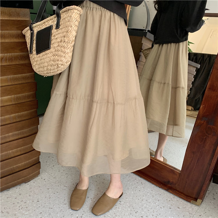 봄과 여름 서양식 치마 컬러 새로운 하이 엔드 스타일 하이 허리 디자인 우산 스커트 올 매치 패션 스커트스토어 가기