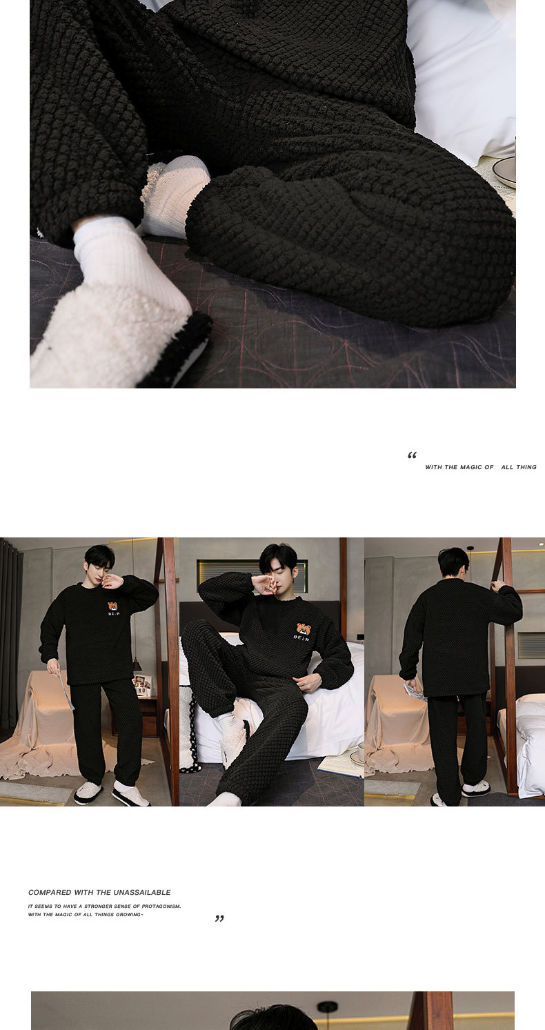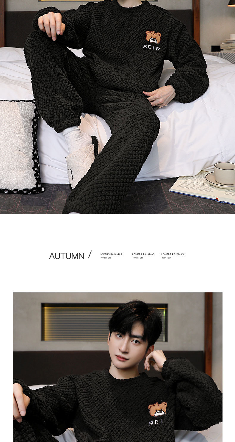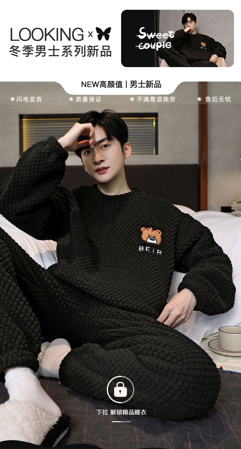 2024 겨울 새로운 플란넬 남성용 두꺼운 잠옷, 긴 소매와 바지, 플러시 홈웨어 세트 외부 착용 가능스토어 가기