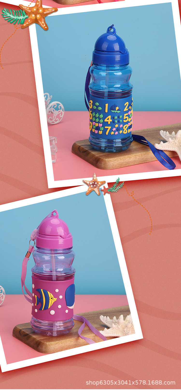 어린이 워터 컵 흡입 튜브 컵 여름 남자와 여자의 야외 스포츠 휴대용 물 컵 물 주전자 가을 저항하는 PE 플라스틱 끈 물 컵스토어 가기