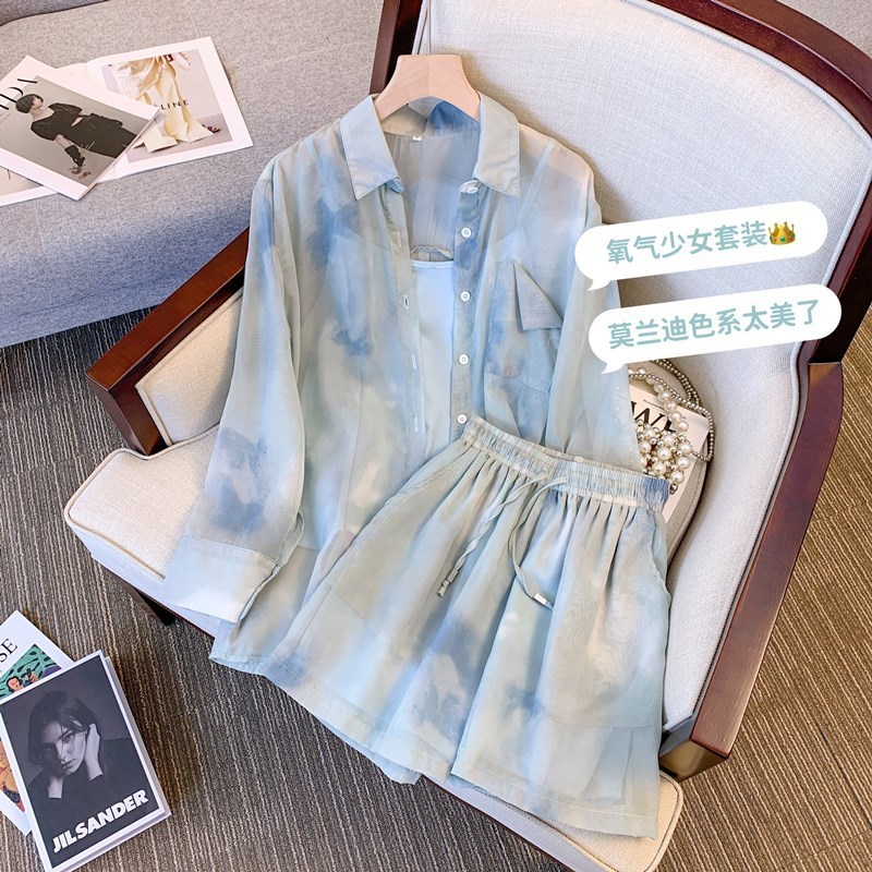 여름 새로운 플러스 사이즈 여성 의류 약간 뚱뚱한 자매 작은 슬림 커버 패션 쉬폰 서양식 세트