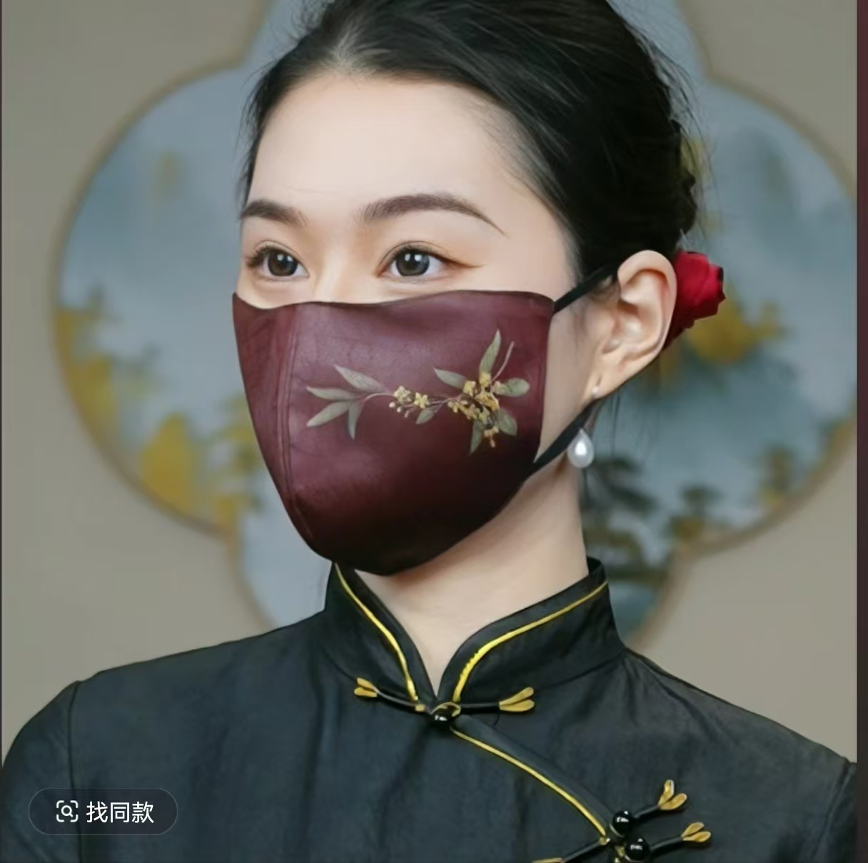 손으로 그린 향기로운 구름 거즈 마스크 더블 레이어 새로운 중국 스타일 자외선 차단제 눈 보호 여성 베일 마스크스토어 가기