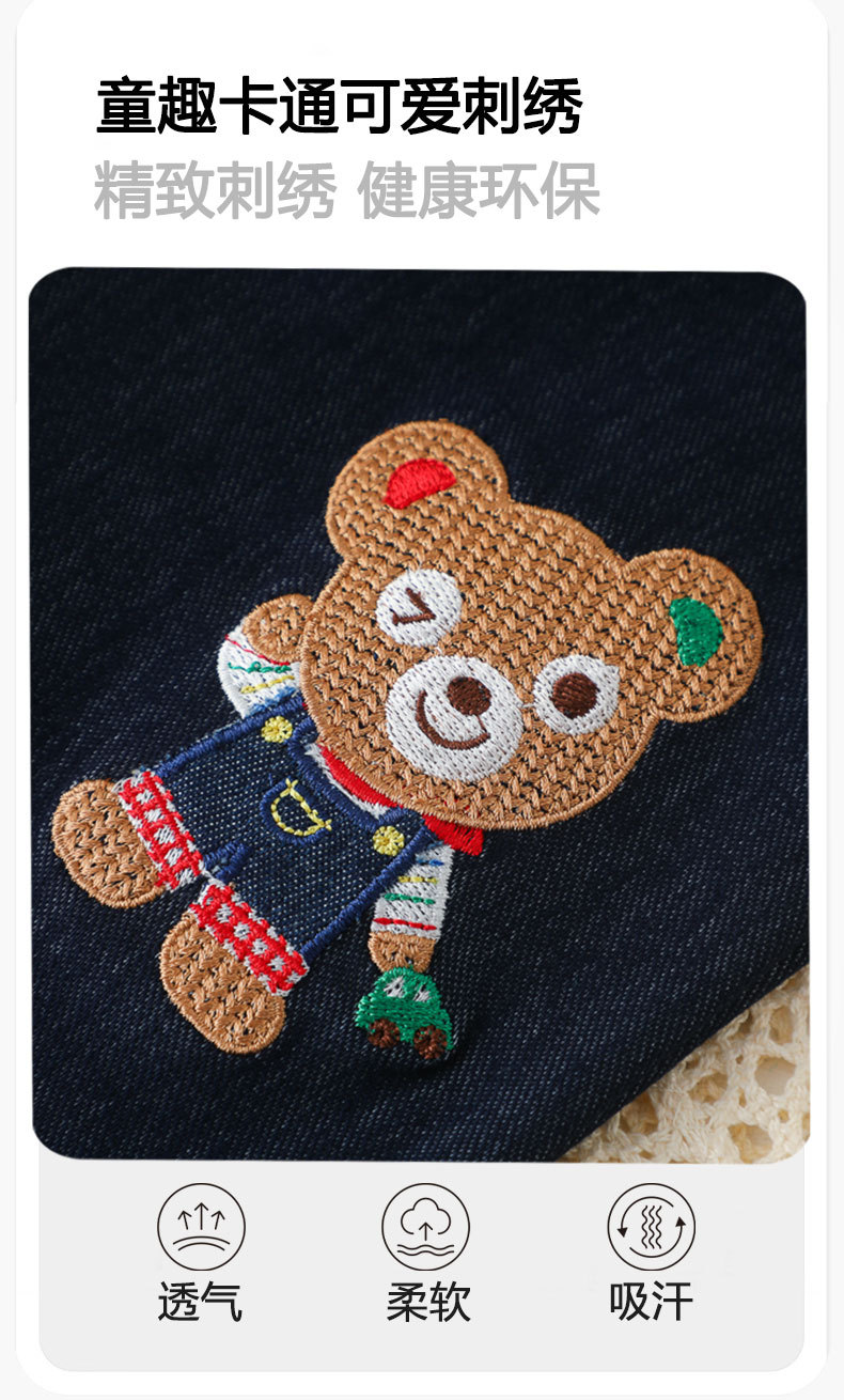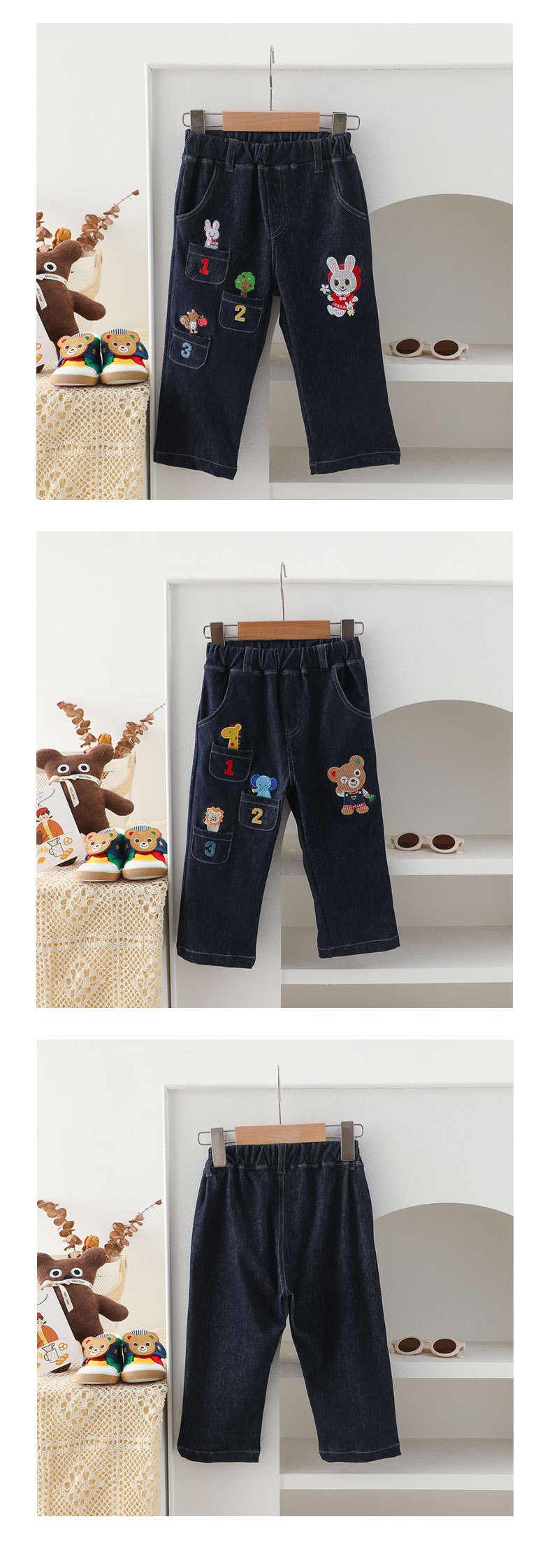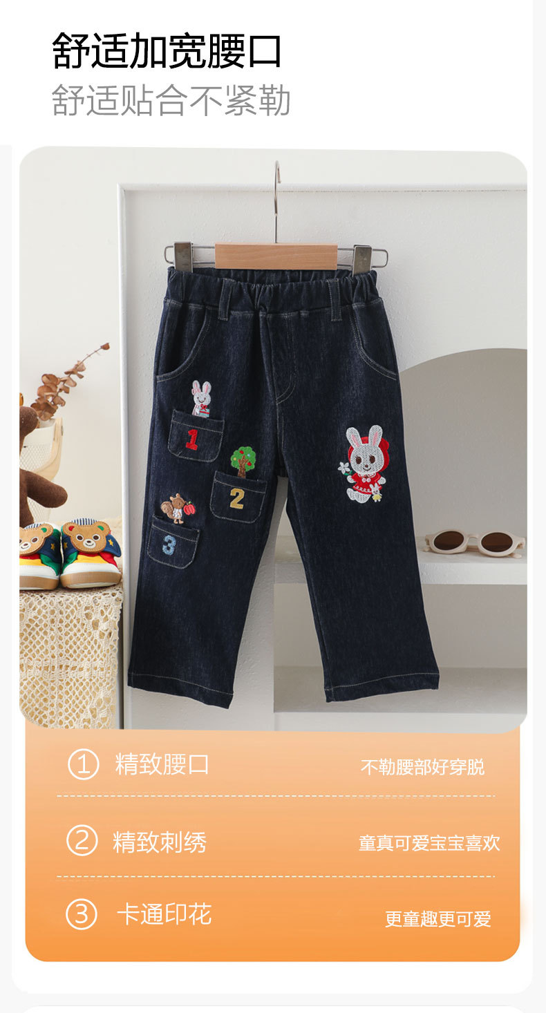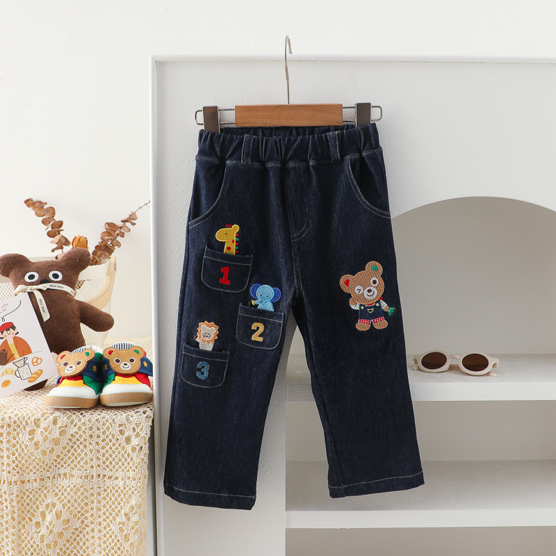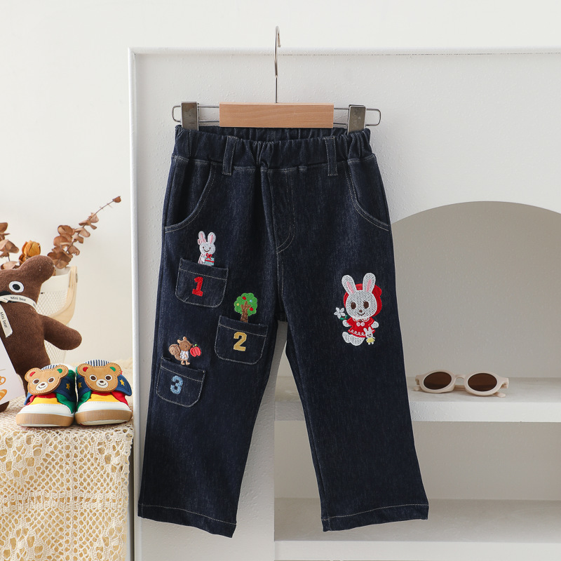미키 아동복 일본 스타일 남녀 아동 자수 데님 팬츠 봄 가을 트렌디한 아동 루즈핏 캐주얼 팬츠 유아용 긴바지 중소 아동용스토어 가기