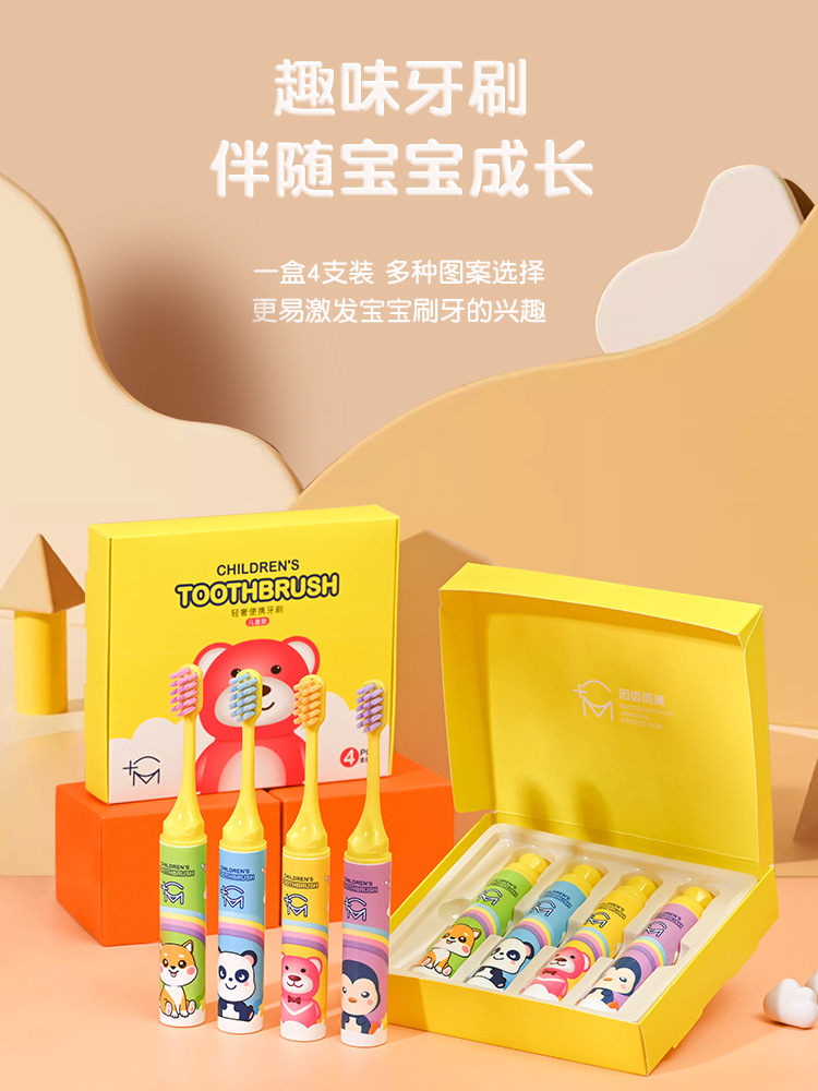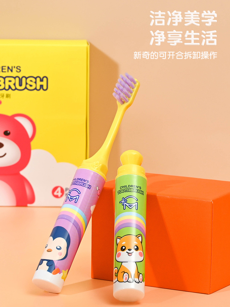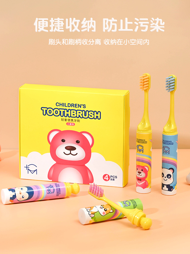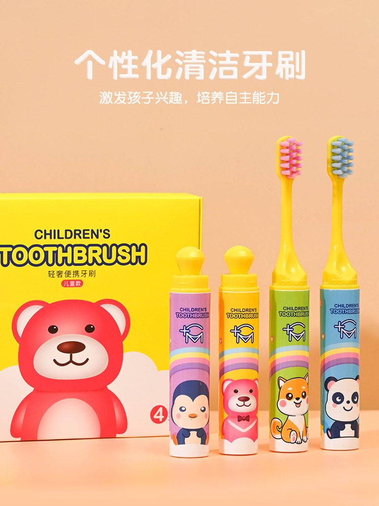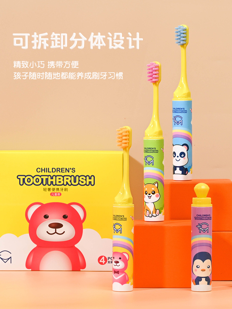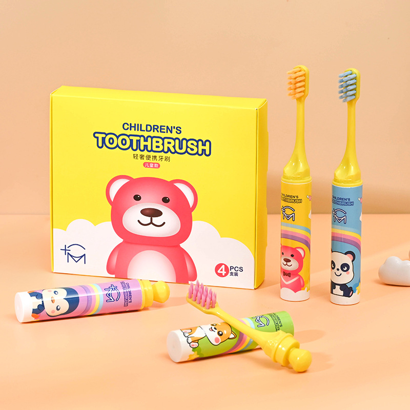 창조적 인 만화 여행 칫솔 휴대용 세트 립스틱 칫솔 부드러운 헤어 칫솔 어린이 공장 도매 4 팩