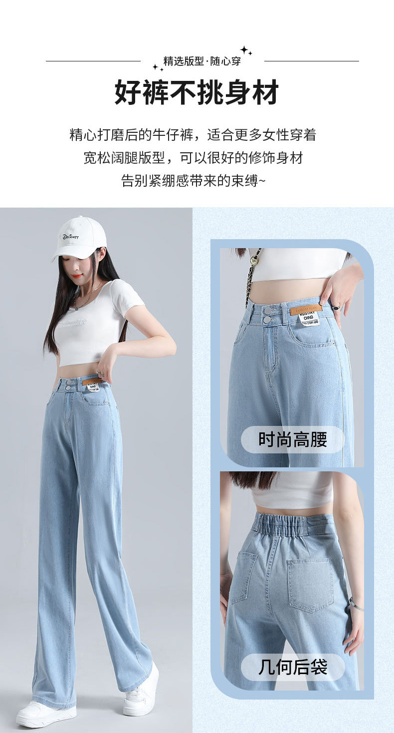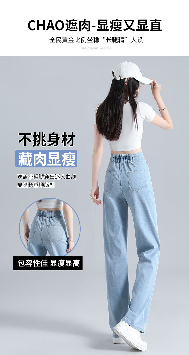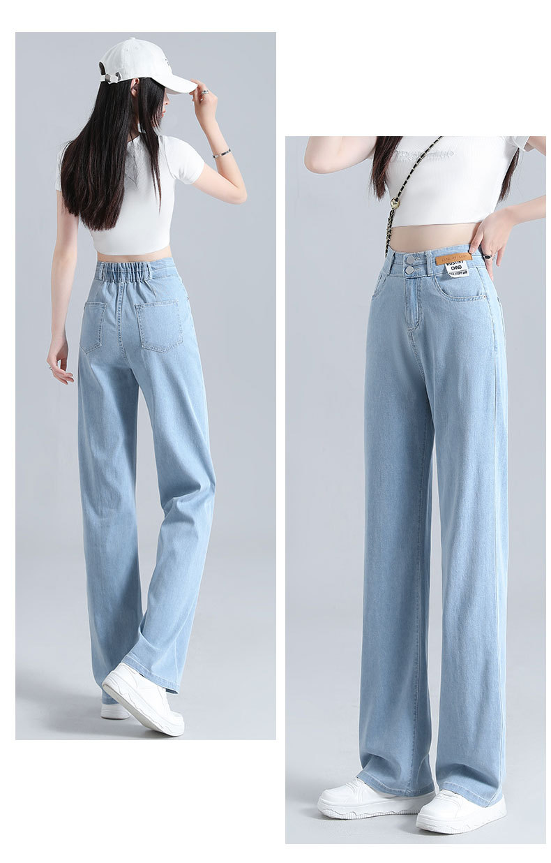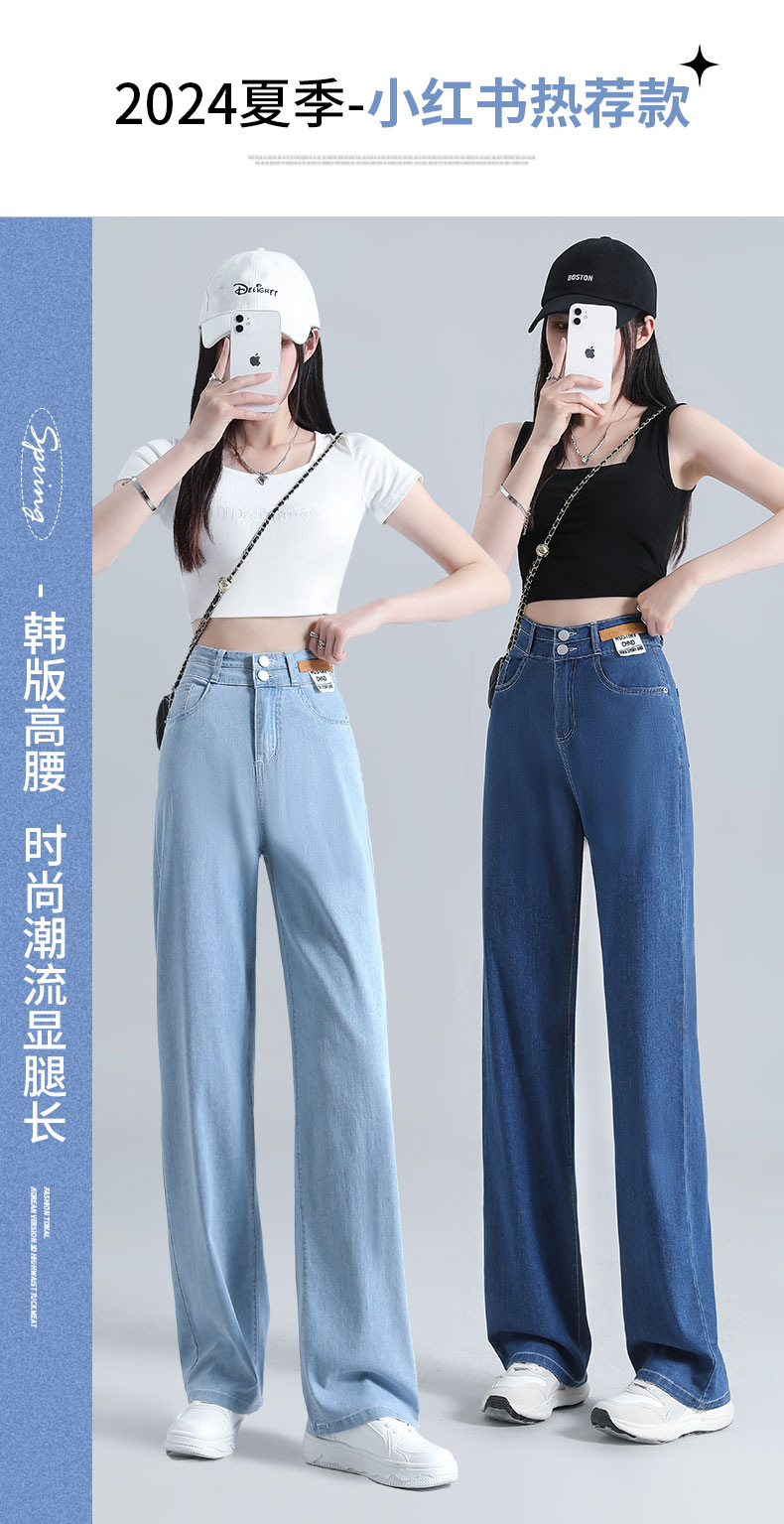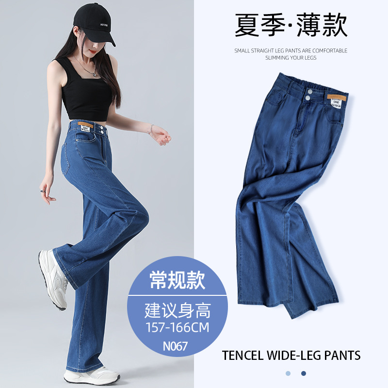 텐셀 청바지 여성용 바지 여름 얇은 높은 허리 딥 넓은 다리 느슨한 좁은 버전 작은 얼음 실크 스트레이트 바지스토어 가기