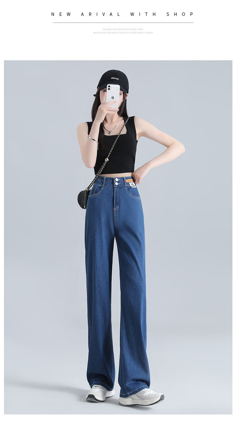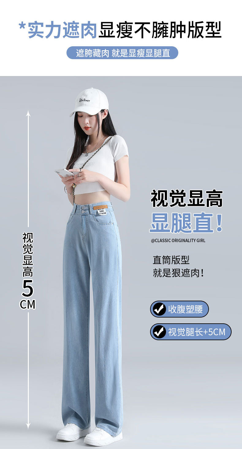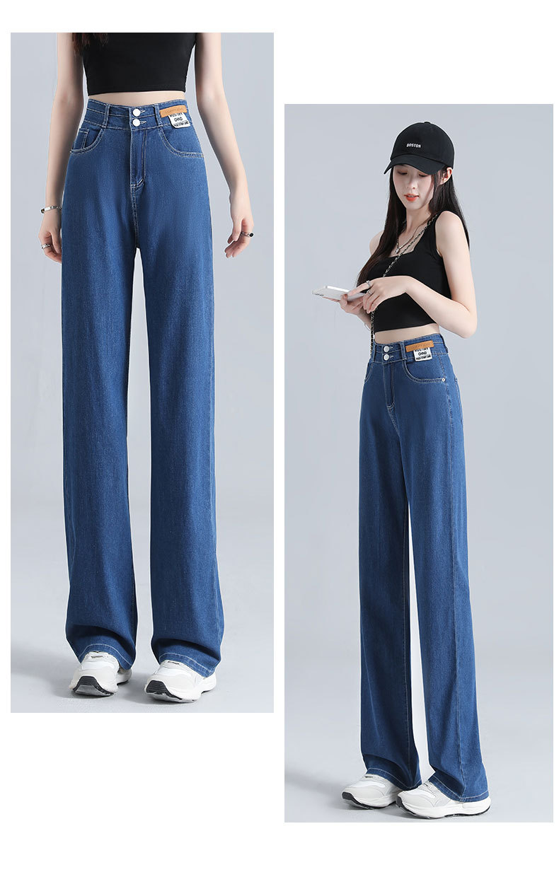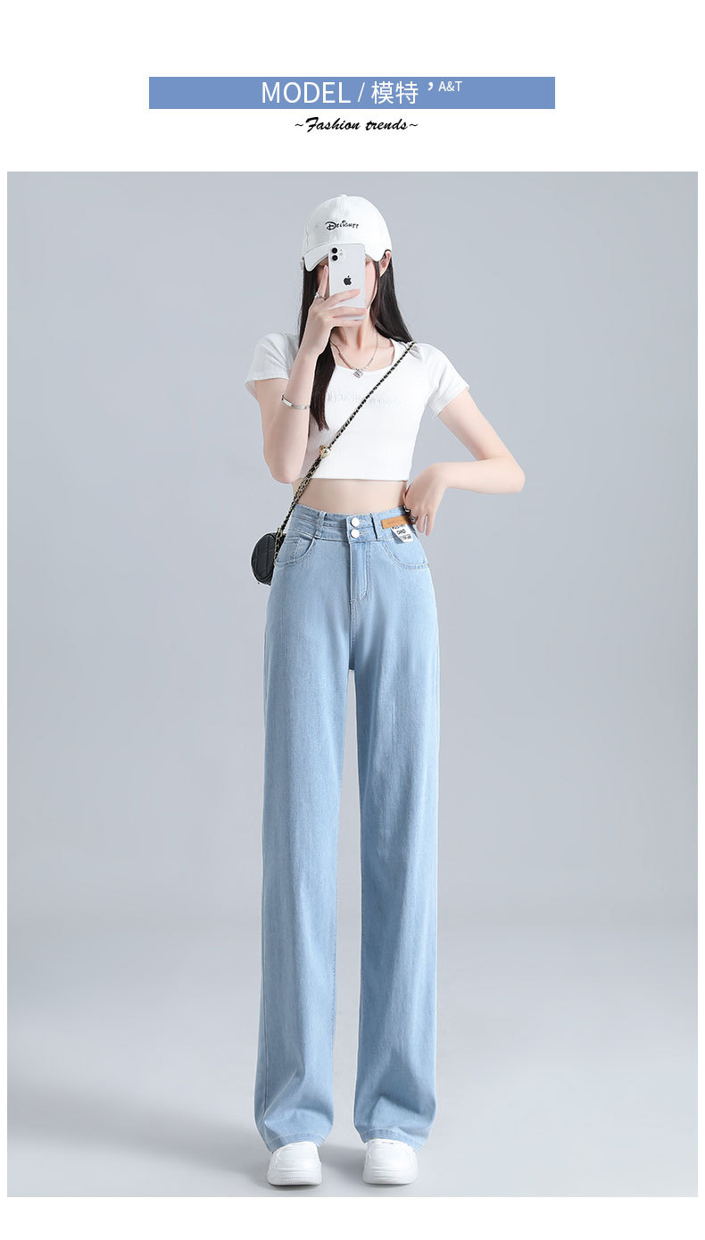 텐셀 청바지 여성용 바지 여름 얇은 높은 허리 딥 넓은 다리 느슨한 좁은 버전 작은 얼음 실크 스트레이트 바지스토어 가기
