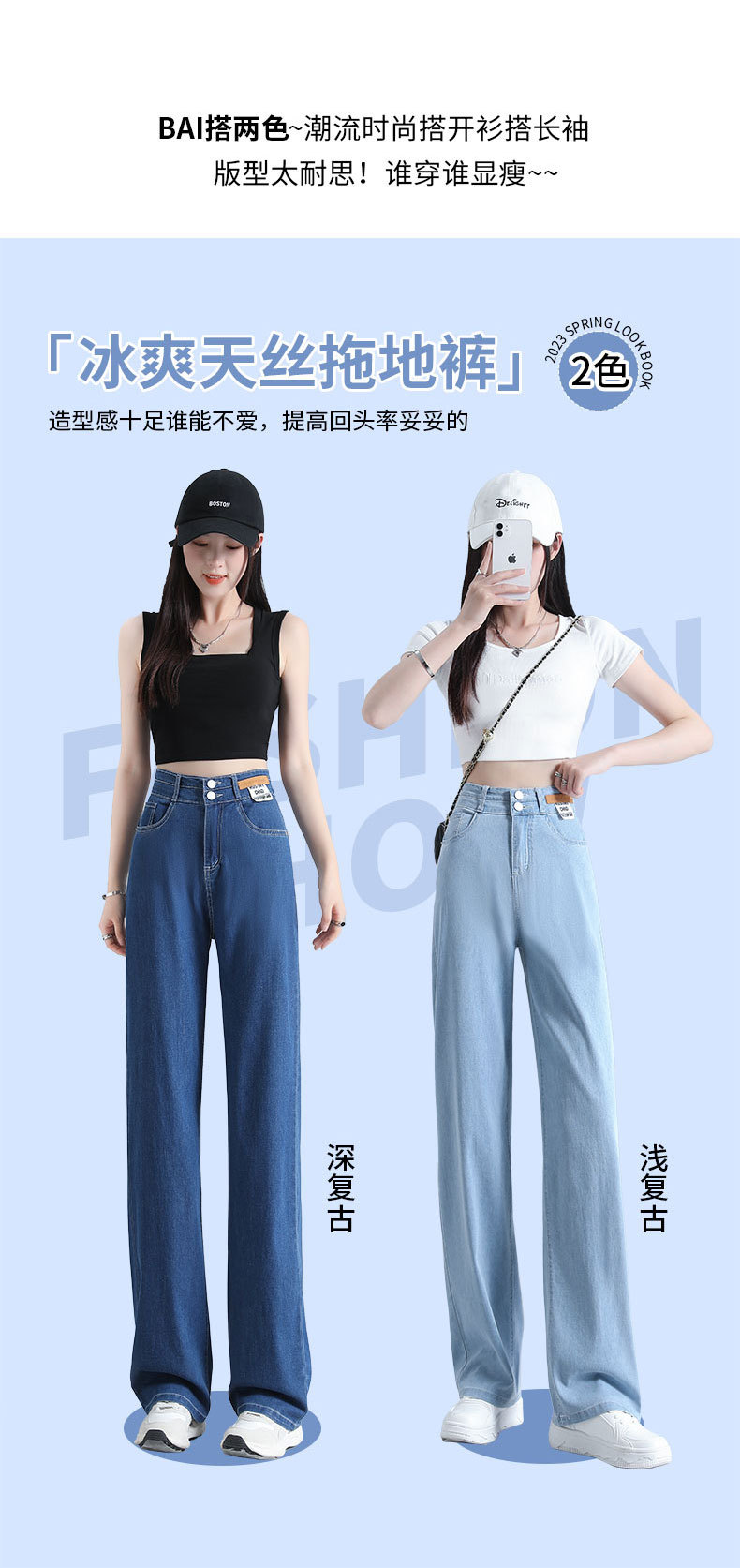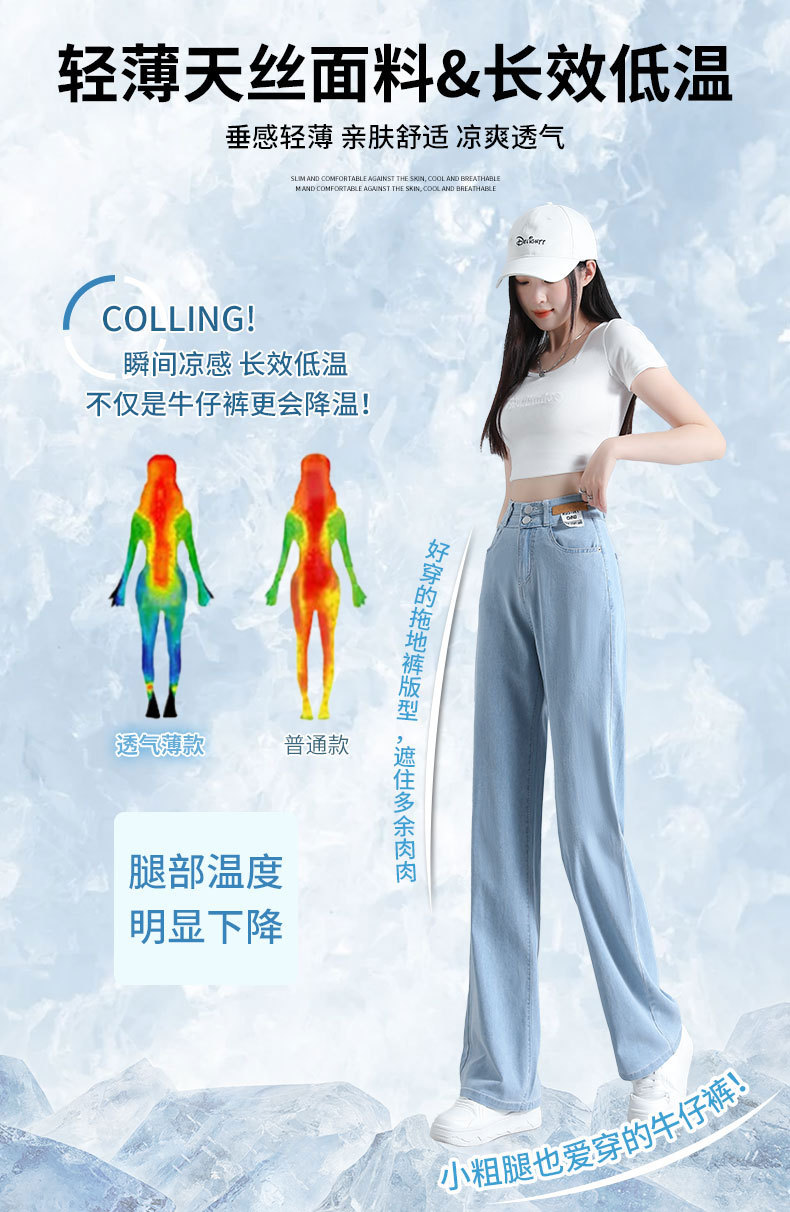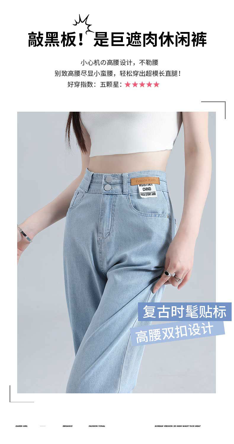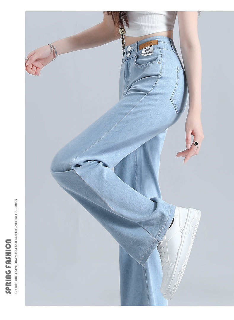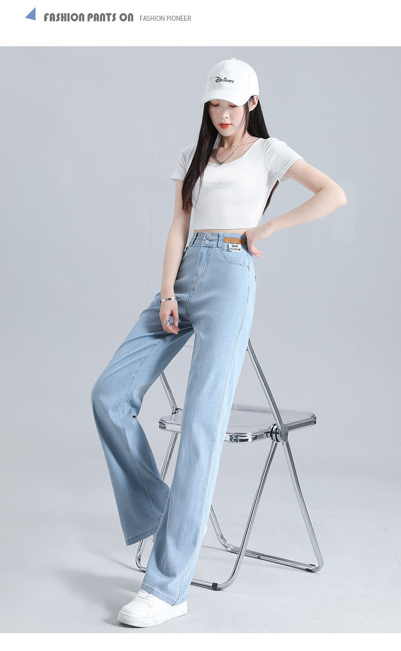텐셀 청바지 여성용 바지 여름 얇은 높은 허리 딥 넓은 다리 느슨한 좁은 버전 작은 얼음 실크 스트레이트 바지스토어 가기