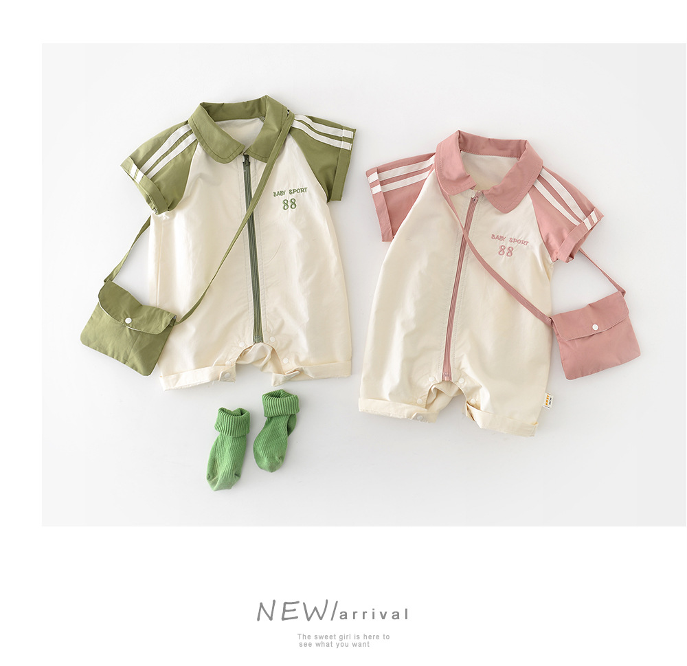 2025 여름 새 어린이 자수 외복 등반착용 아기와 어린 아이들의 라글란 슬리브 점프 수트 배달 가방 52795