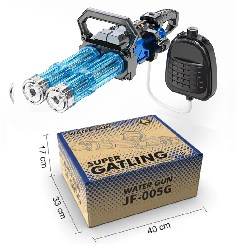 • [영어박스] 이중총신 개틀링 물총 + 백팩 [투명블루]