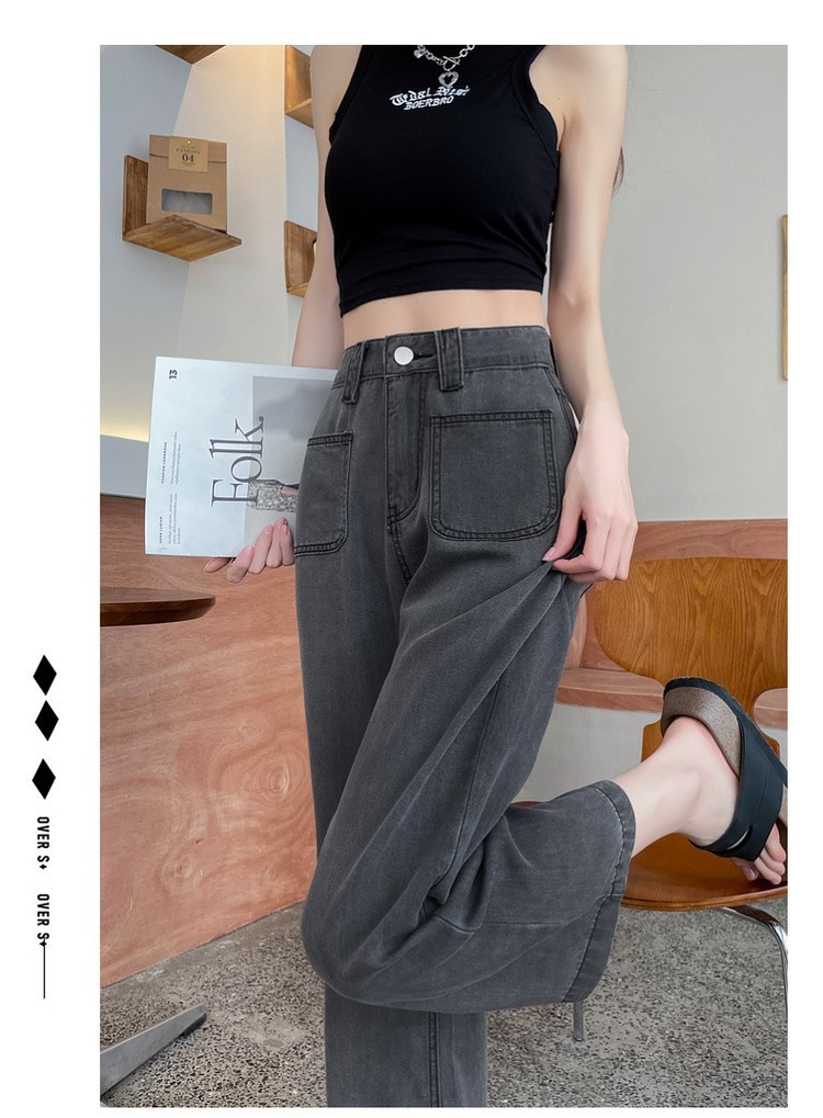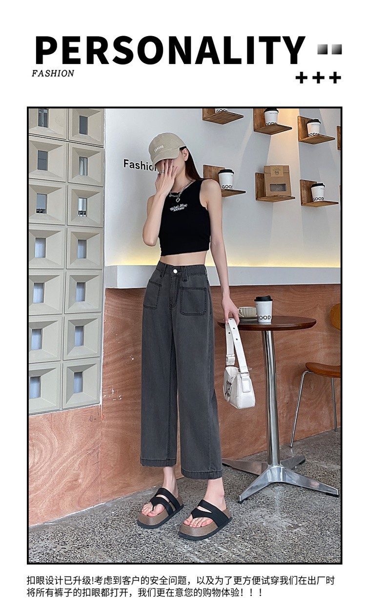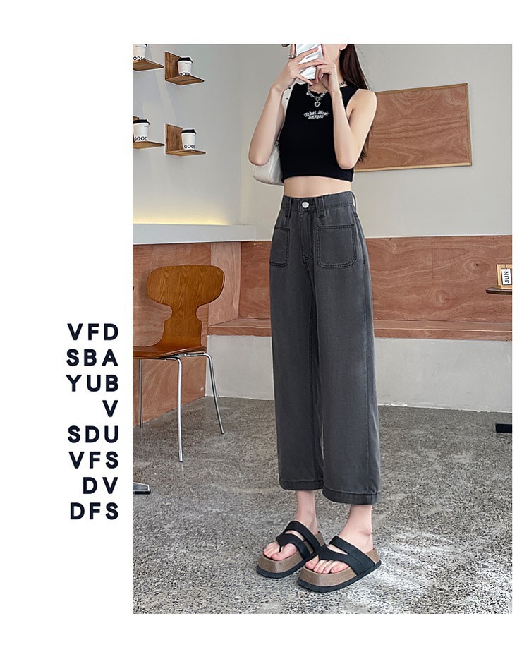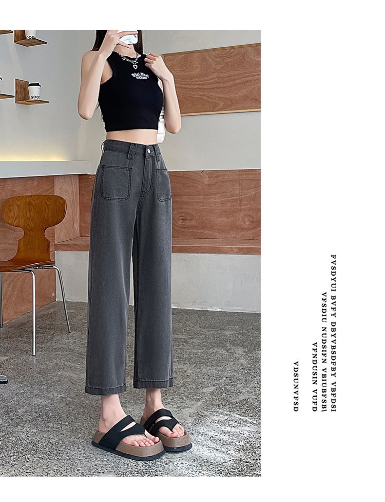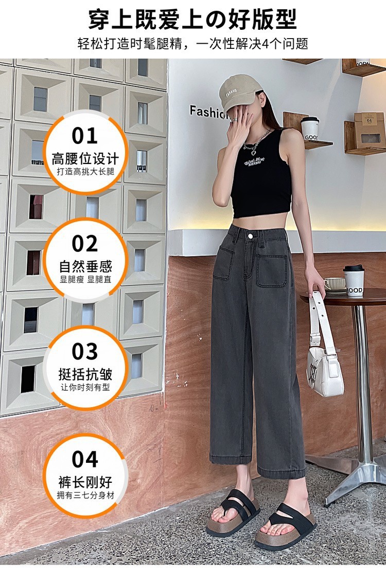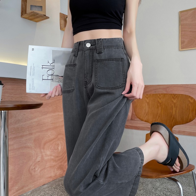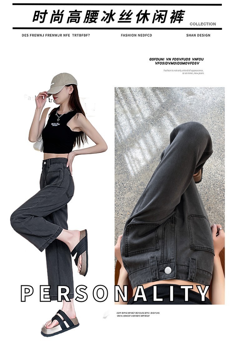 블랙 텐셀 청바지 여성용 여름 얇은 작은 키 8 점 바지 느슨한 복용량 아이스 실크 와이드 레그 바지스토어 가기