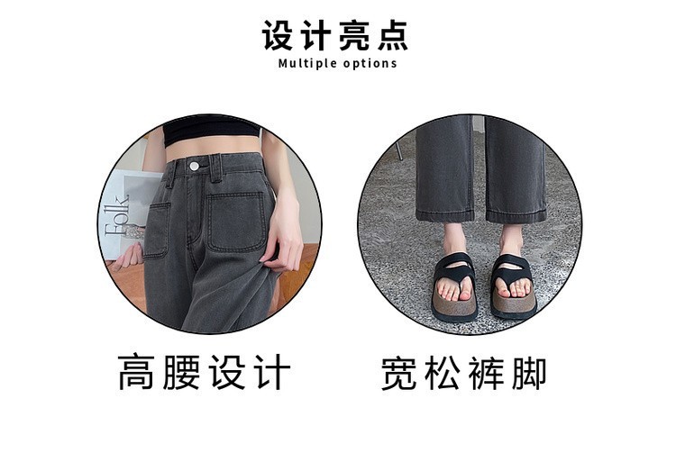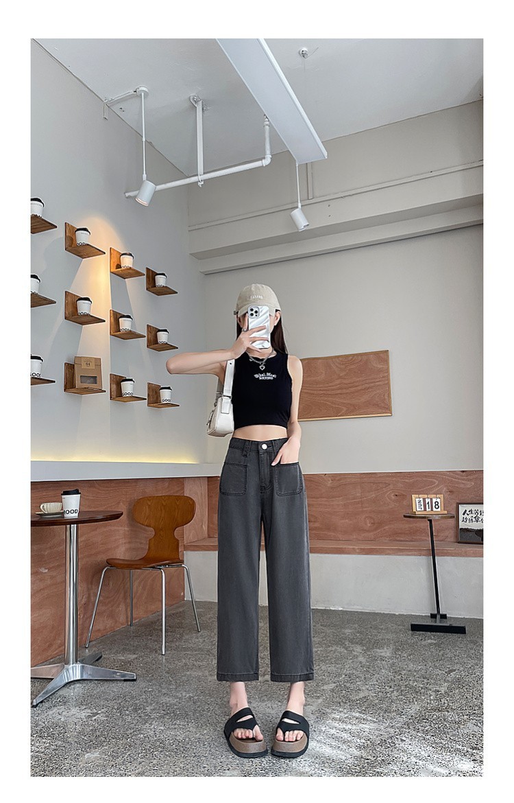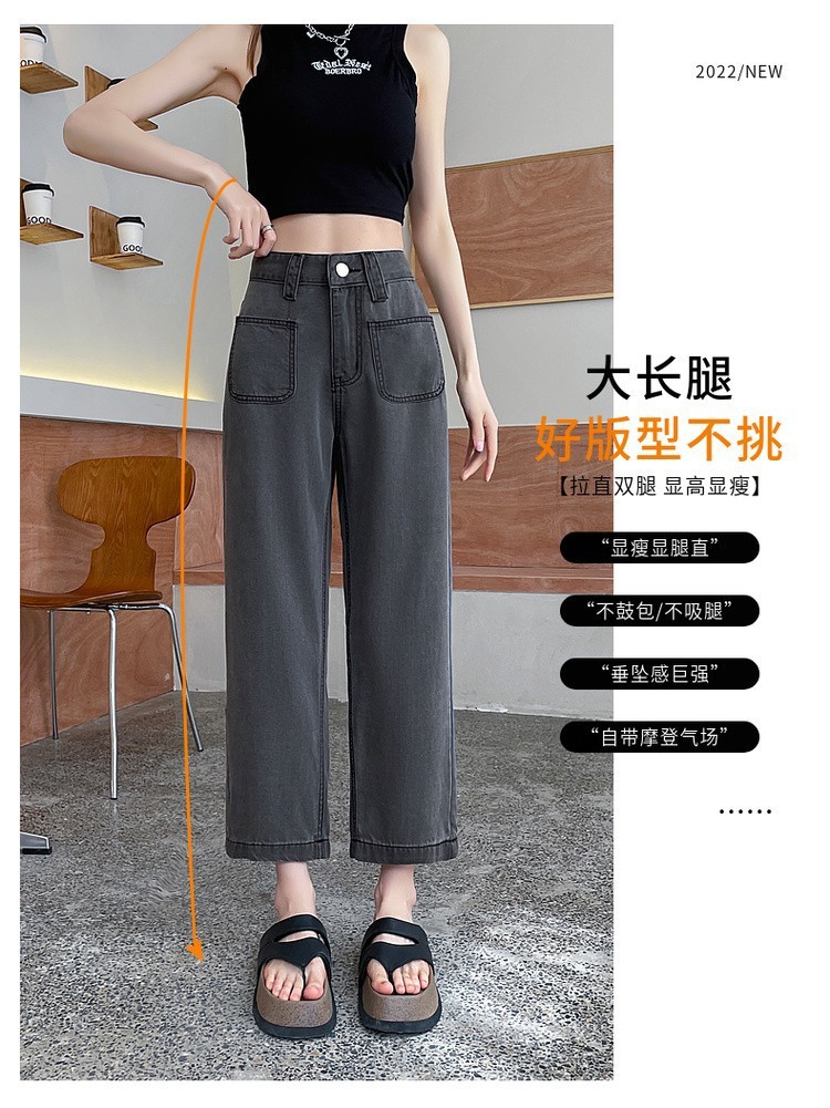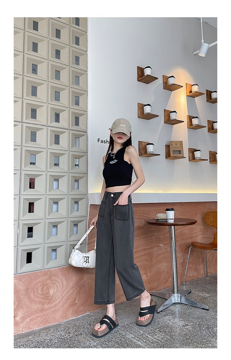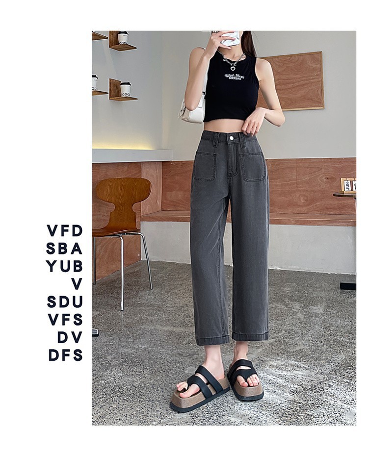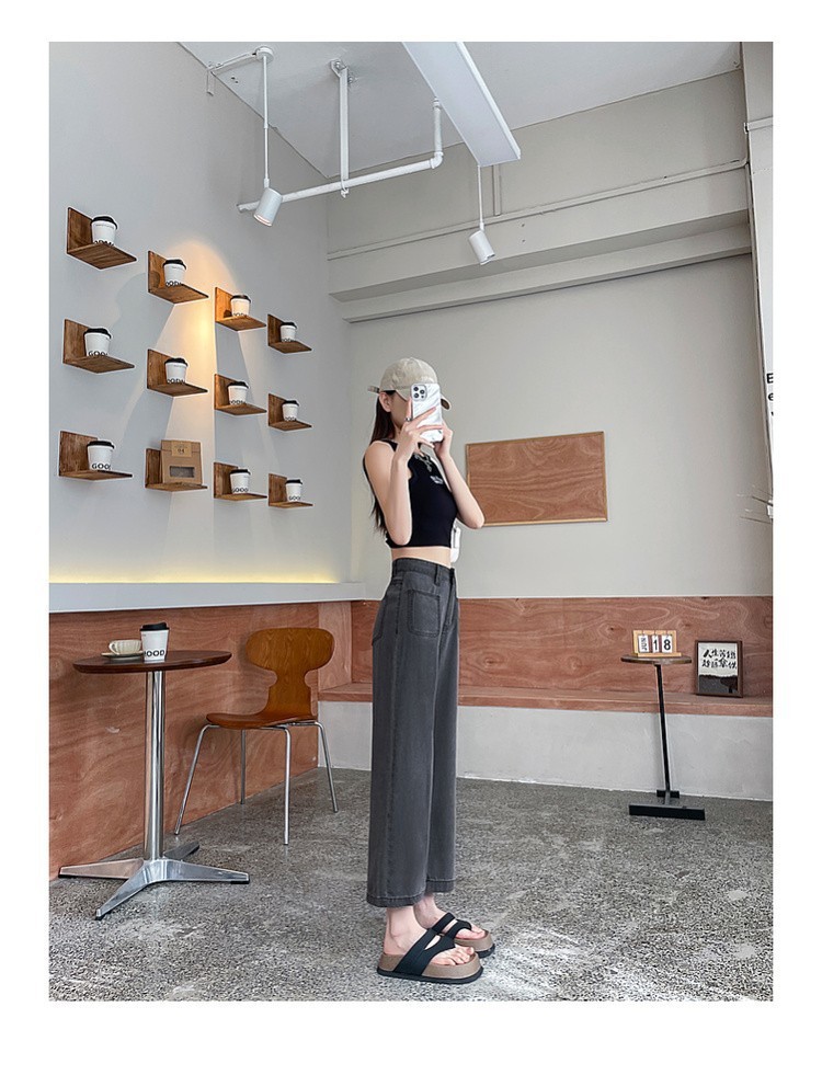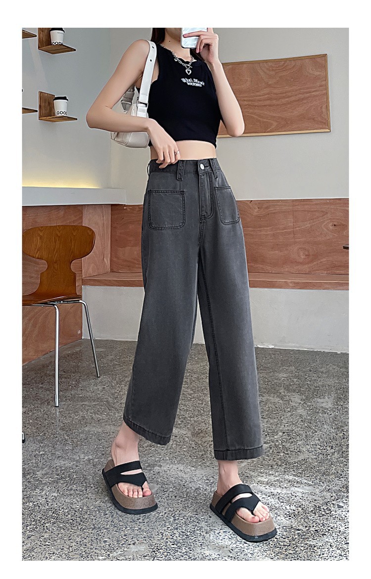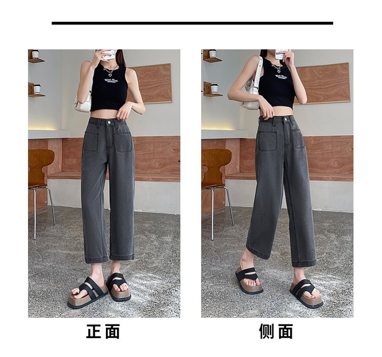 블랙 텐셀 청바지 여성용 여름 얇은 작은 키 8 점 바지 느슨한 복용량 아이스 실크 와이드 레그 바지스토어 가기