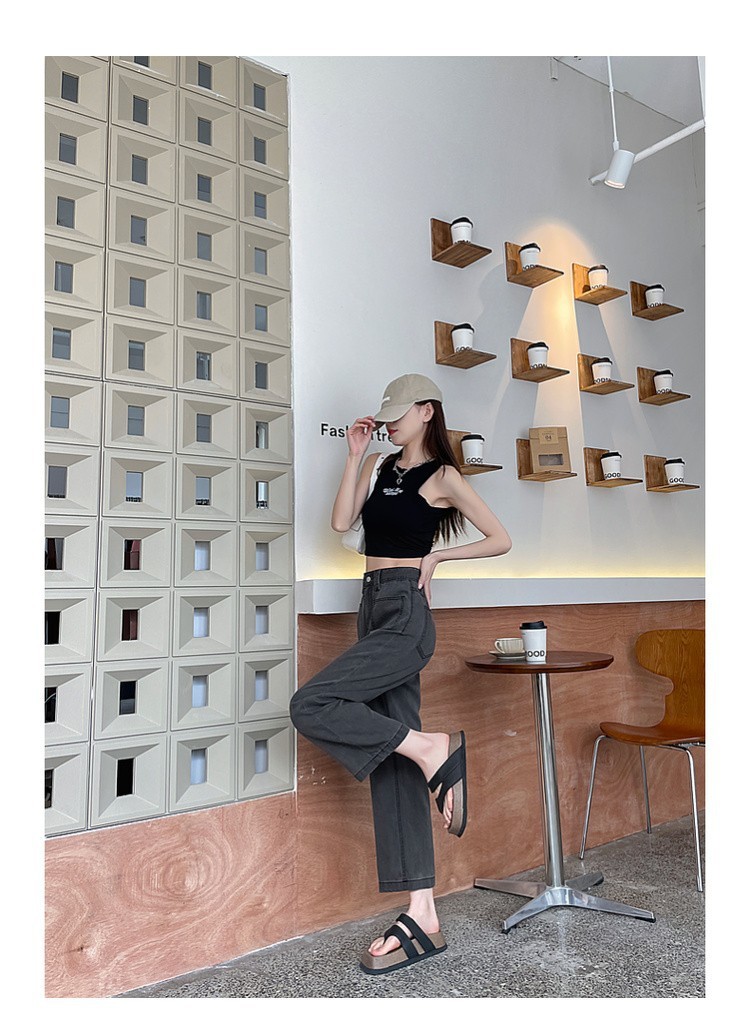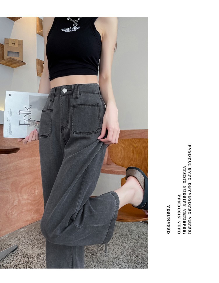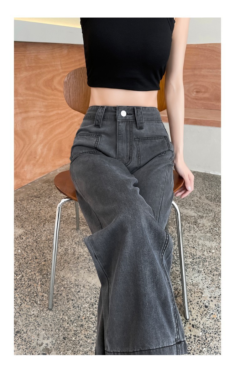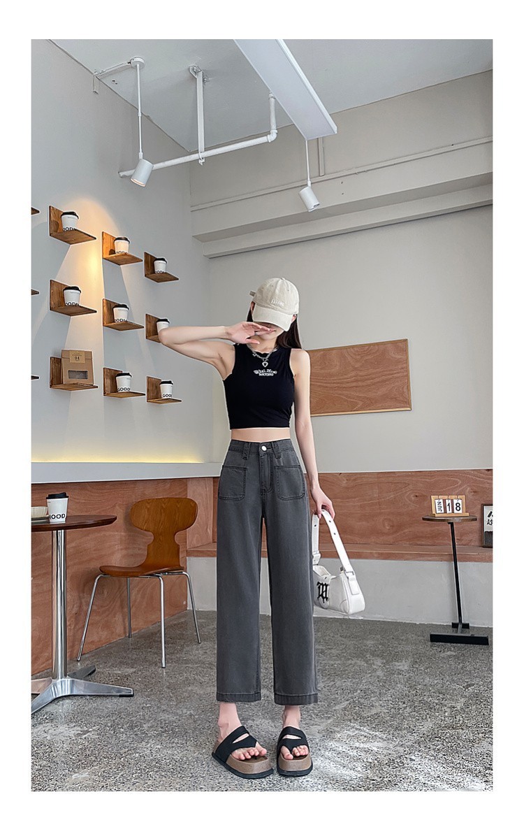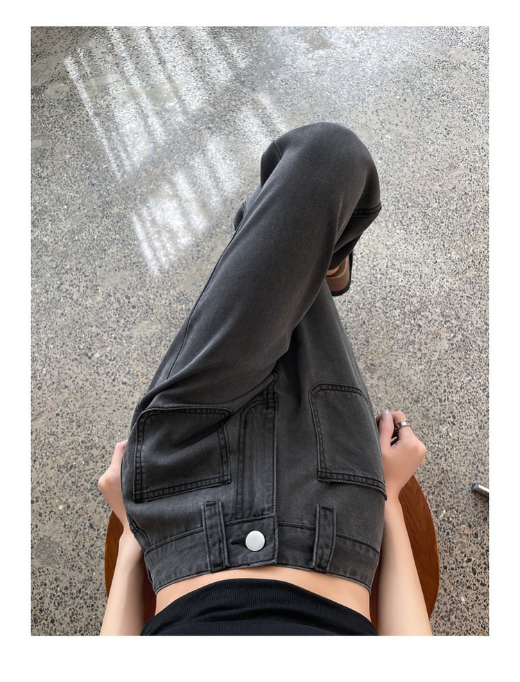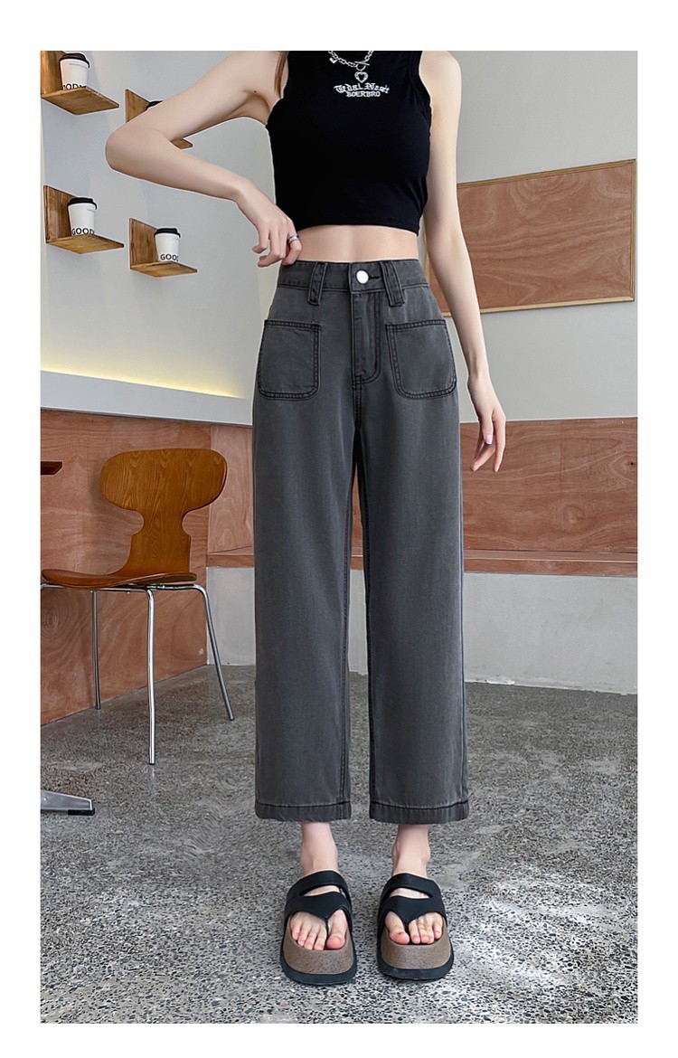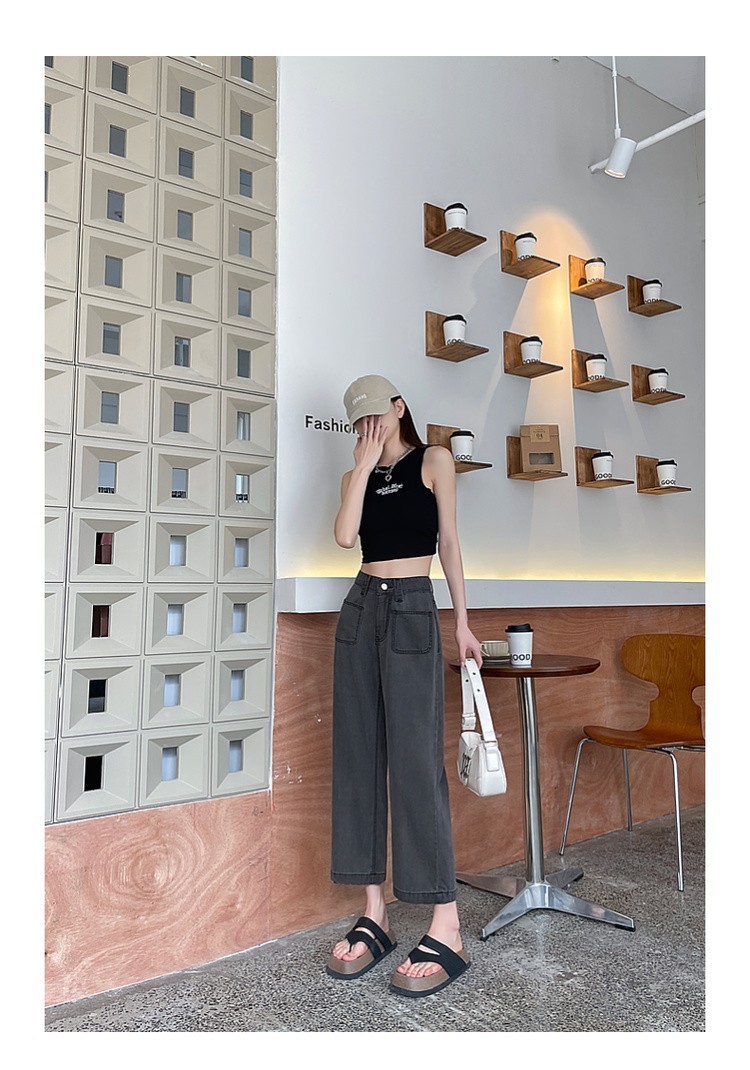 블랙 텐셀 청바지 여성용 여름 얇은 작은 키 8 점 바지 느슨한 복용량 아이스 실크 와이드 레그 바지스토어 가기