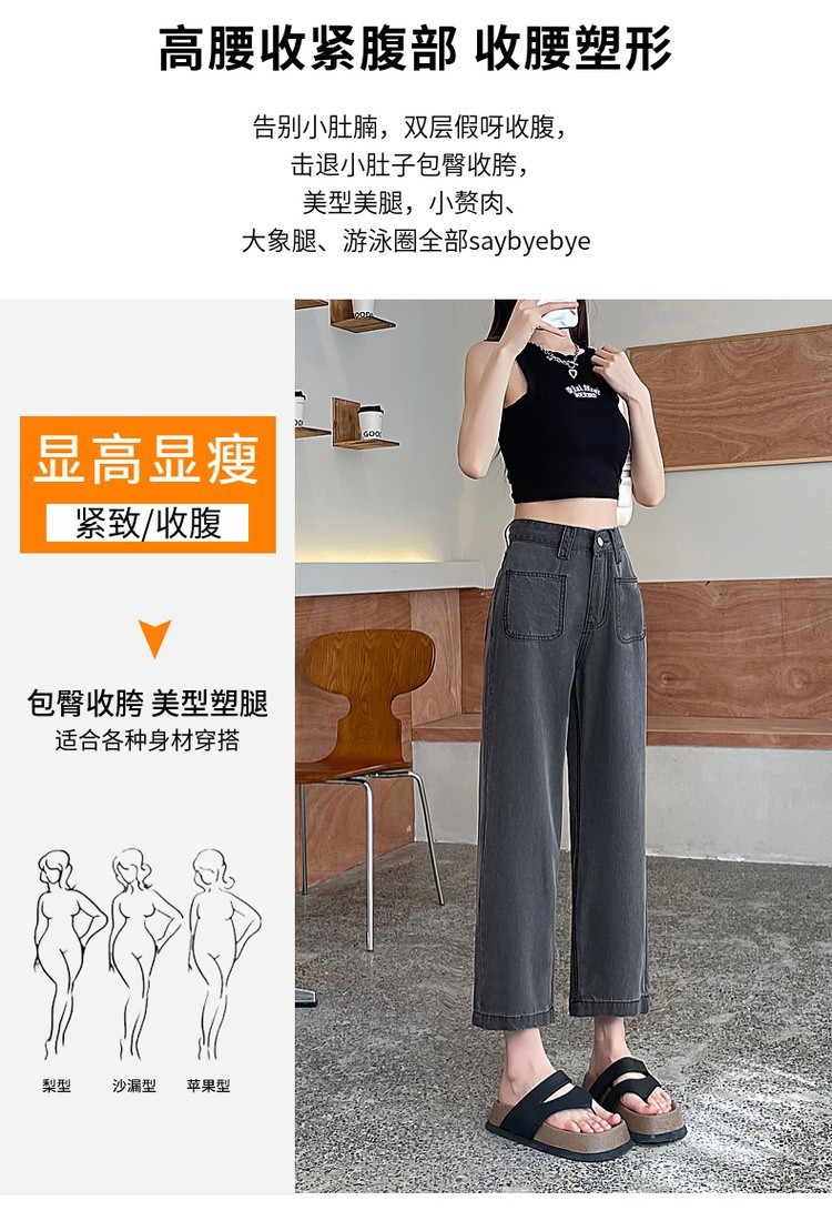 블랙 텐셀 청바지 여성용 여름 얇은 작은 키 8 점 바지 느슨한 복용량 아이스 실크 와이드 레그 바지