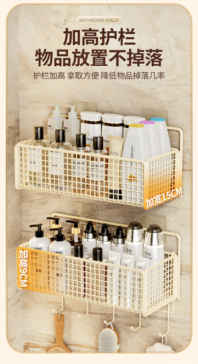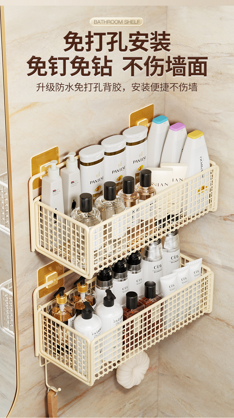 화장실 저장 랙 벽걸이 스토리지 랙 펀치 없는 옷걸이 가정용 화장실 욕실 세면대 보관 랙