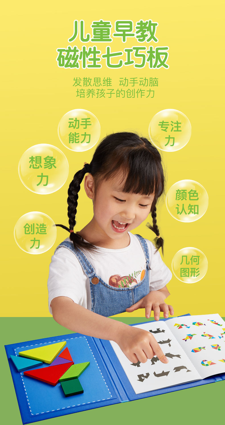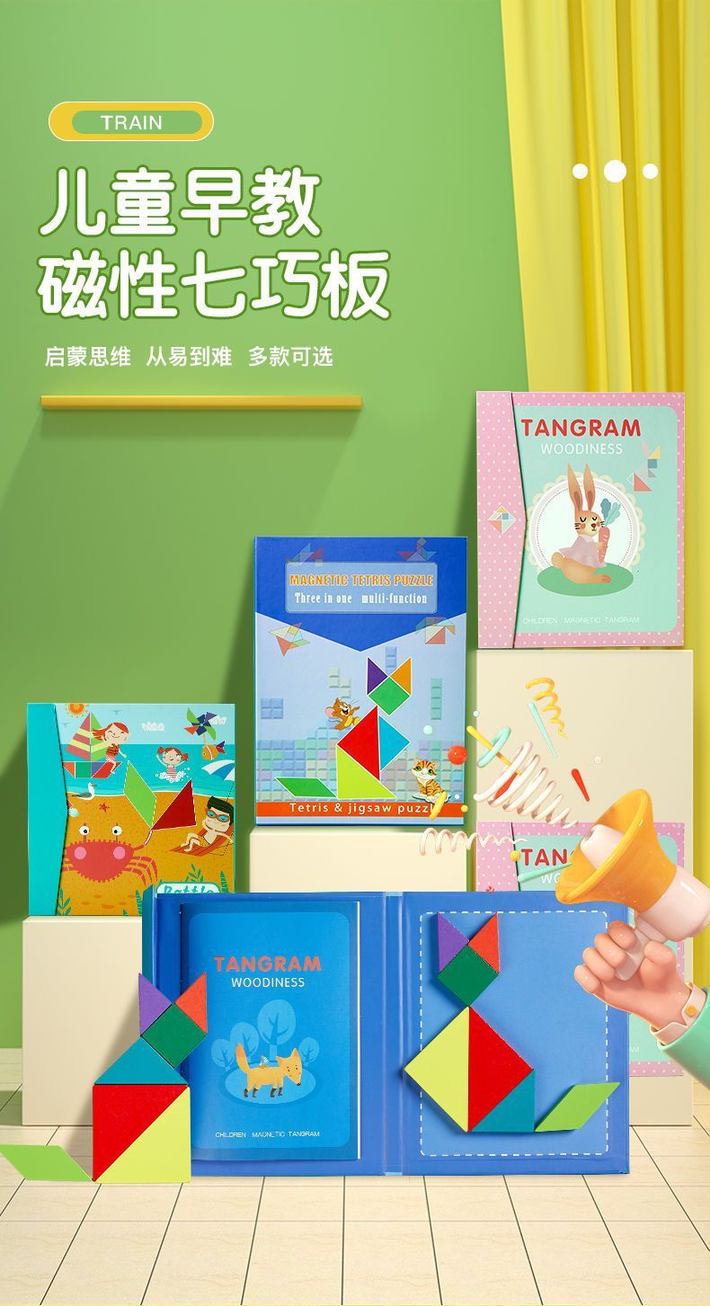 어린이 자석 tangram 지적 퍼즐 초등학생 1 학년 수학 교육 보조 유치원 특수 교육 장난감스토어 가기