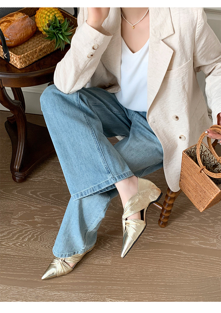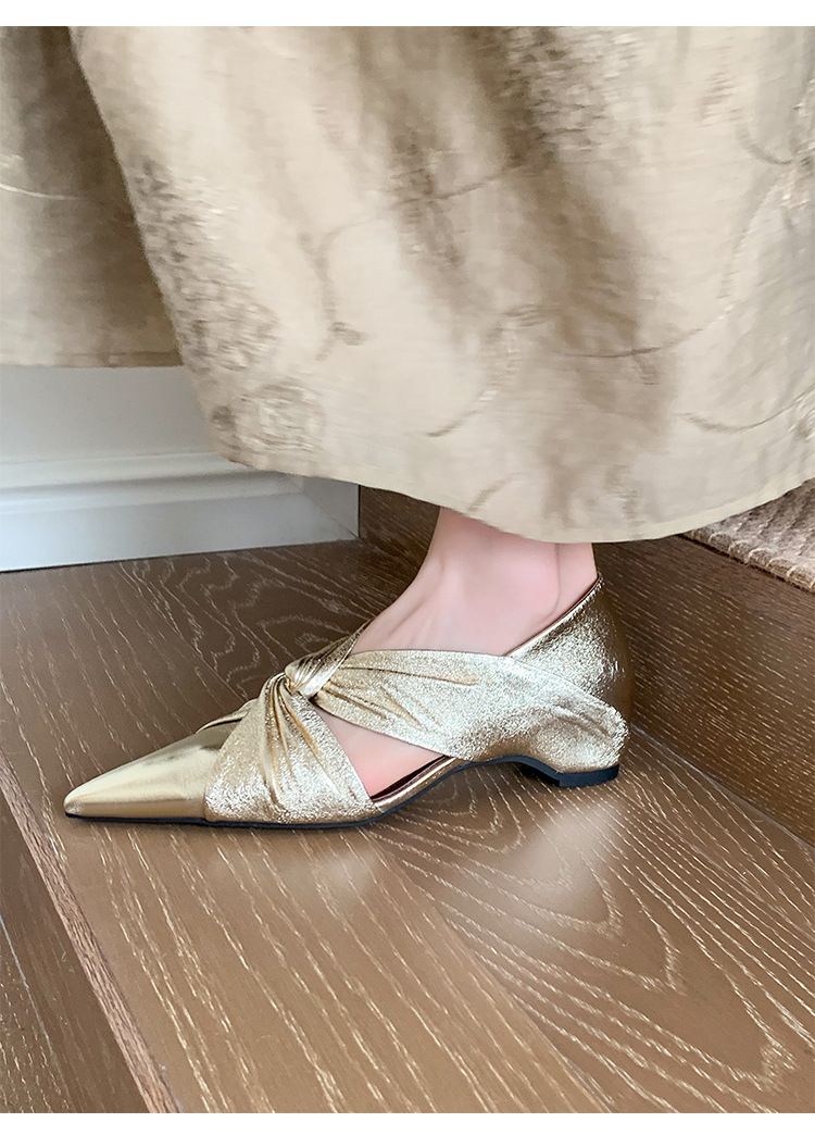 슈퍼 소프트 투어링 가죽 싱글 레이어 신발 여성의 2025 새로운 틈새 중공 플리츠 웨지 힐 저렴한 럭셔리 우아한 샌들 트렌디