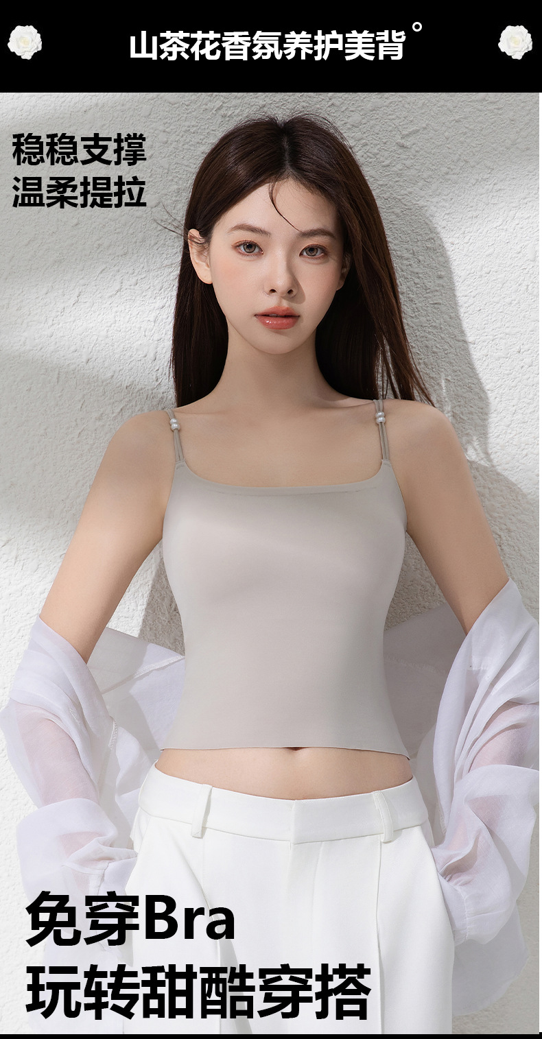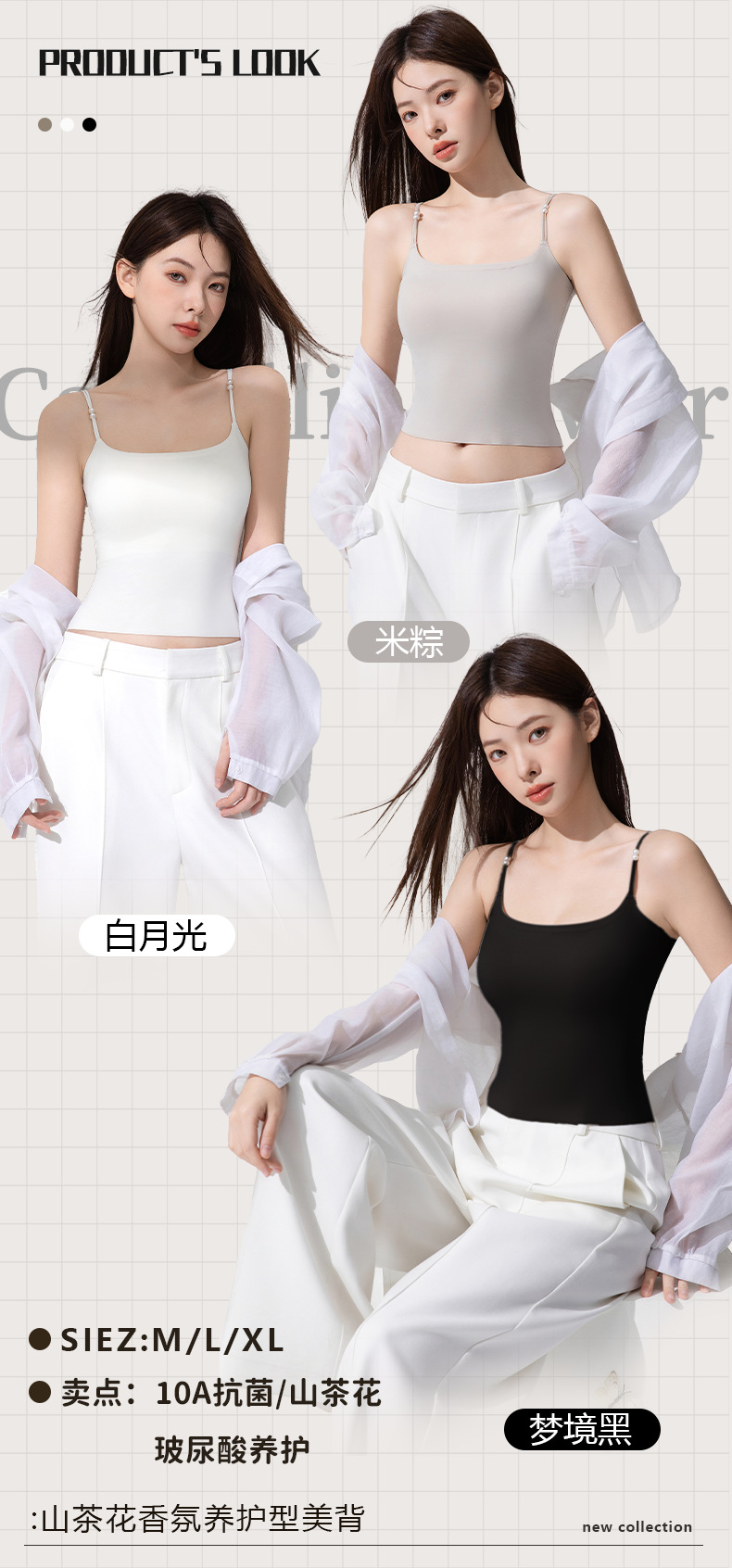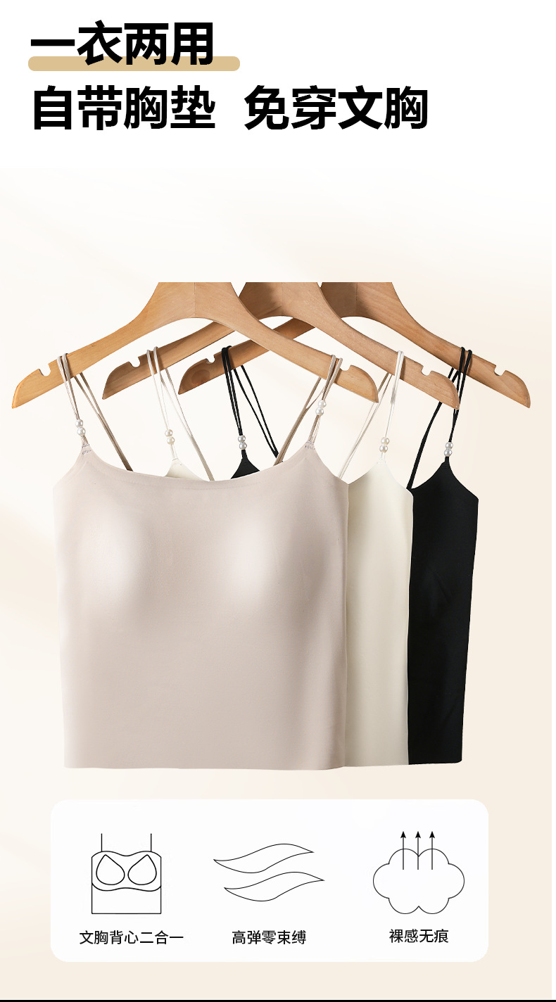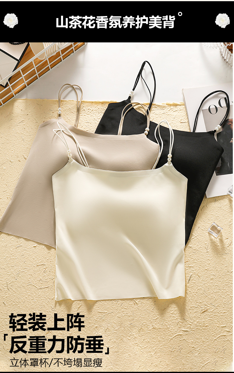 10A급 여성용 슬립탑, 가슴 패드 내장, 봄 여름용, 화이트, 백리스, 통기성, 가볍고 얇음스토어 가기