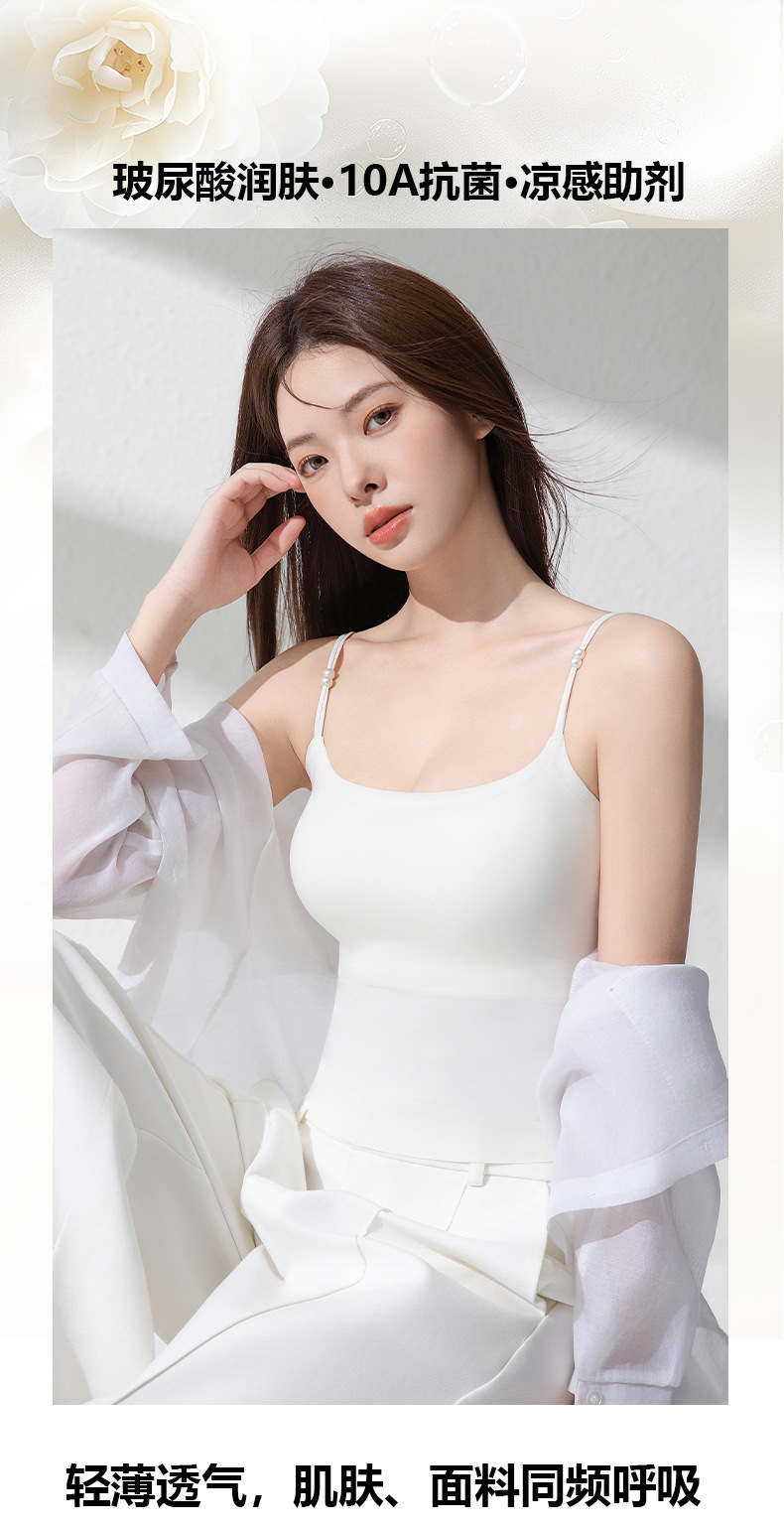 10A급 여성용 슬립탑, 가슴 패드 내장, 봄 여름용, 화이트, 백리스, 통기성, 가볍고 얇음