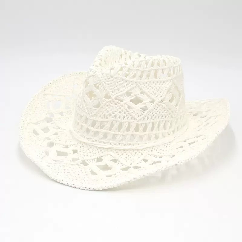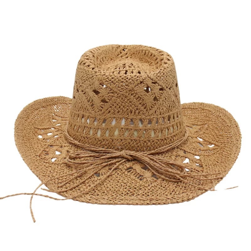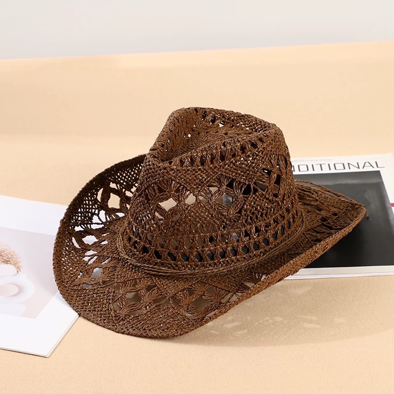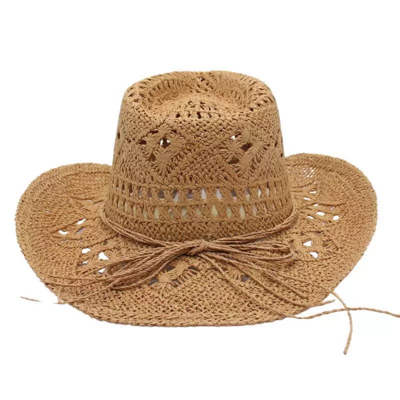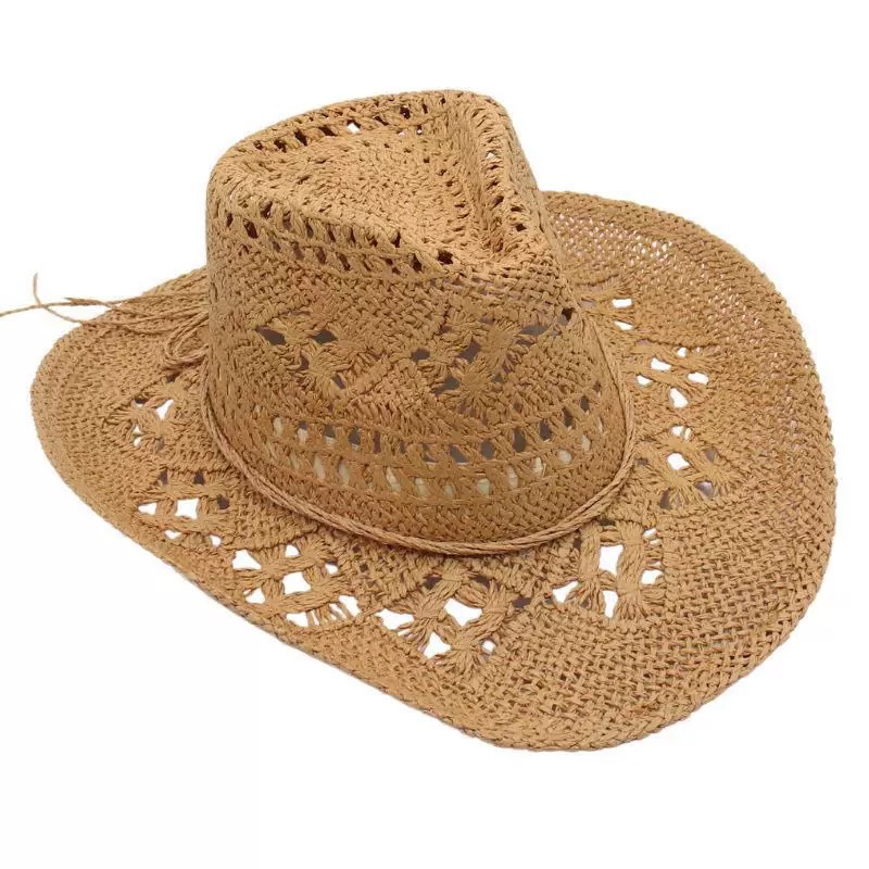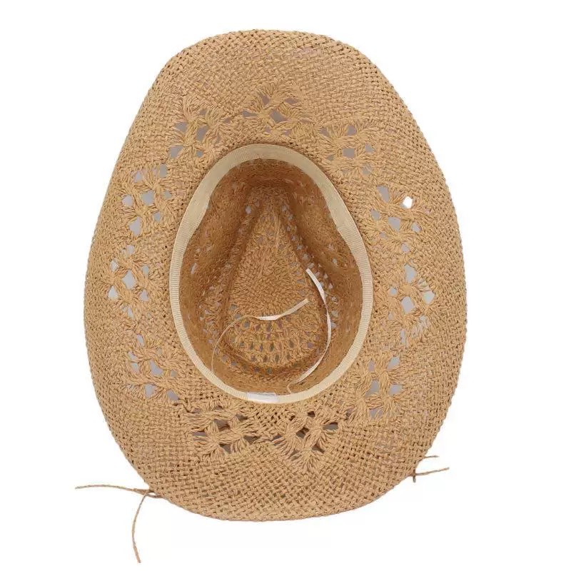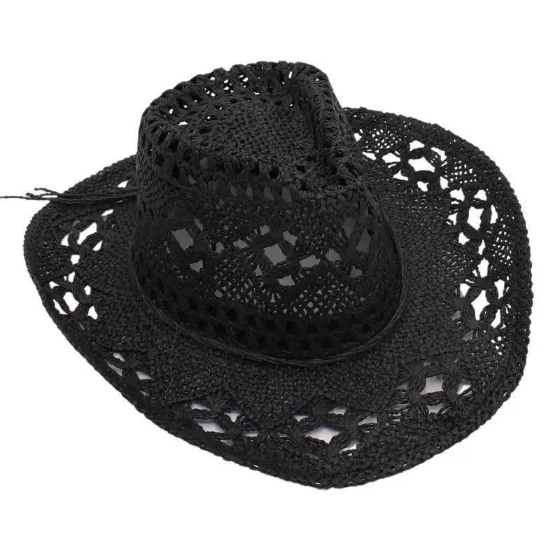 새로운 손으로 짠 밀짚 모자 속이 빈 봄과 여름 통기성 남녀 애호가 모자 자외선 차단제 서부 카우보이 모자
