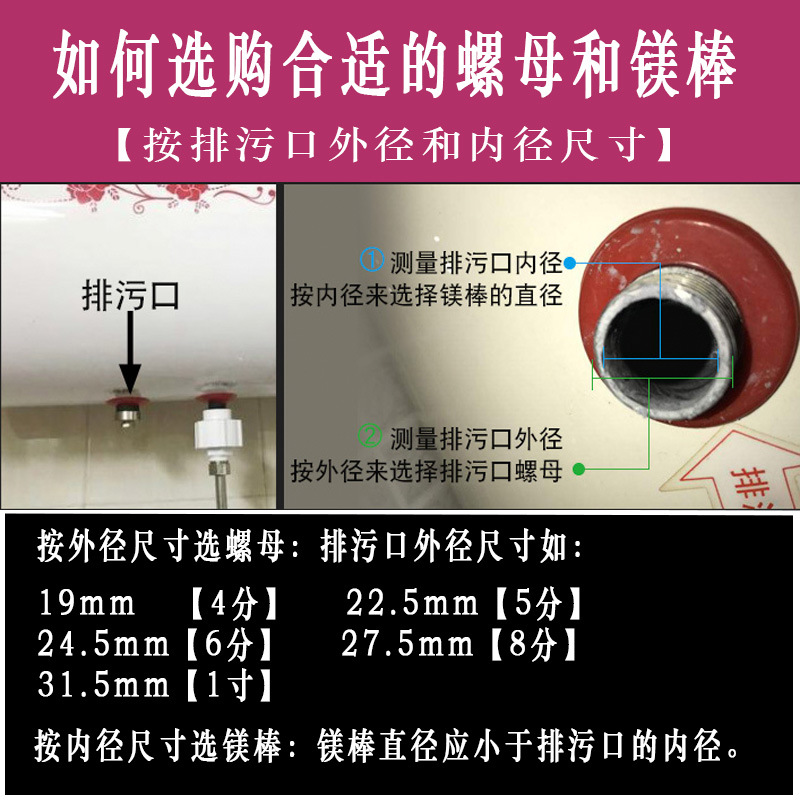 물 저장 전기 온수기 마그네슘 막대 고순도 양극 막대 40/50L/60/80L 액세서리의 일반적인 주요 브랜드스토어 가기