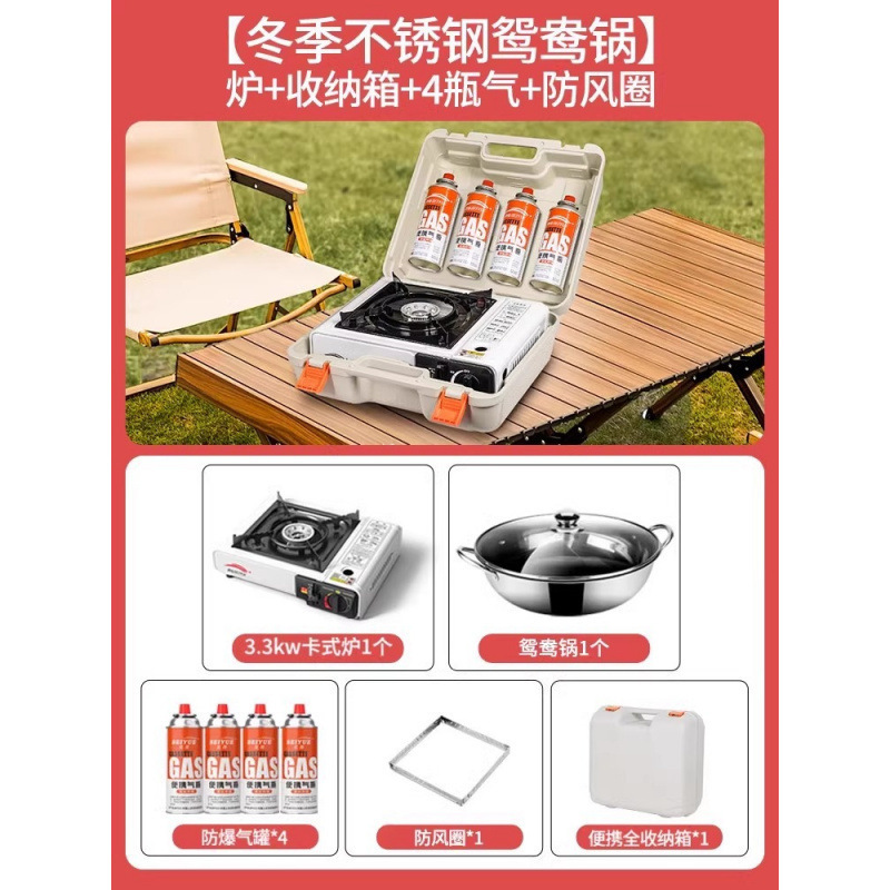• [겨울 스테인리스 원앙냄비] 난로 + 수납함 + 가스 4병 + 원앙냄비 + 방풍링