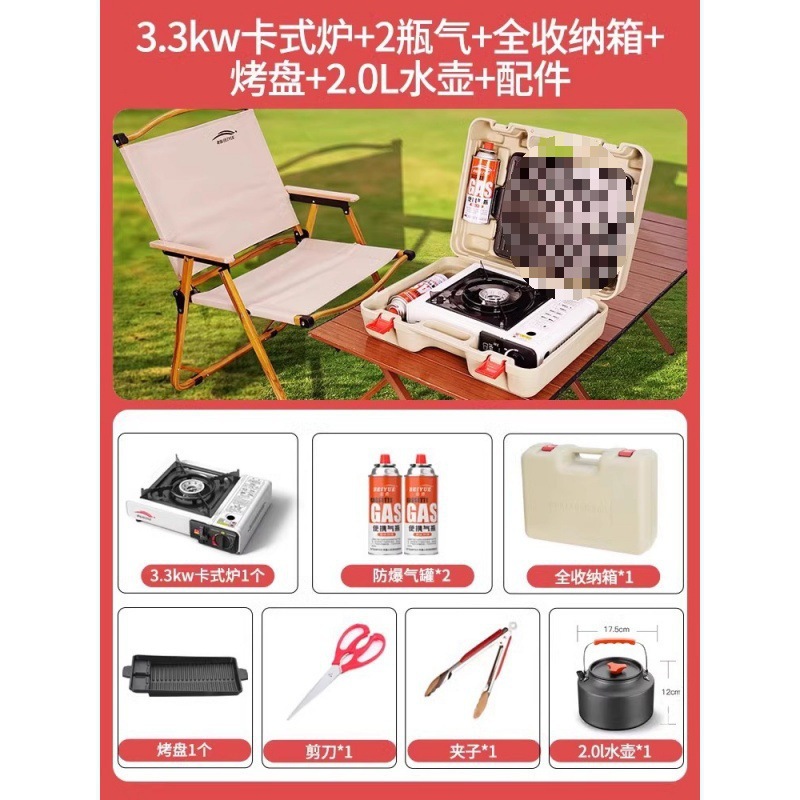 • 업그레이드된 카세트 스토브 + 가스 2병 + 전체 보관함 + 베이킹 팬 + 2.0L 주전자 + 액세서리