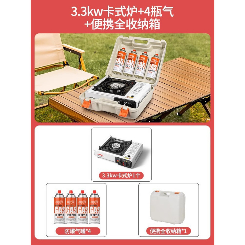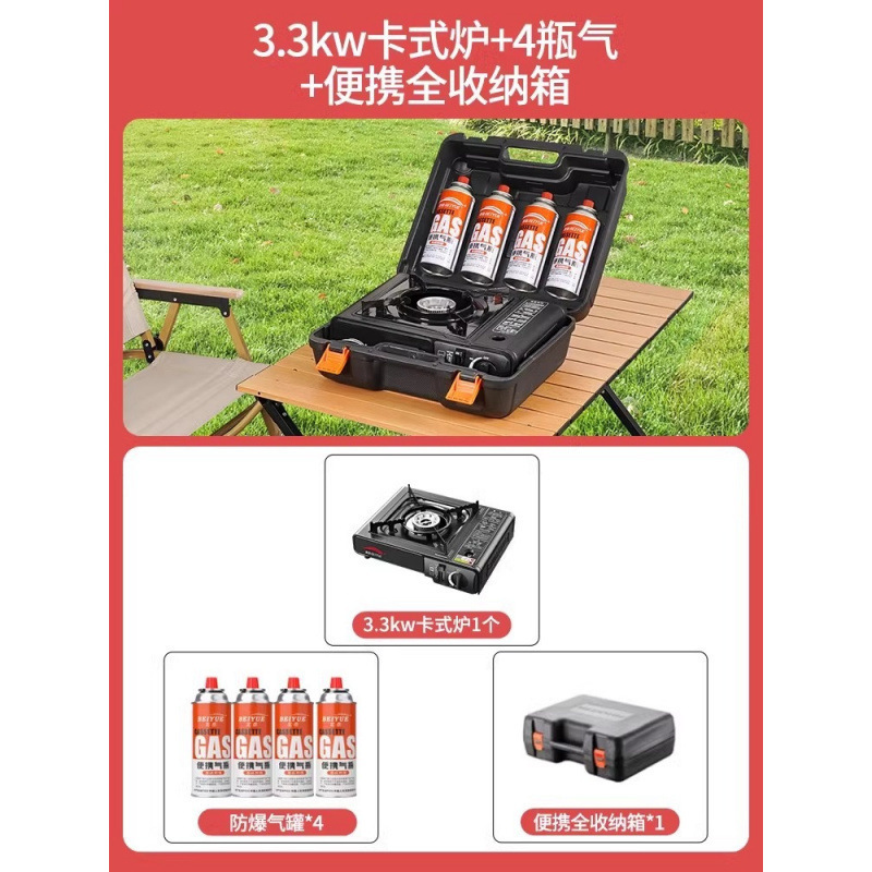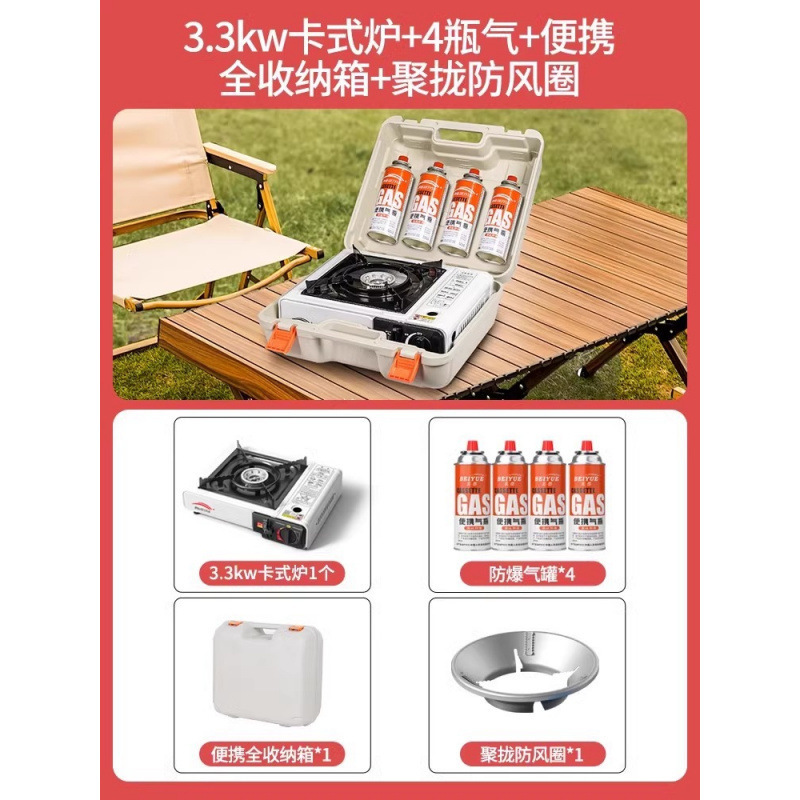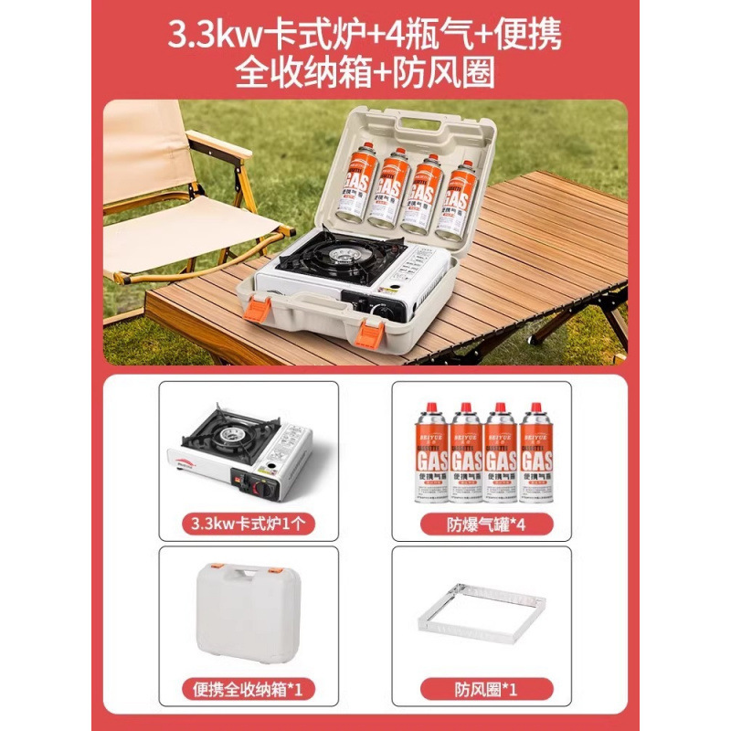 • 업그레이드된 카세트 스토브 + 가스 4병 + 휴대용 전체 보관함 + 앞유리
