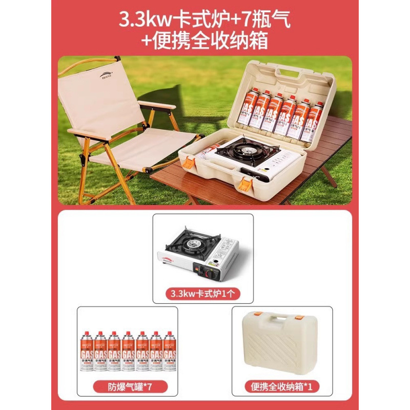 • 업그레이드된 카세트 스토브 + 가스 2병 + 전체 보관함 + 베이킹 팬 + 방풍 링 + 액세서리
