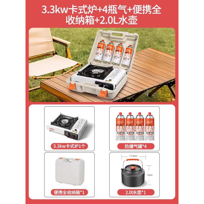 • 업그레이드된 카세트 스토브 + 가스 4병 + 휴대용 풀 수납함 + 2.0L 주전자