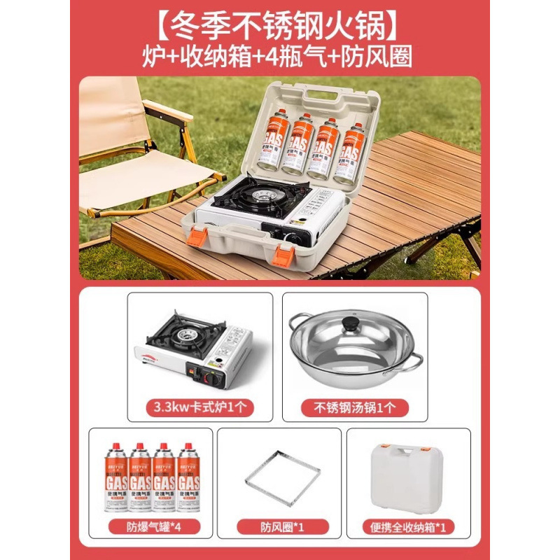 • [겨울 스테인리스 전골] 난로 + 수납함 + 가스 4병 + 국물 냄비 + 방풍링