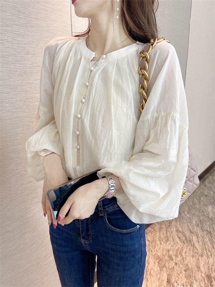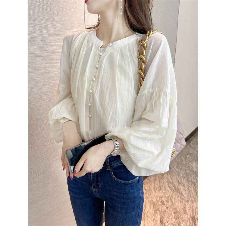 새로운 디자인 센스 쉬폰 셔츠 여성용 긴 소매 봄과 가을 새로운 한국 스타일 우아한 퍼프 슬리브 세련된 탑베이스 라이닝스토어 가기