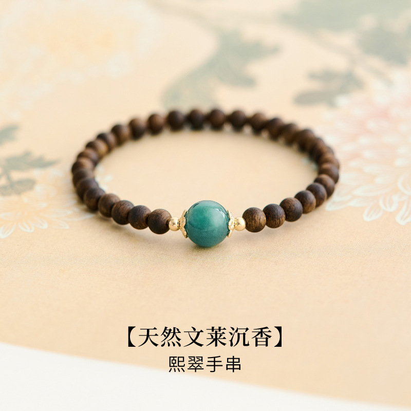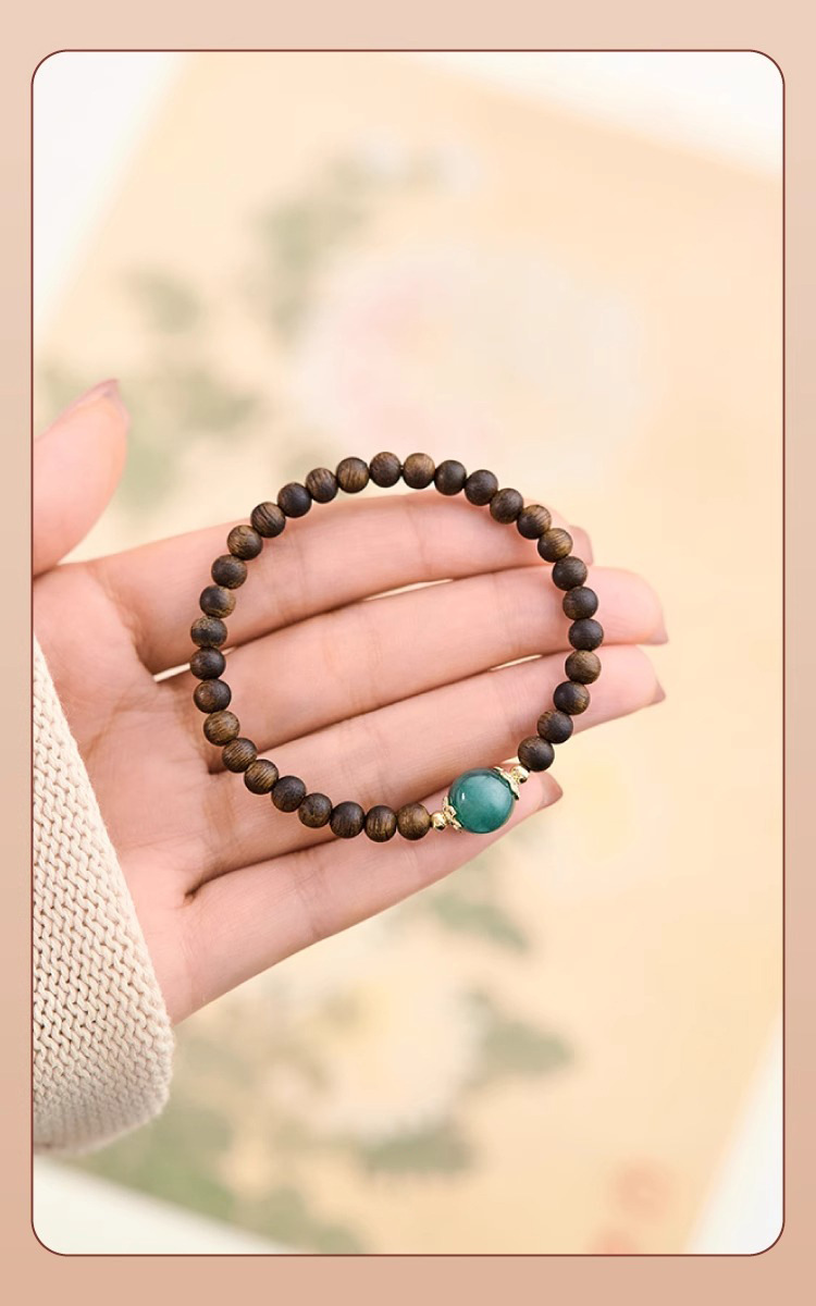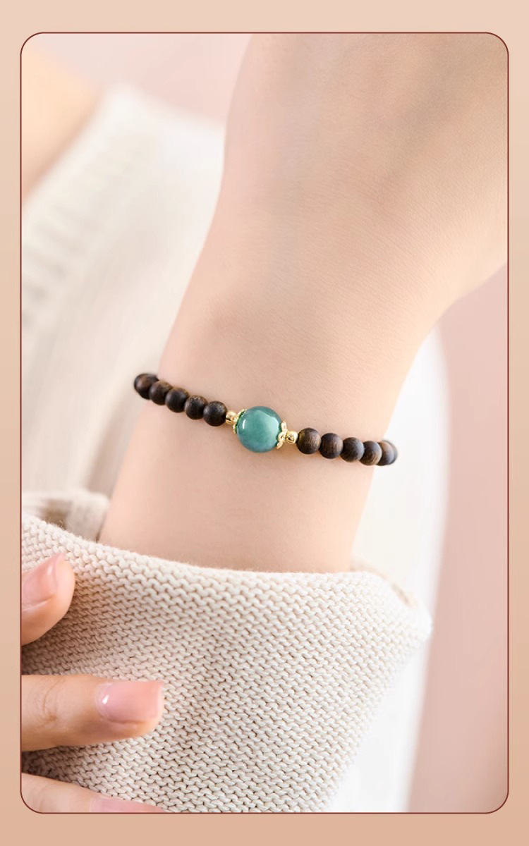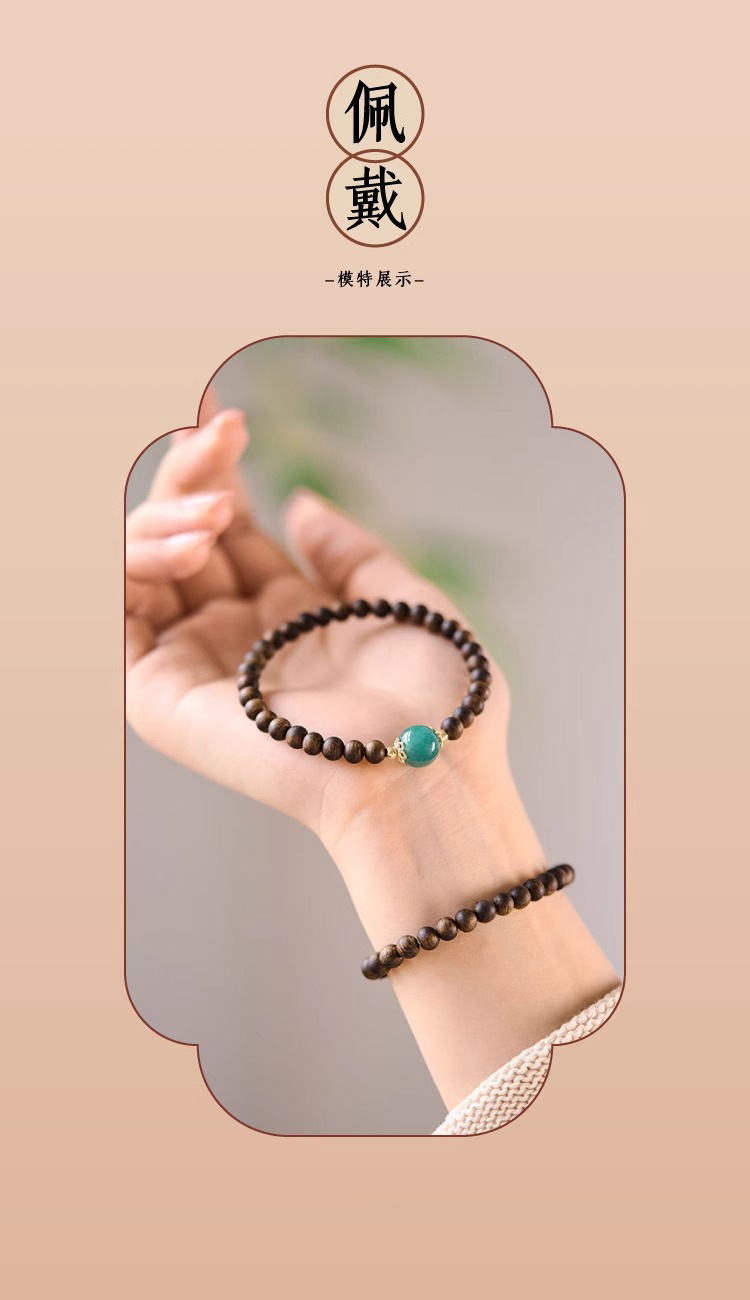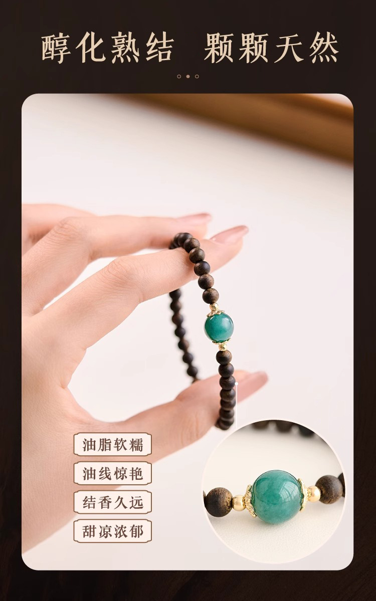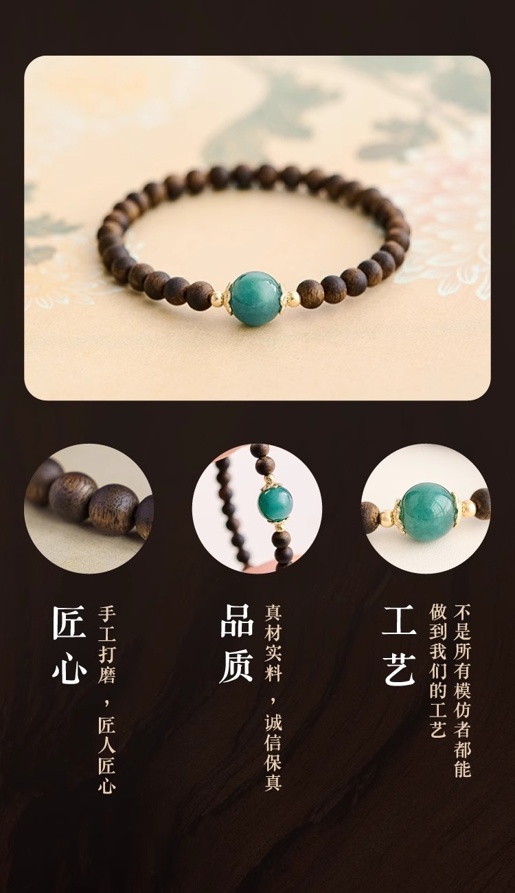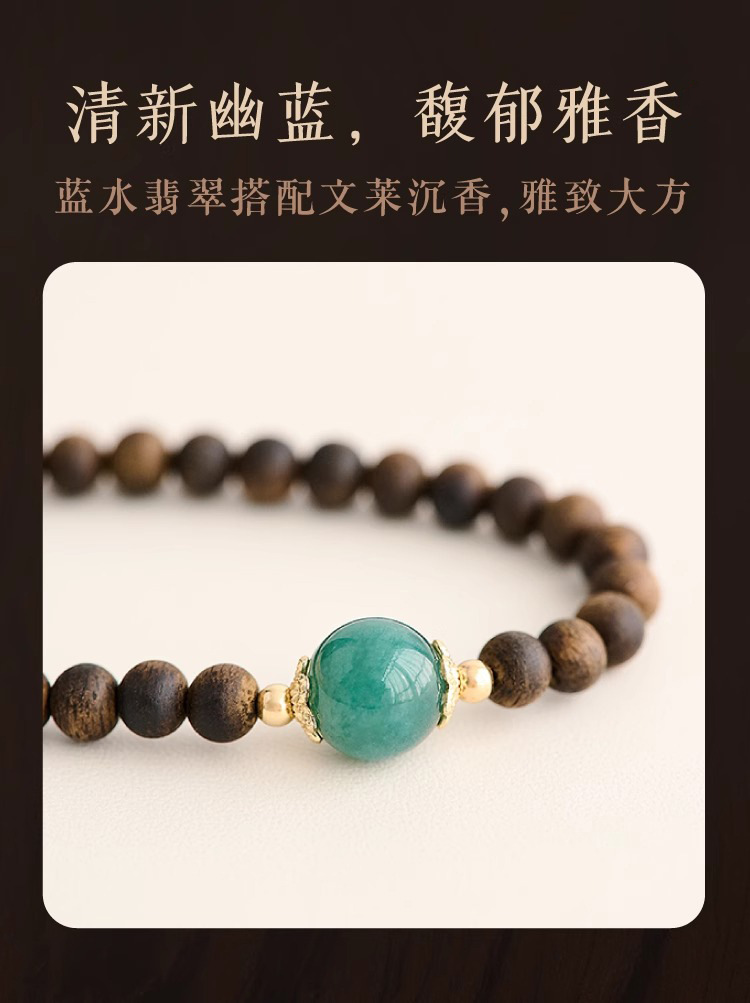 천연 Aquilaya 팔찌 여성 오래된 소재 샌들 우드 팔찌 브루나이 샌들 우드 블루 워터 제이드 전송 구슬 작은 쌀 구슬 손 보석
