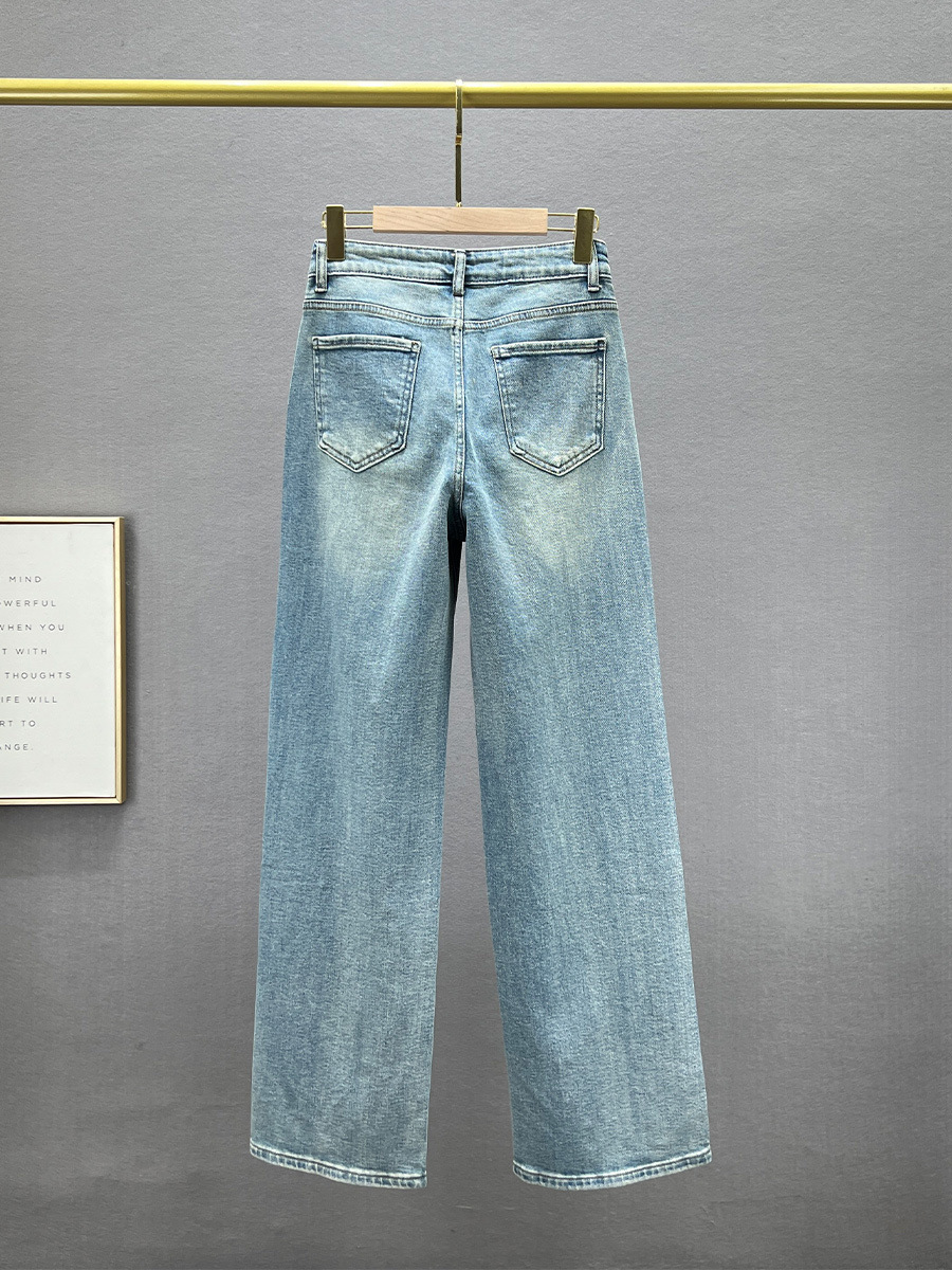 유럽산 핫 드릴링 스타 펜던트 디자인 높은 허리 세척 청바지 여성의 여름 느슨한 슬리밍 올매치 스트레이트 바지