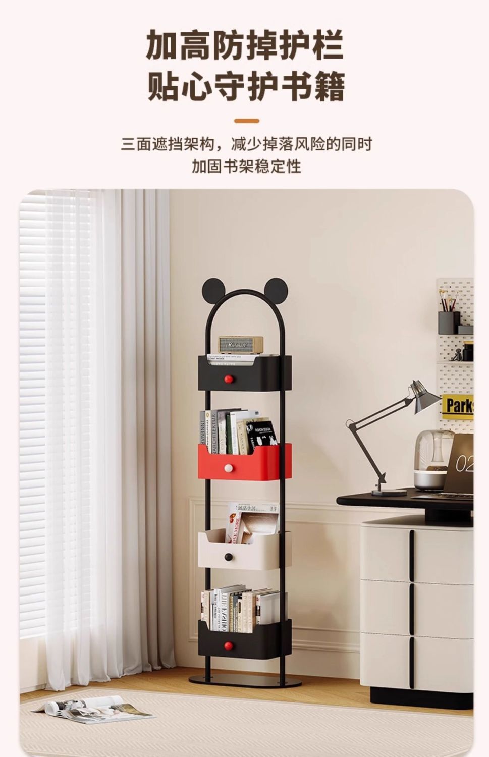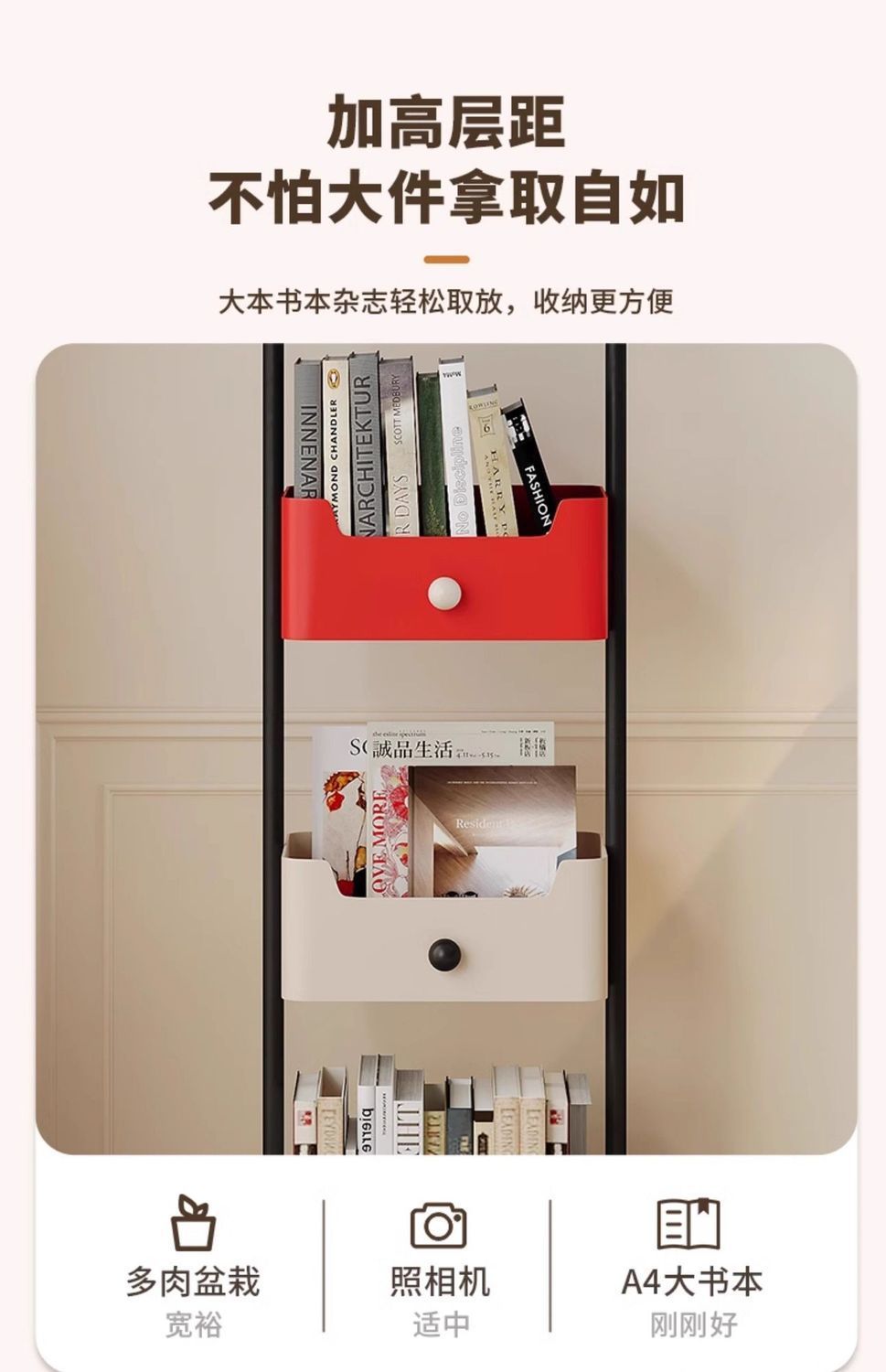 • 대비되는 색상의 4단 책장