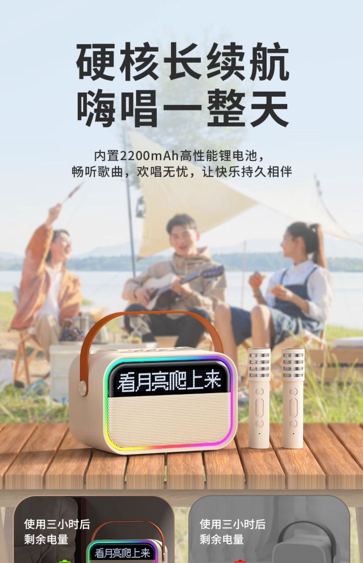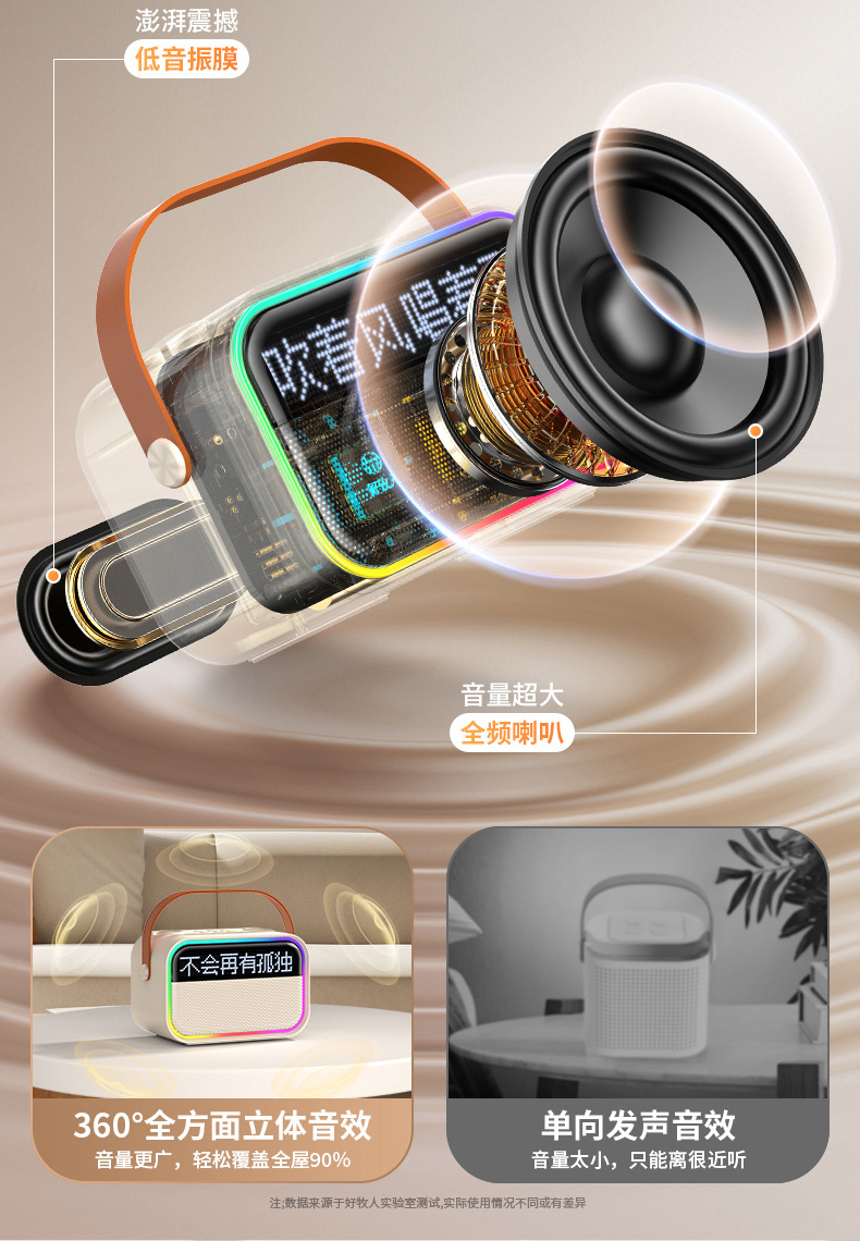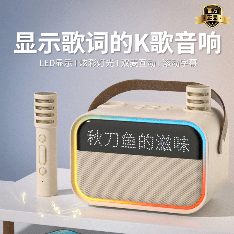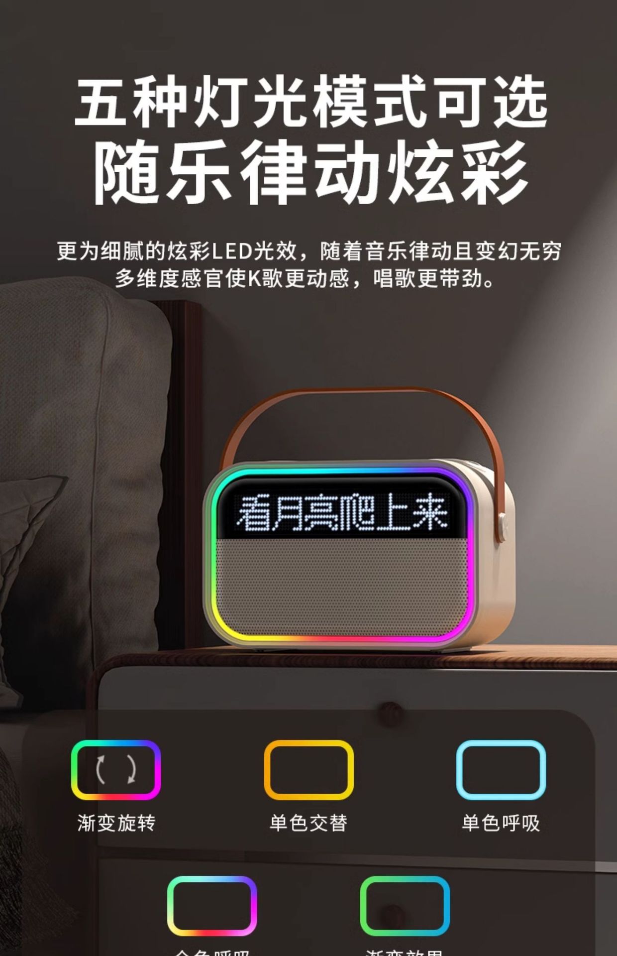 가사가 떠다니는 블루투스 스피커, 야외 휴대용 노래방, 서브우퍼, 마이크가 내장된 올인원 스피커