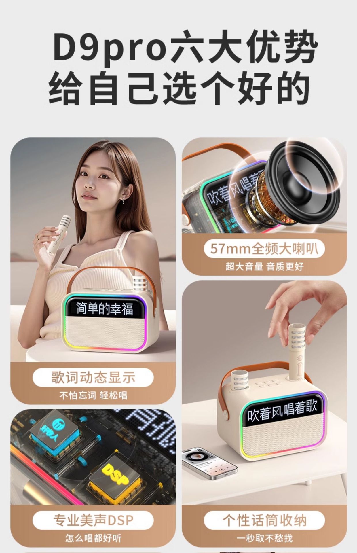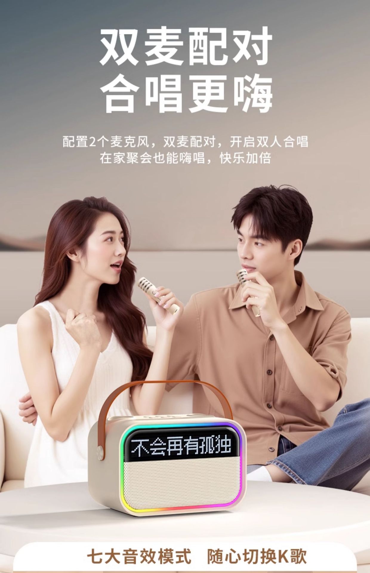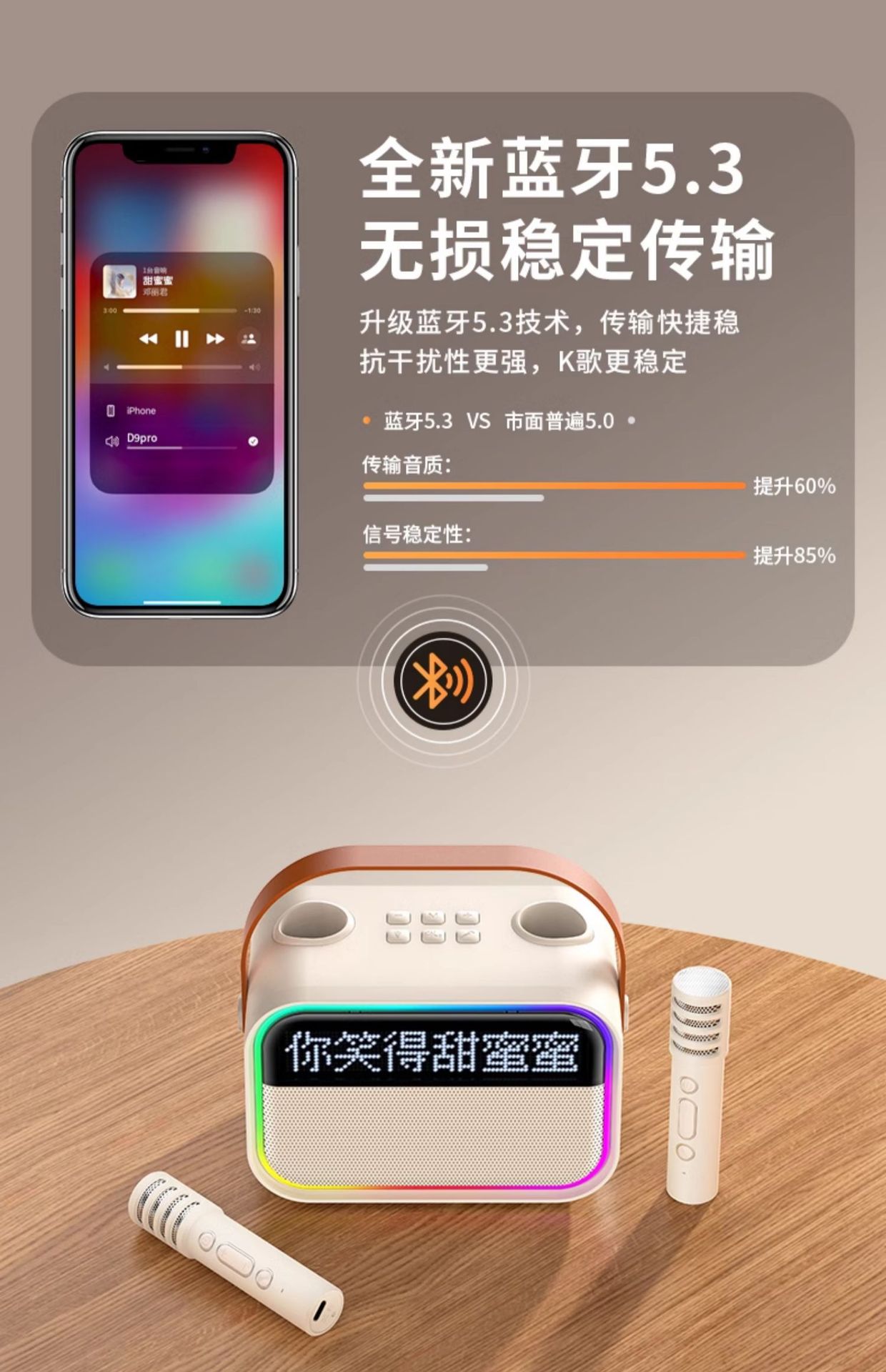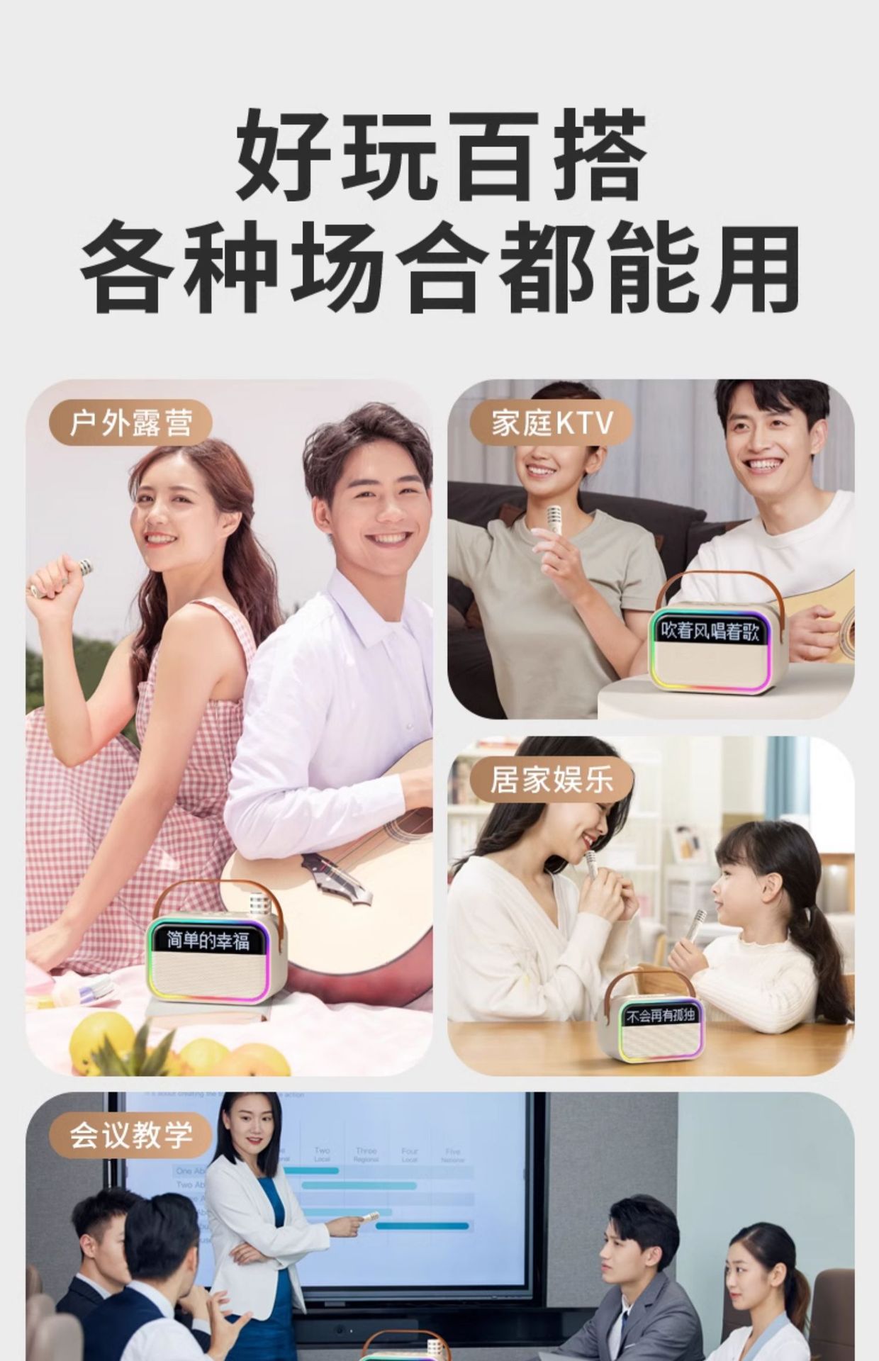 가사가 떠다니는 블루투스 스피커, 야외 휴대용 노래방, 서브우퍼, 마이크가 내장된 올인원 스피커