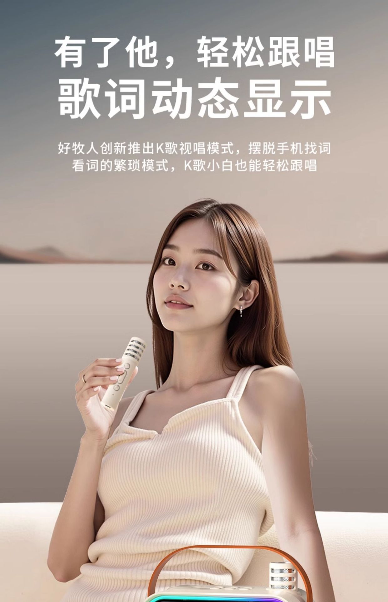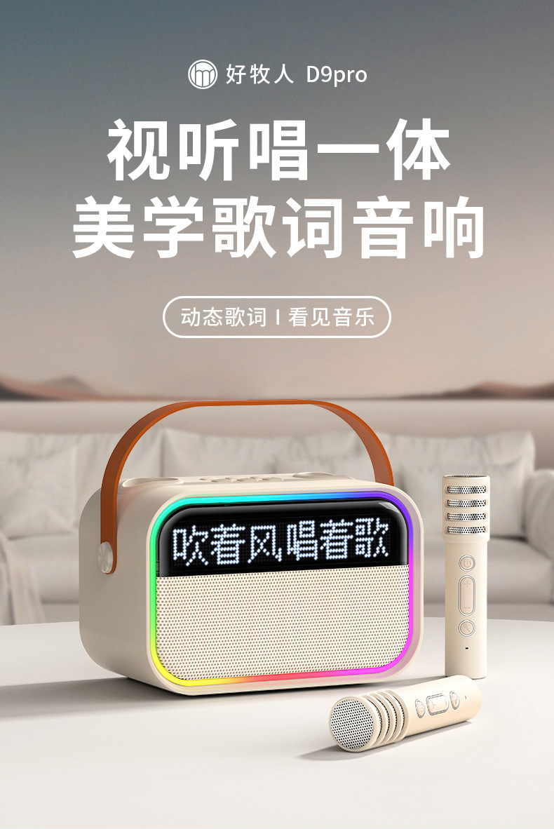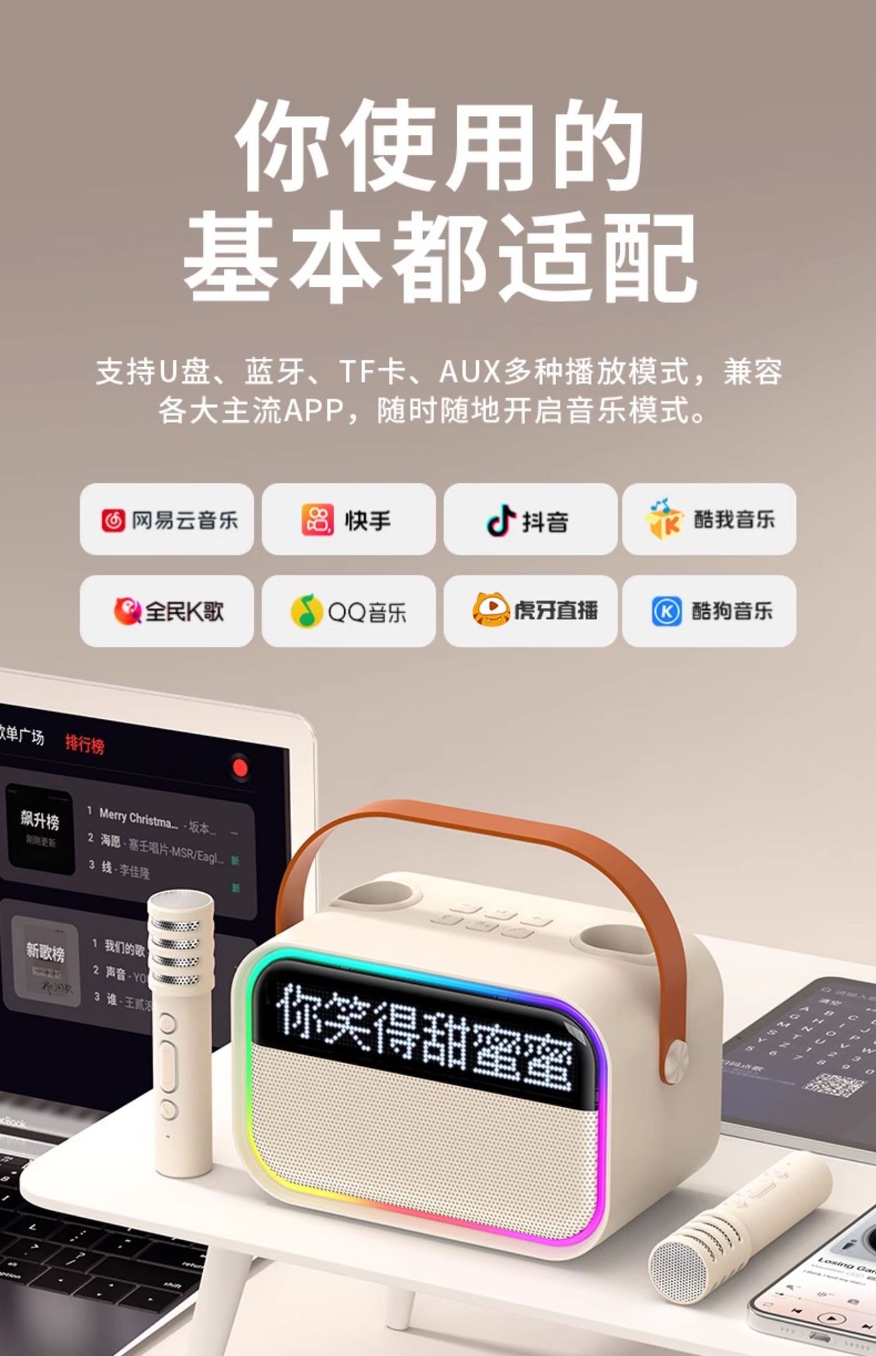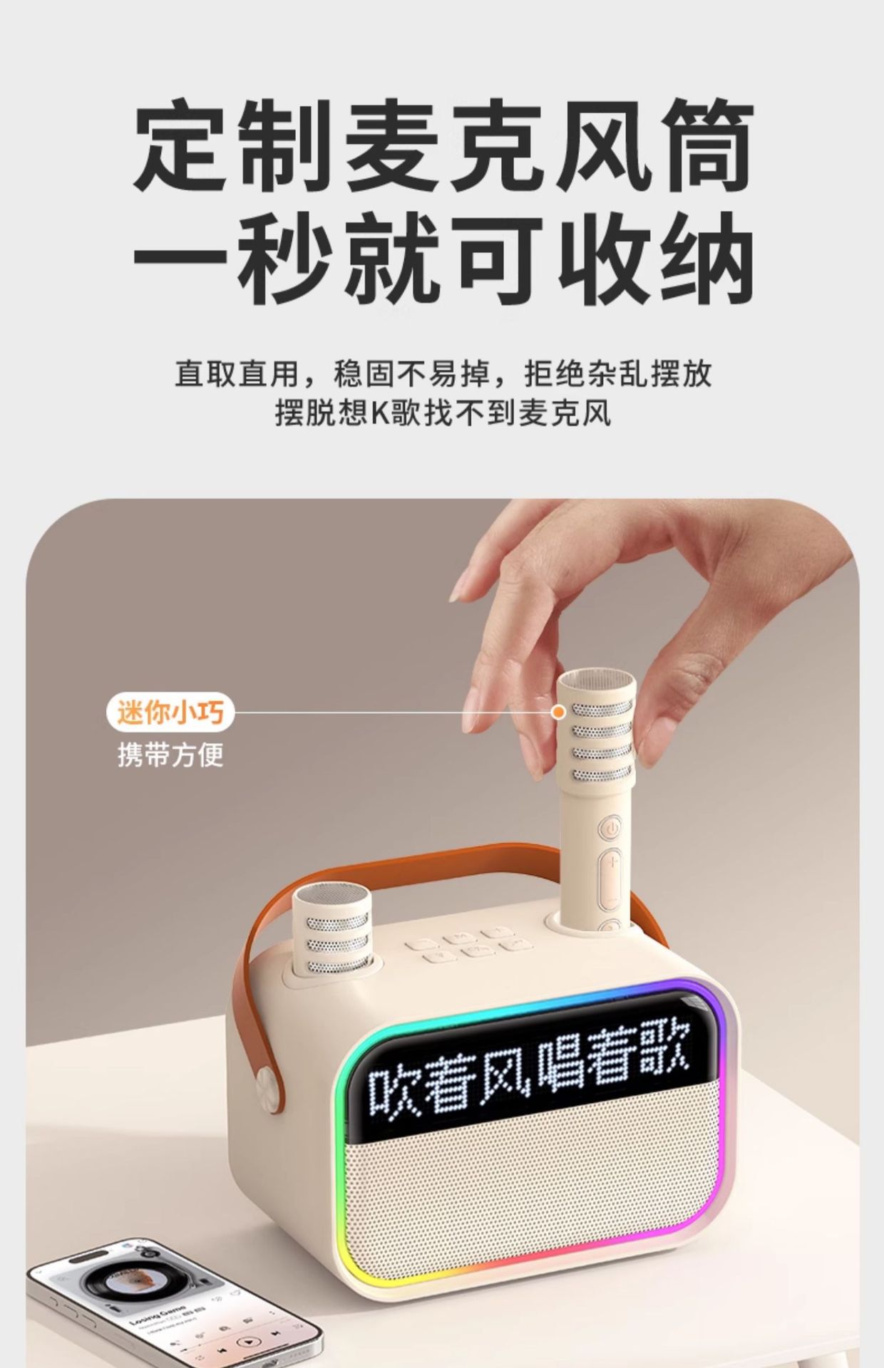 가사가 떠다니는 블루투스 스피커, 야외 휴대용 노래방, 서브우퍼, 마이크가 내장된 올인원 스피커