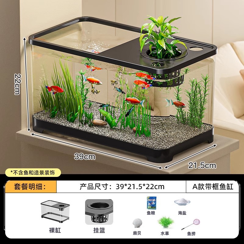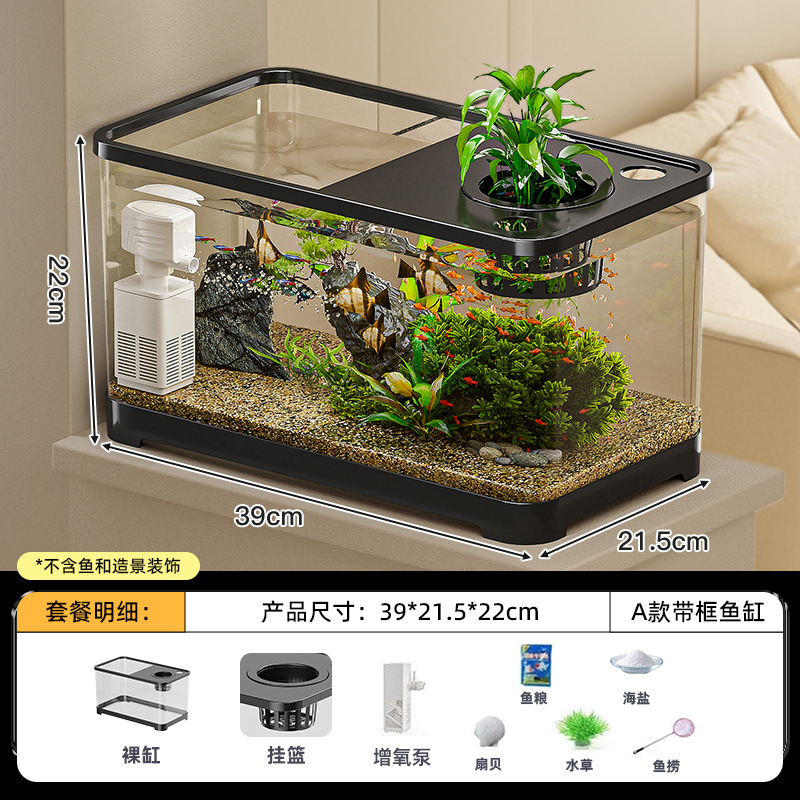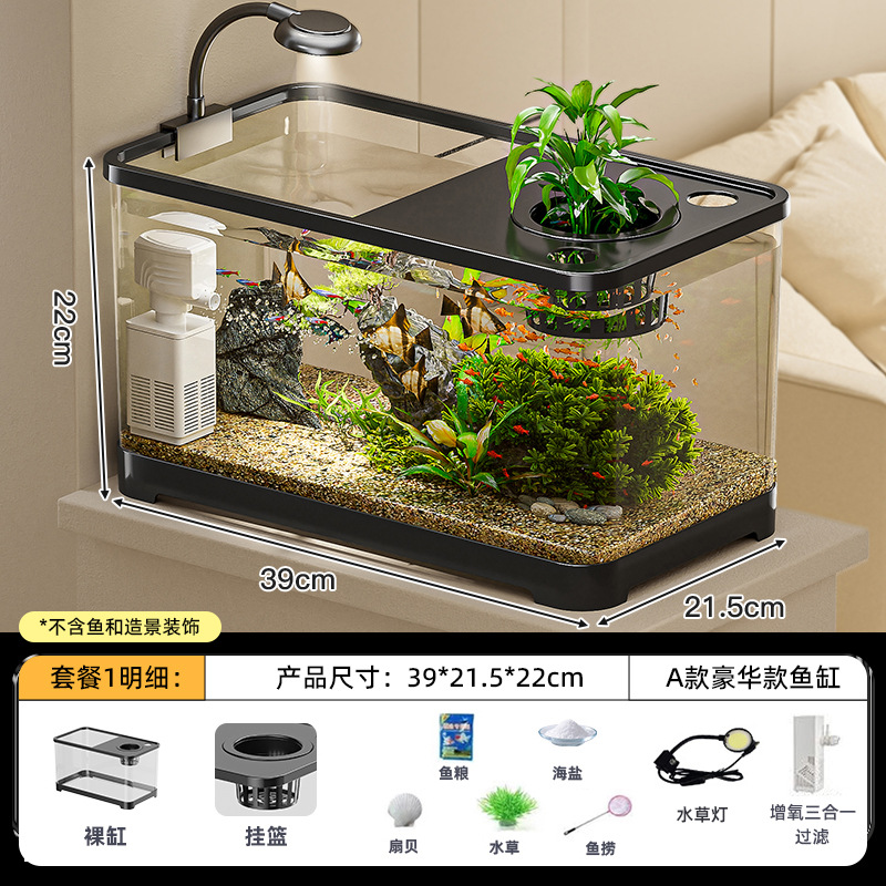 물고기 탱크 생태 수족관 플라스틱 금붕어 탱크 뚜껑 투명 거북이 탱크 거실 작은 럭셔리 조경 데스크탑 탱크스토어 가기
