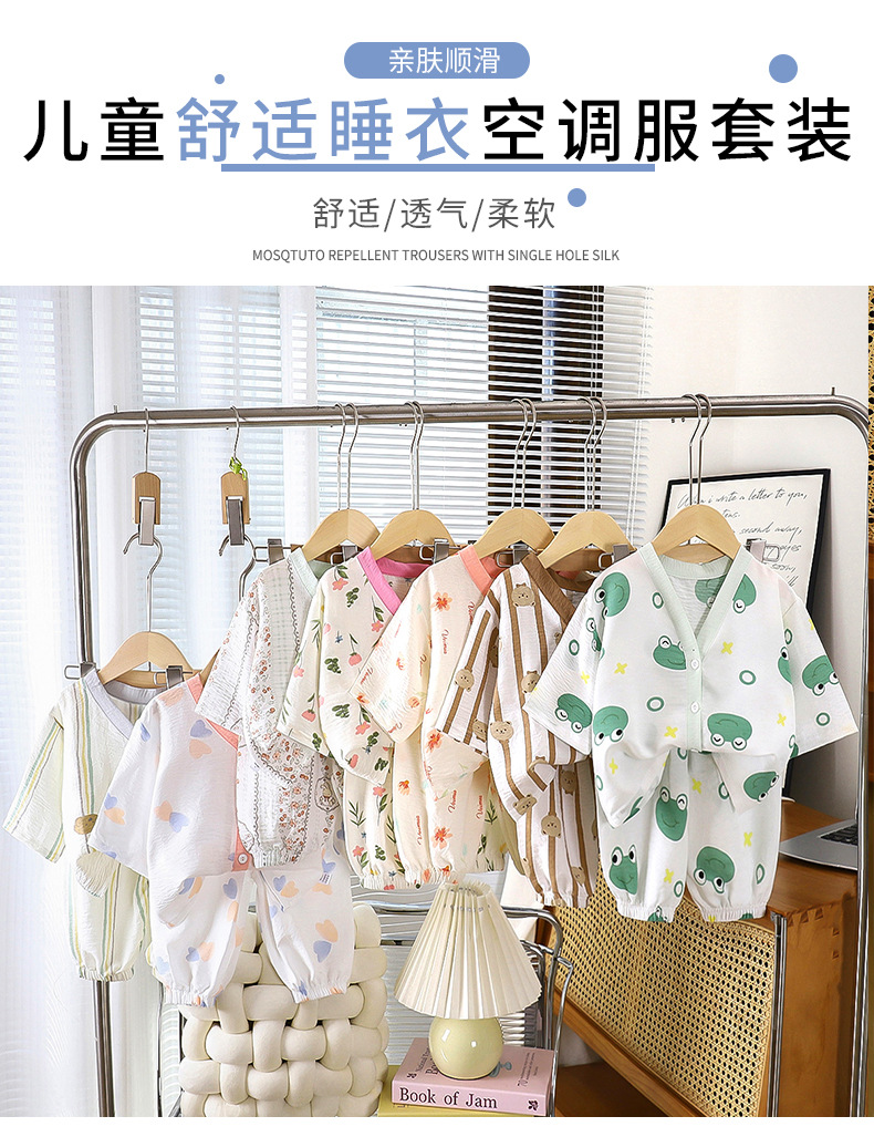 어린이 홈 의류 세트 여름 새 소년 카디건 여자 잠옷 얇은 아기 캐주얼 에어컨 아동복