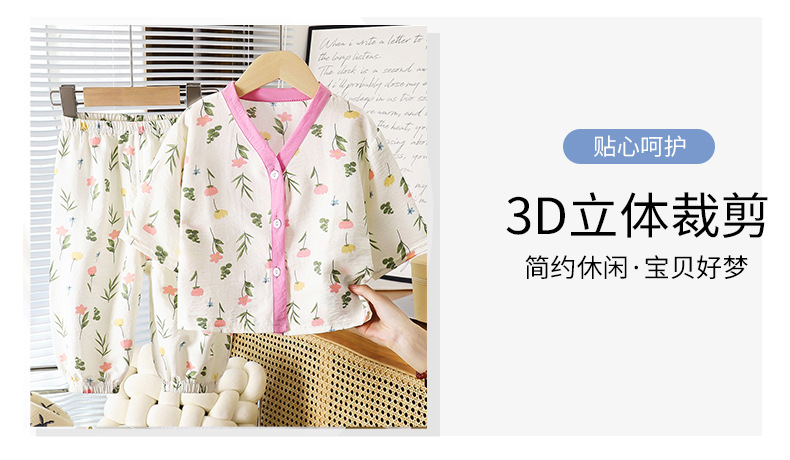 어린이 홈 의류 세트 여름 새 소년 카디건 여자 잠옷 얇은 아기 캐주얼 에어컨 아동복스토어 가기