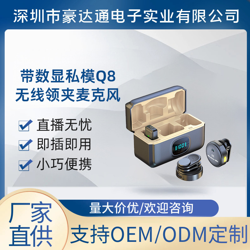 디지털 디스플레이가 장착된 Q8 개인 모델 무선 라발리에 마이크 1대2 무선 마이크 자기 흡입 소형 원형 마이크 라이브 촬영스토어 가기