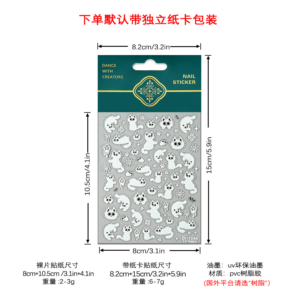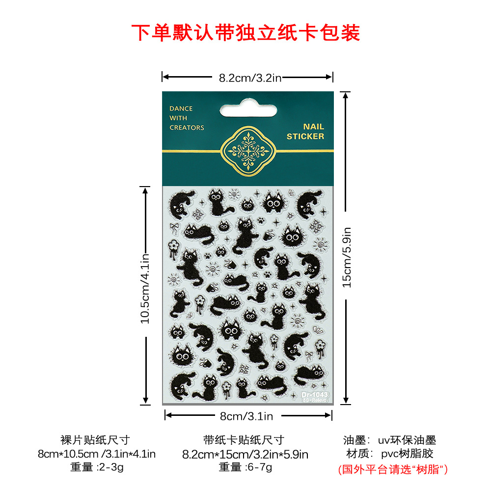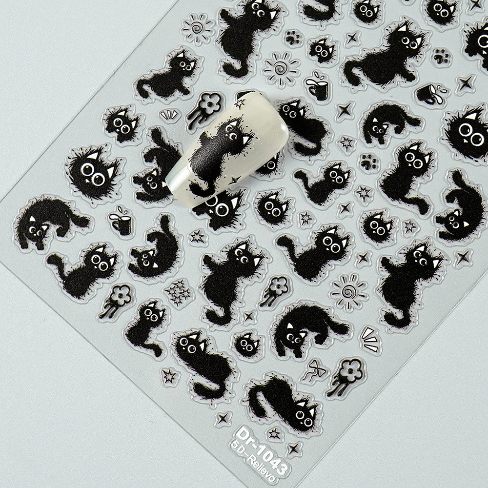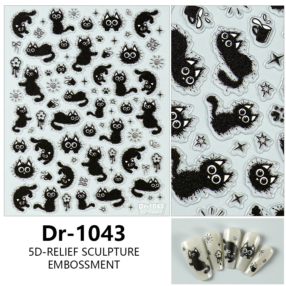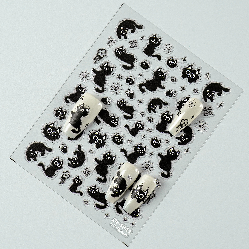 Redanco 새로운 5D 플로팅 그물 레드 흑백 고양이 쉘 라이트 네일 스티커 스테레오 네일 스티커 Dr-1044스토어 가기