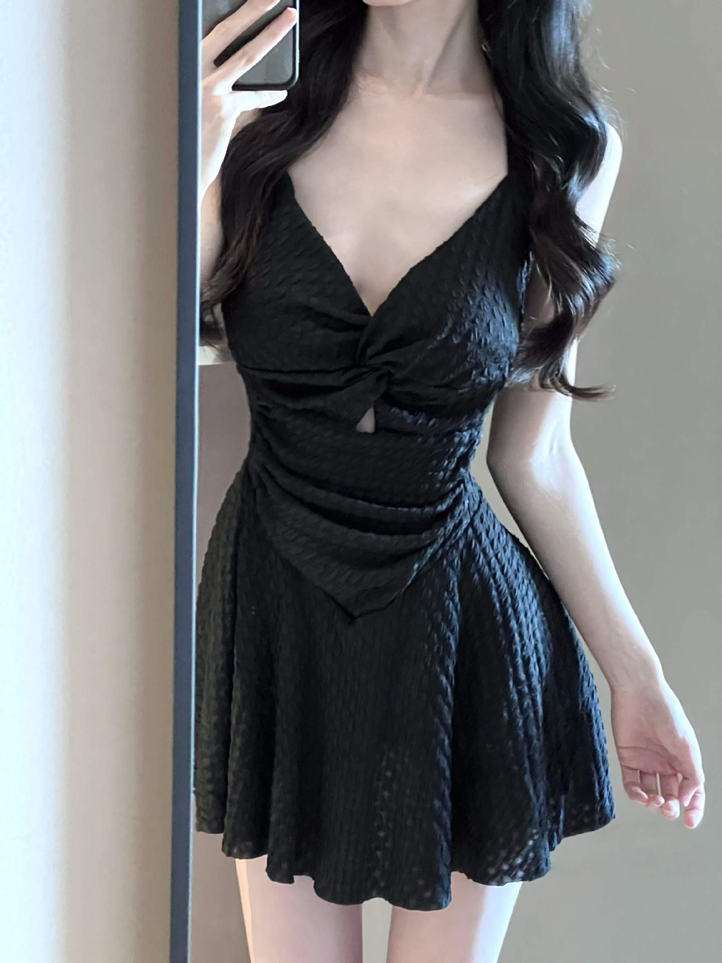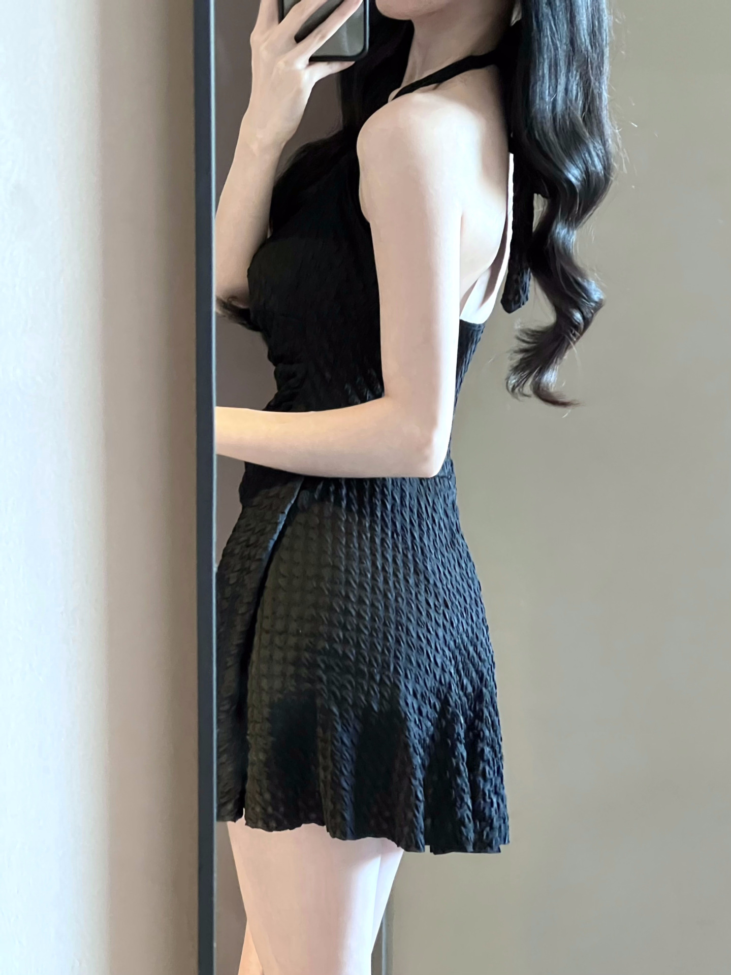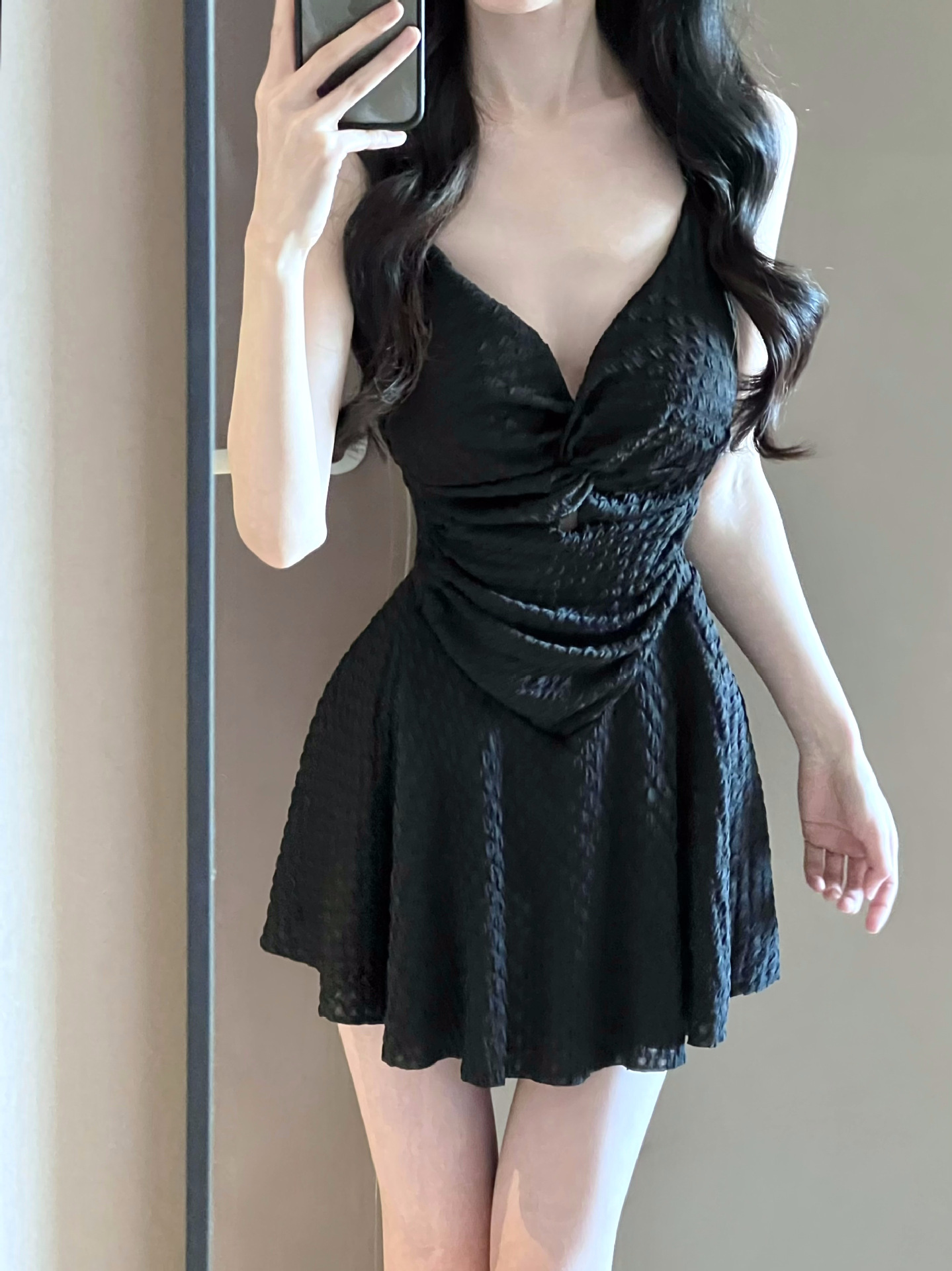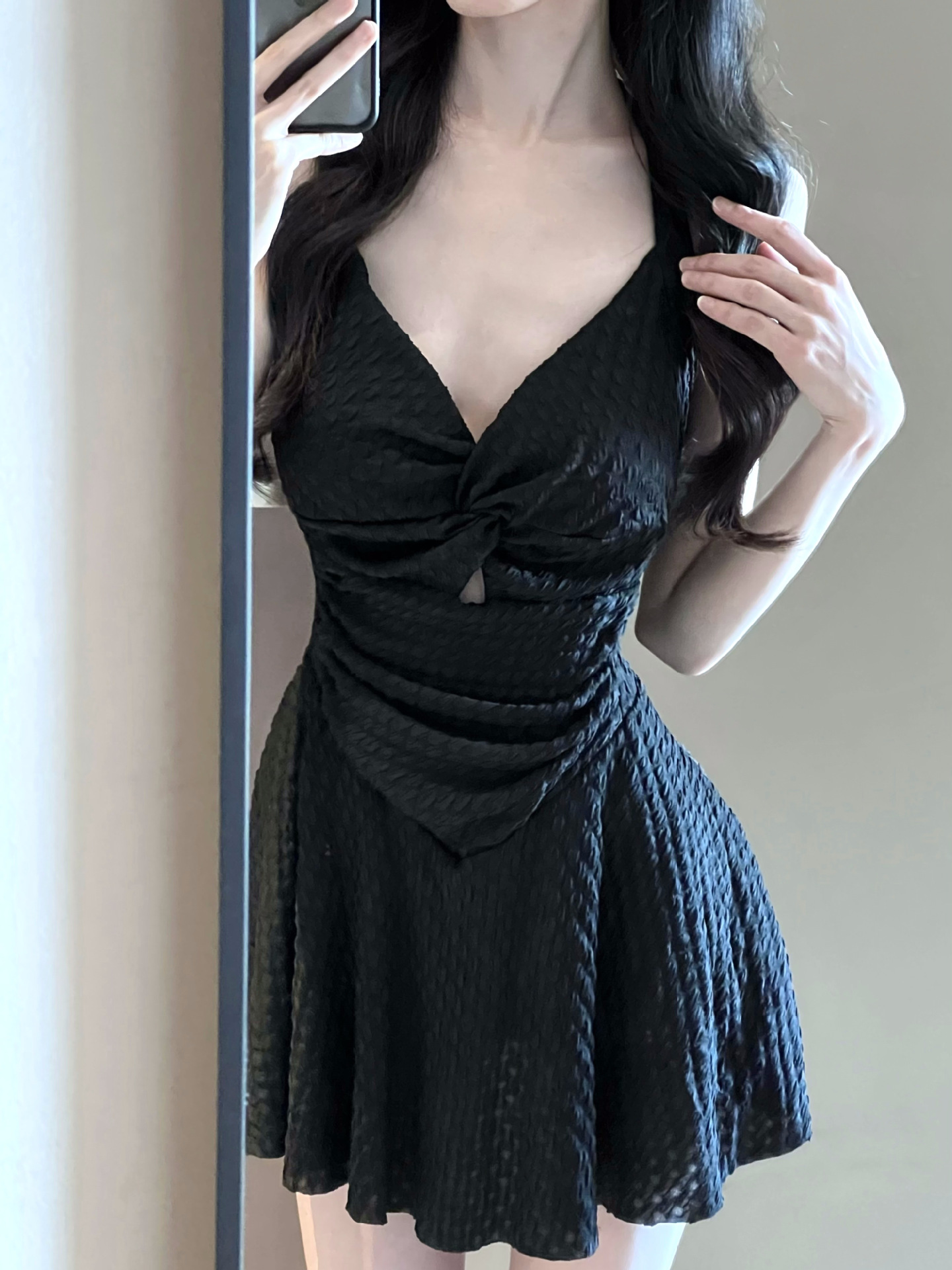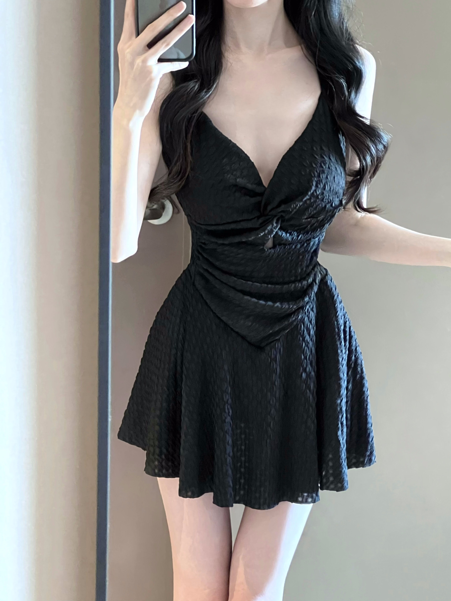 2025 새로운 스커트 원피스 복서 수영복 여성용 스키니 블랙 원피스 섹스 비치 홀리데이 온천 수영복 크로스 보더 수영복스토어 가기