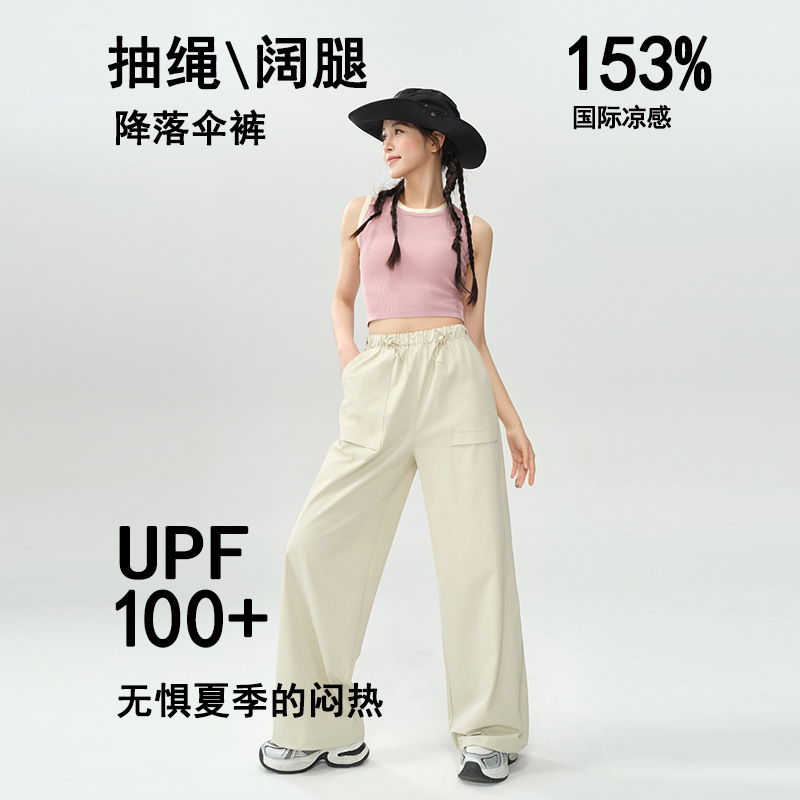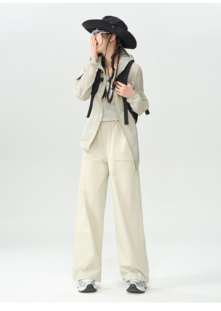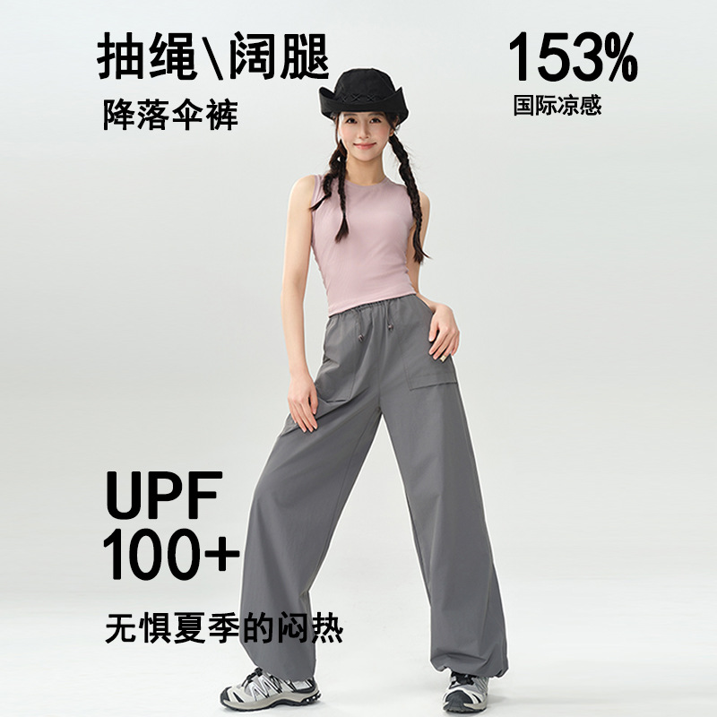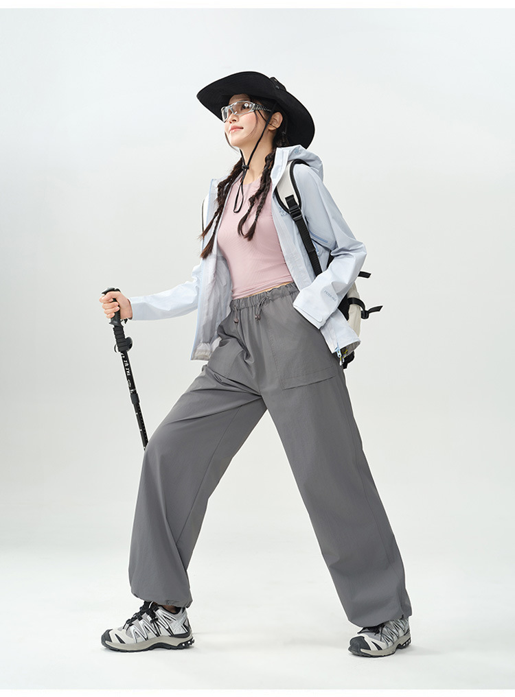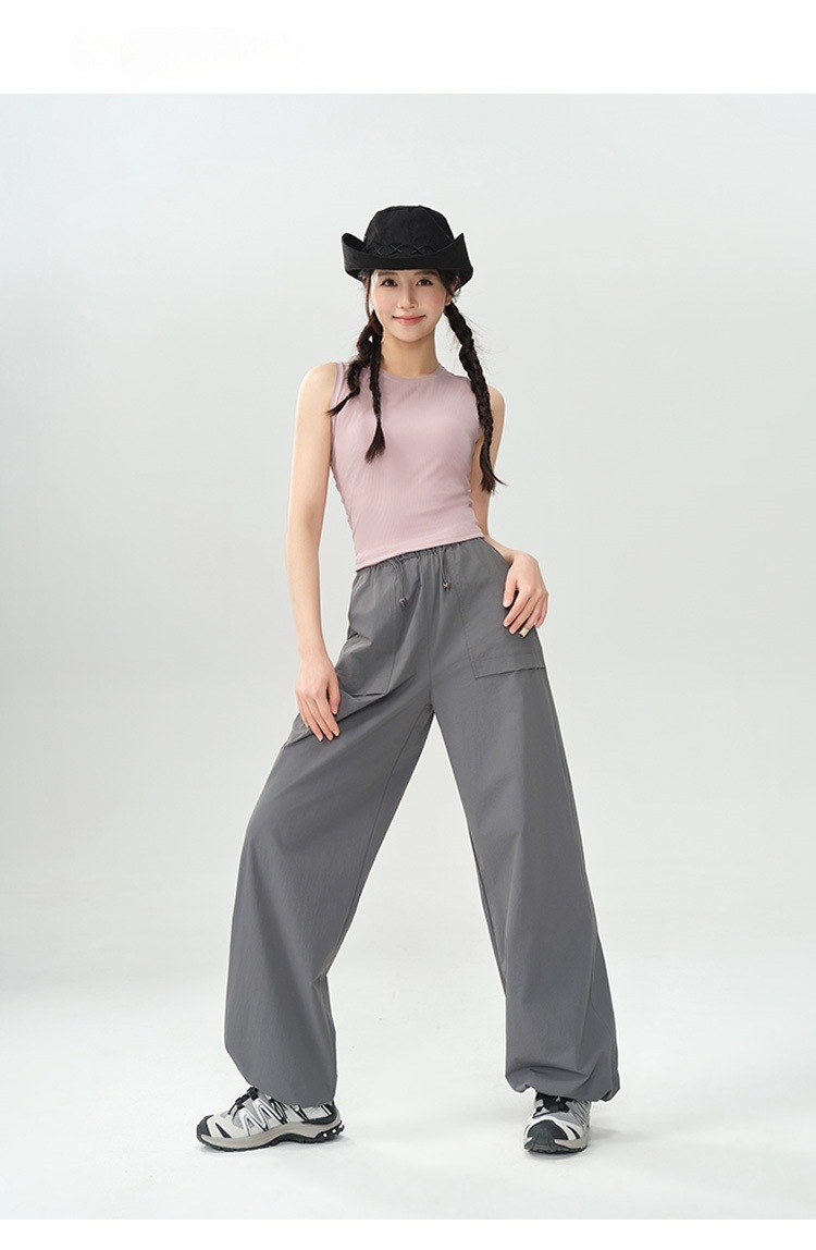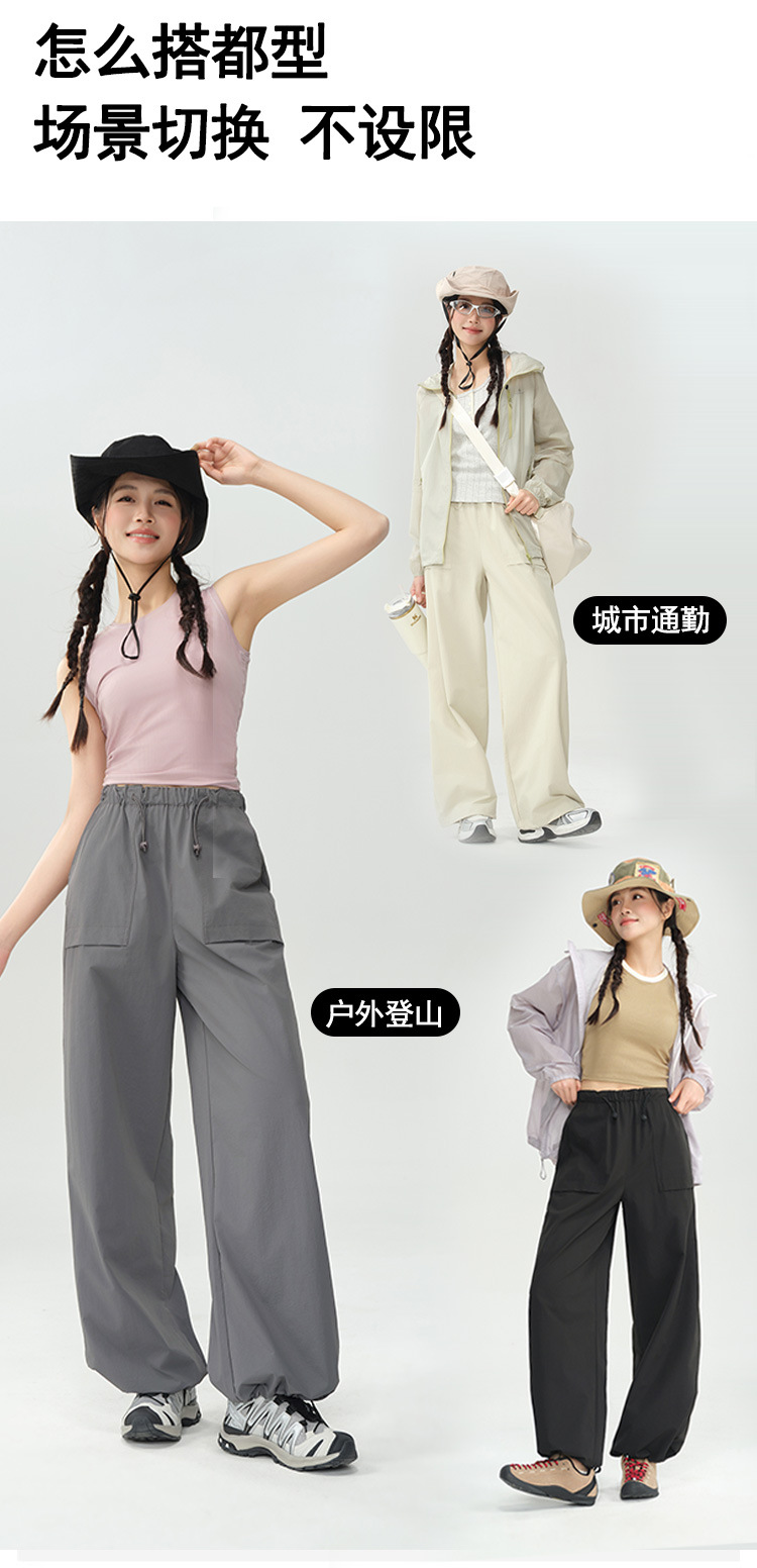 작업복 바지 여성용 여름 경량 야외 하이킹 등산 바지 캐주얼 느슨한 끈 넓은 다리 낙하산 바지