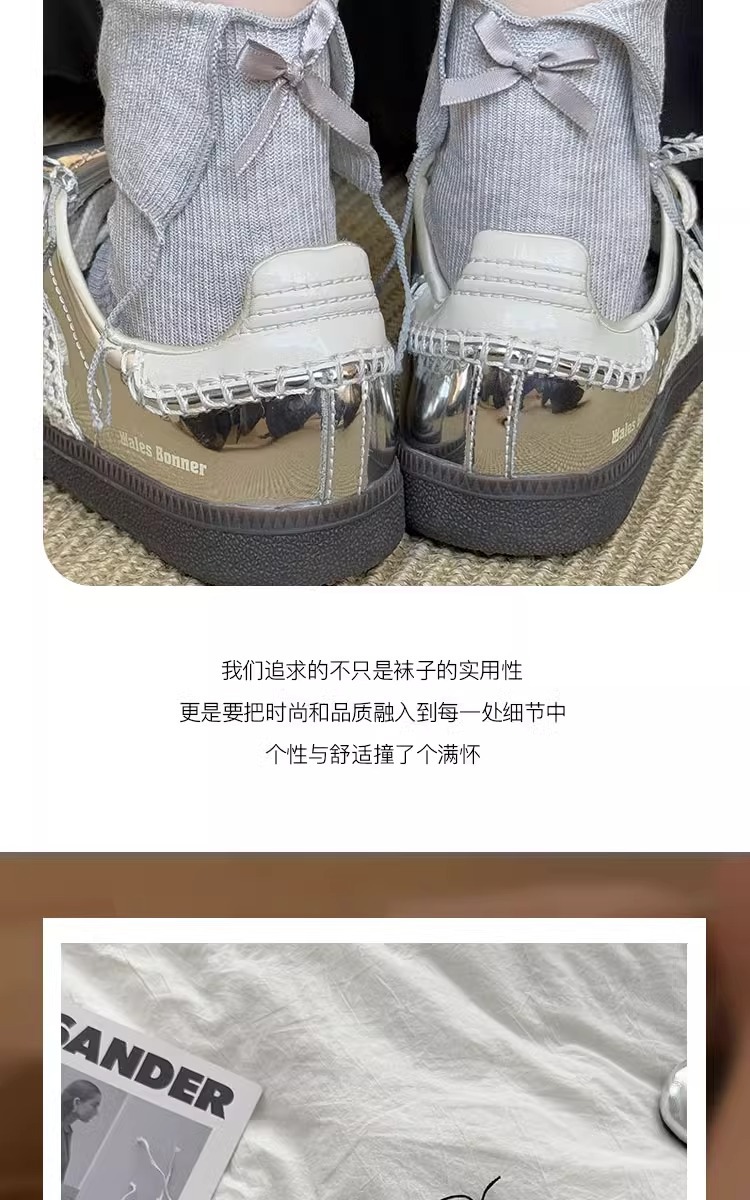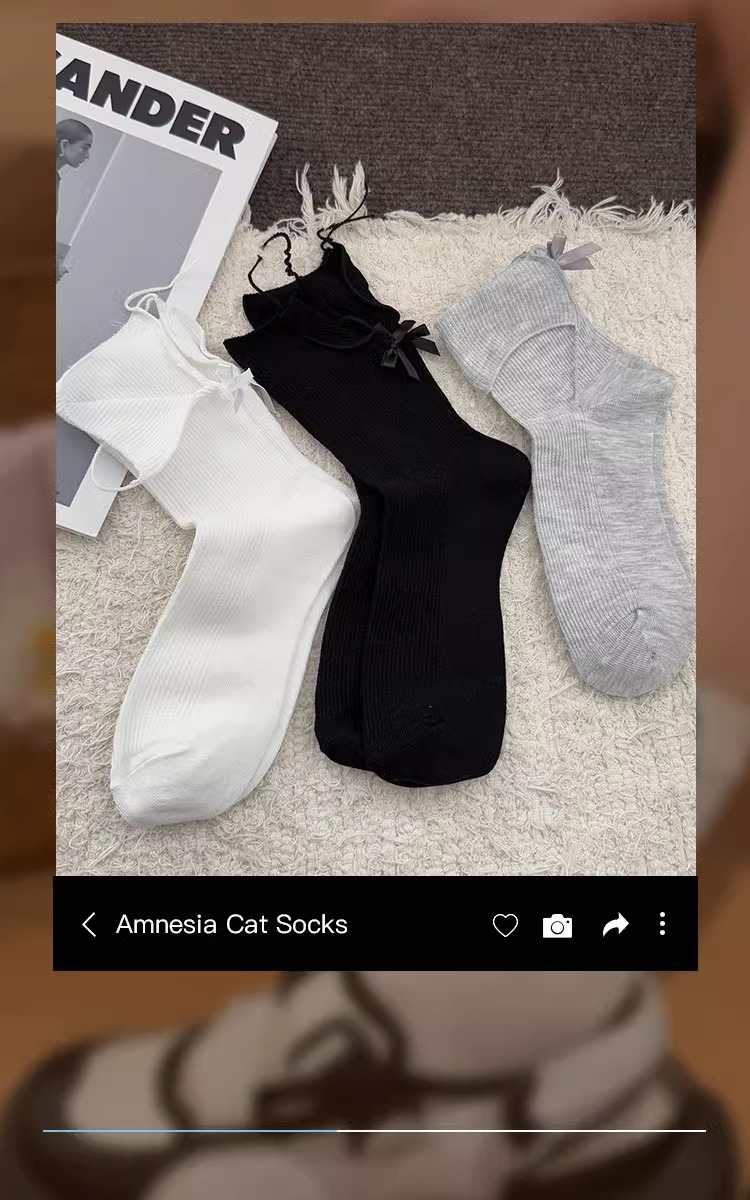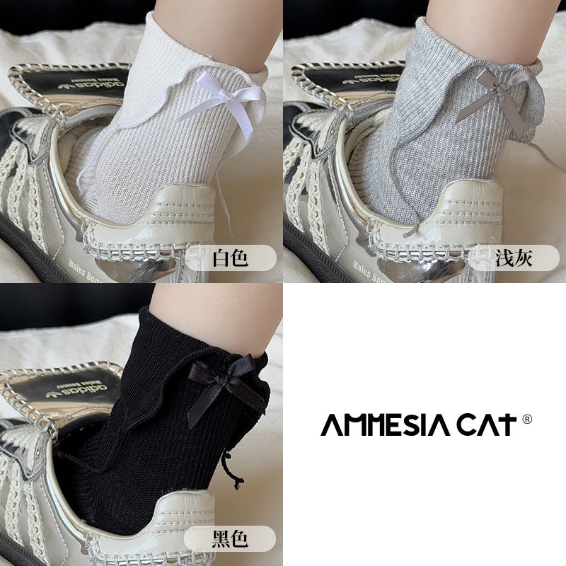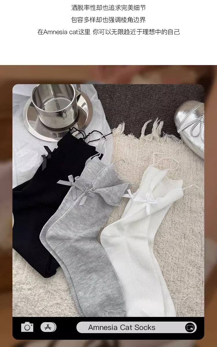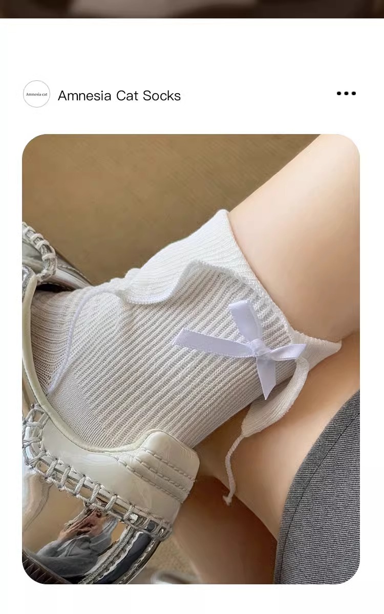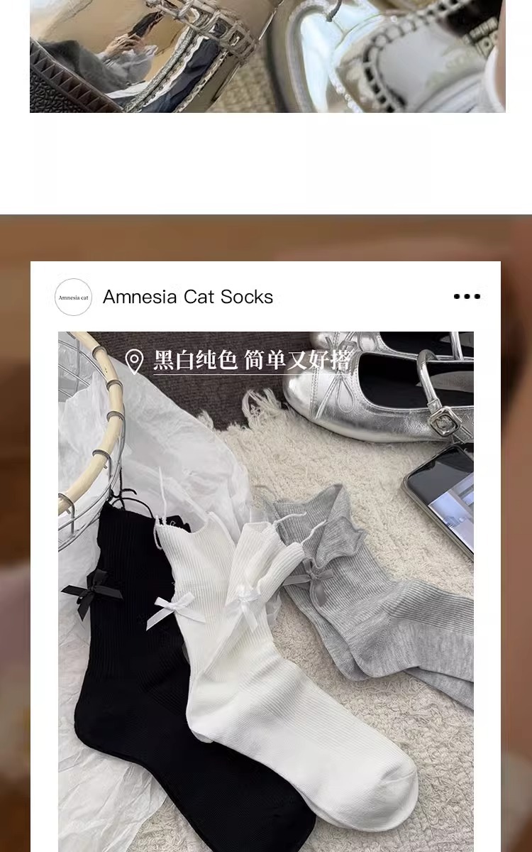 흰색 활 양말 여성의 봄과 가을 면화 중간 길이 양말 봄과 여름 얇은 일본 jk 스타킹 작은 가죽 신발스토어 가기